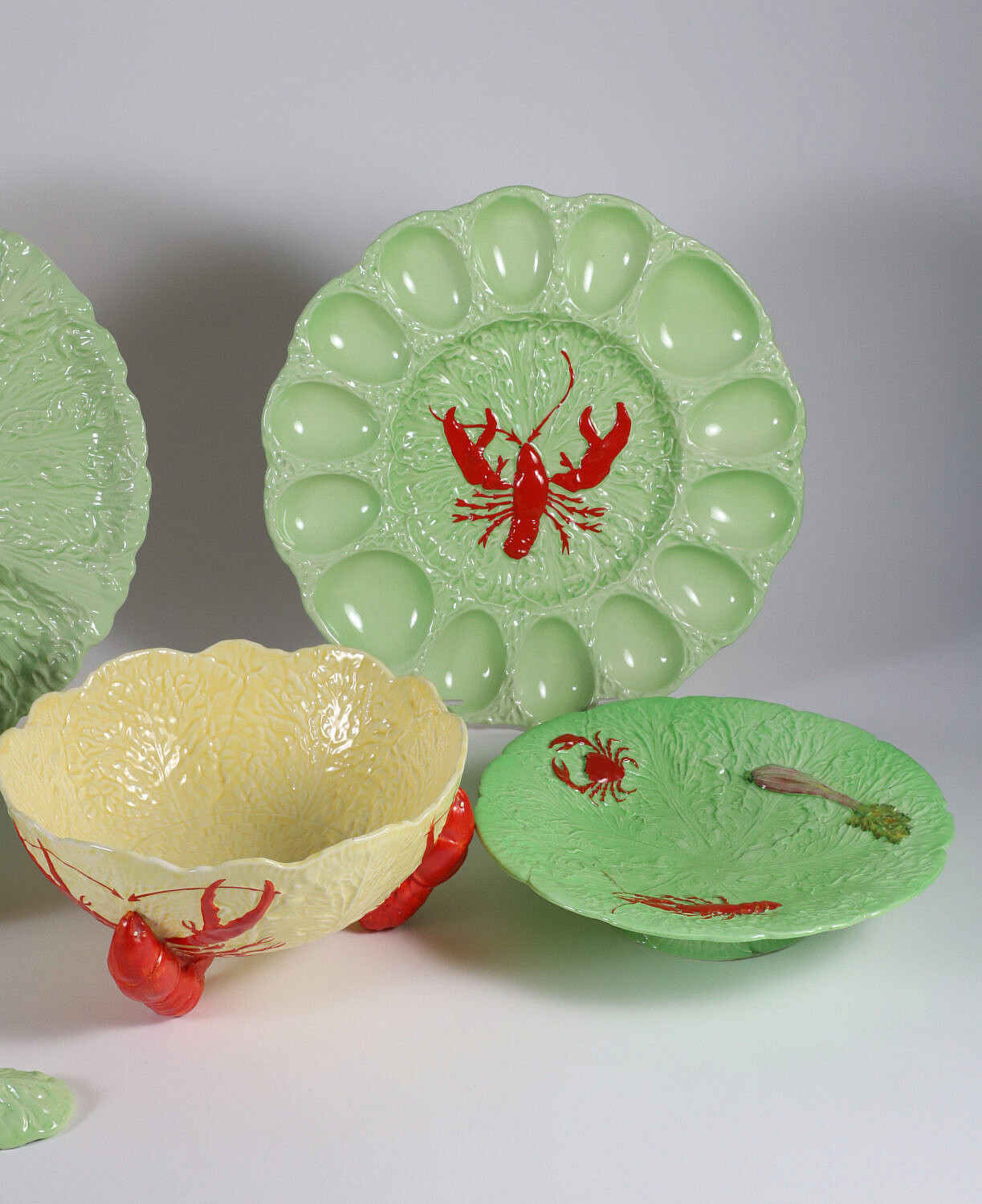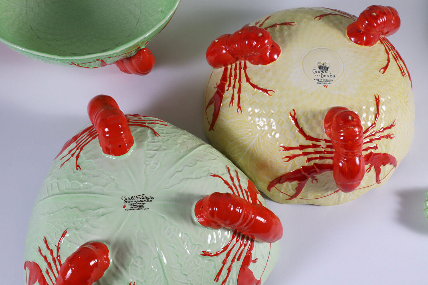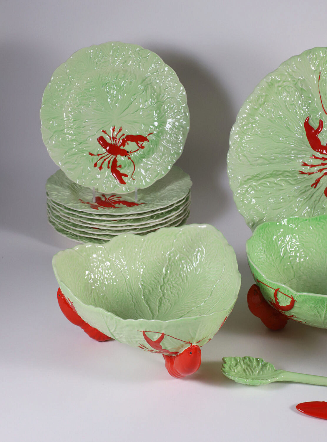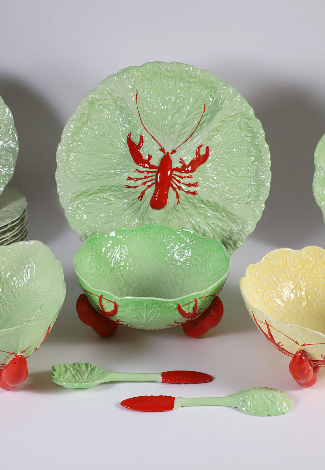 Carlton Ware and Crown Devon Cabbage Leaf and Lobster Ceramic Dinner Service, 16 pieces