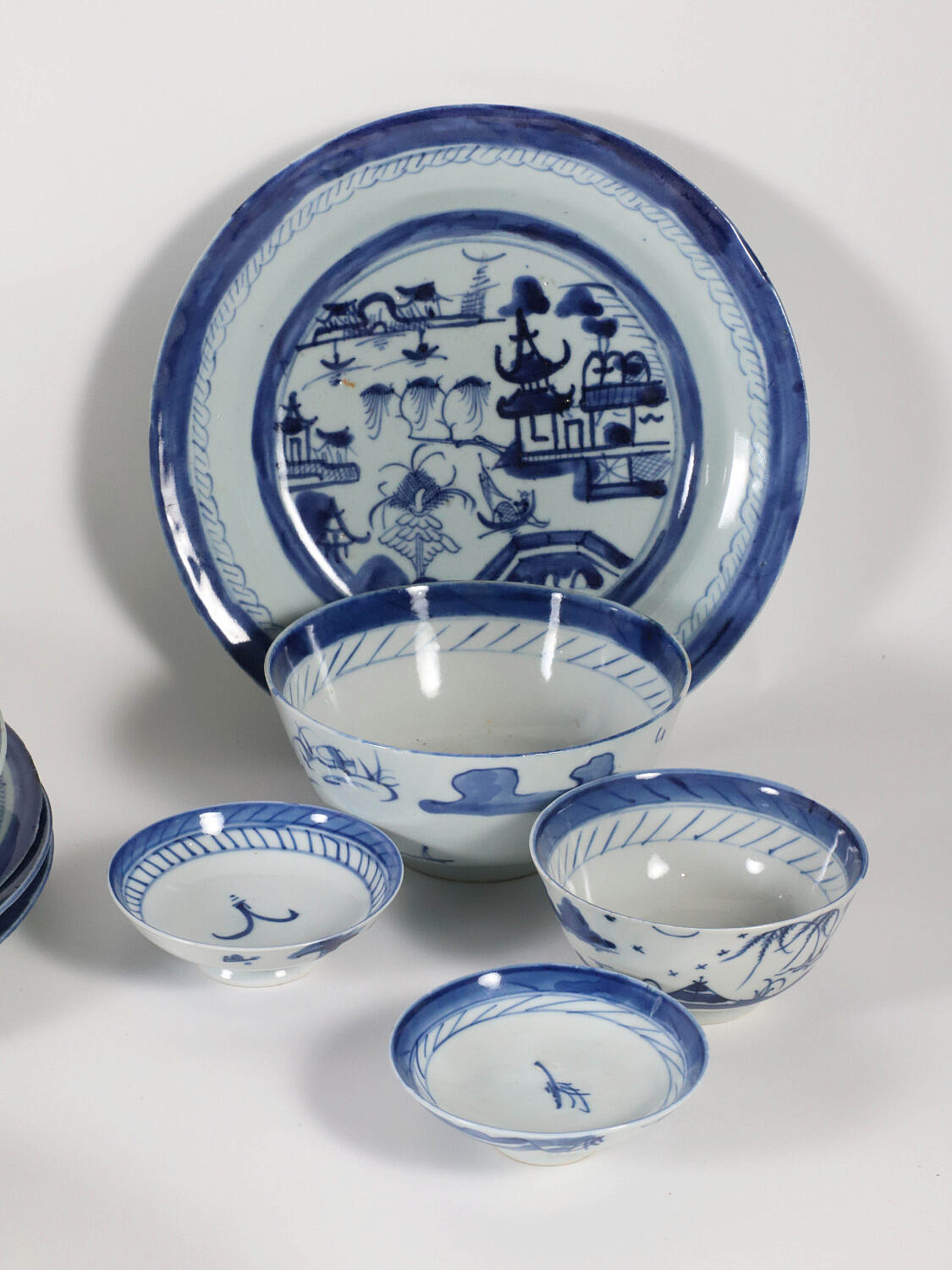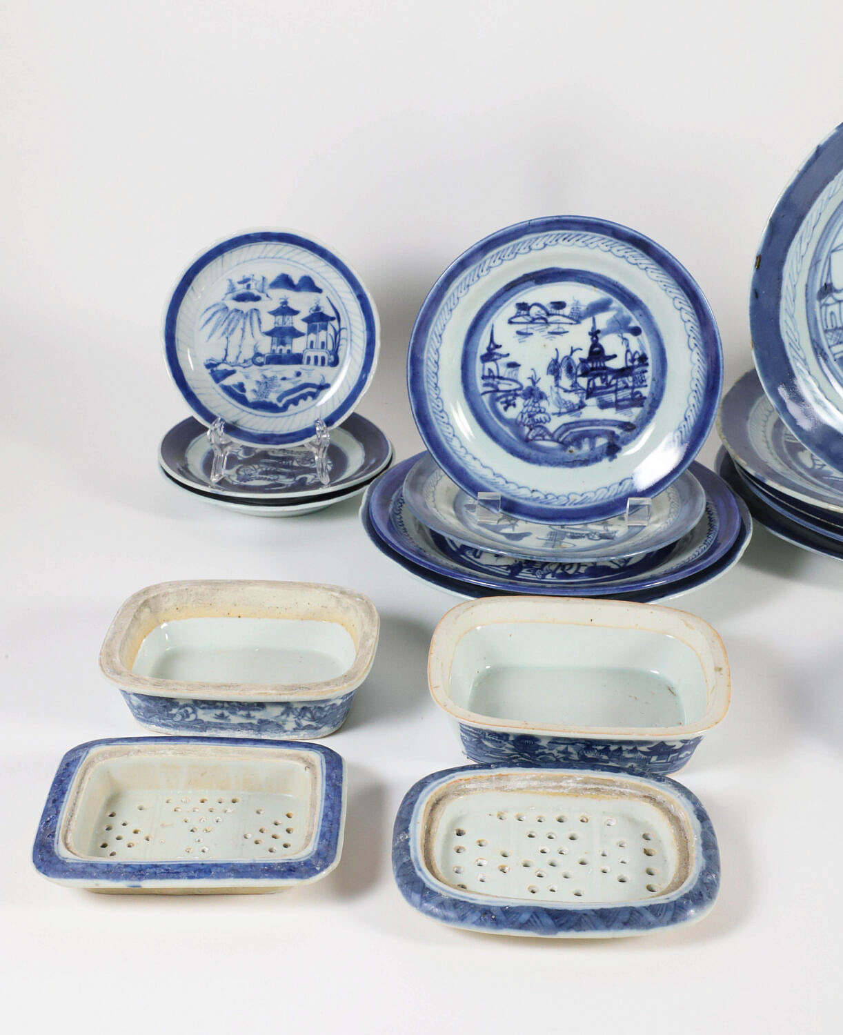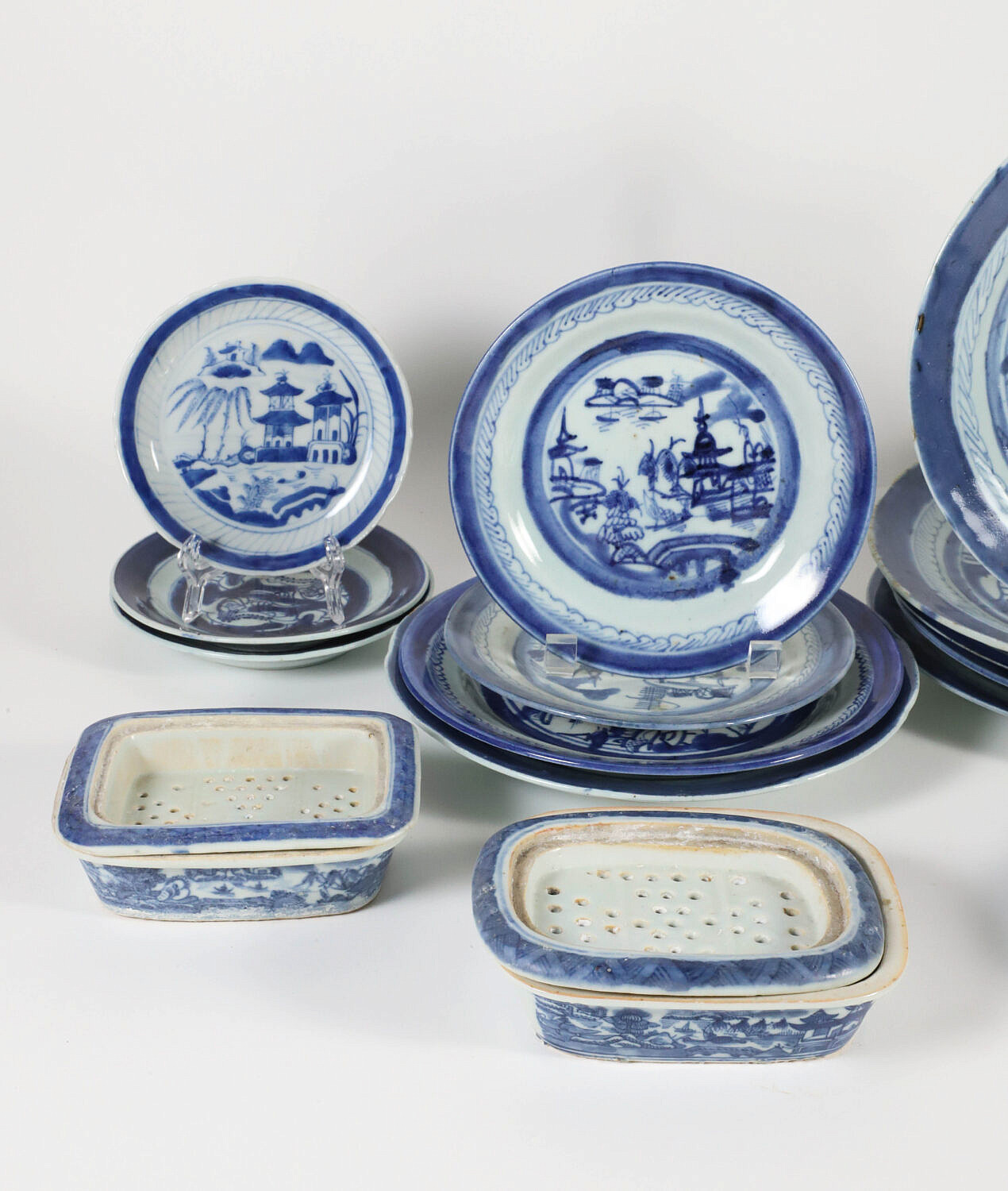 Collection of 22 Assorted Pieces of Blue and White Canton, 19th Century
