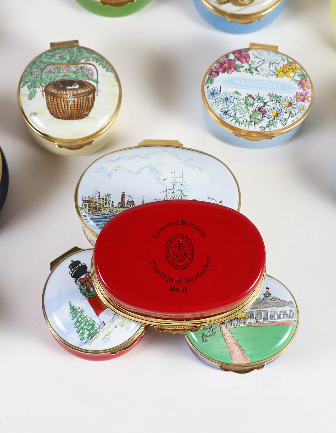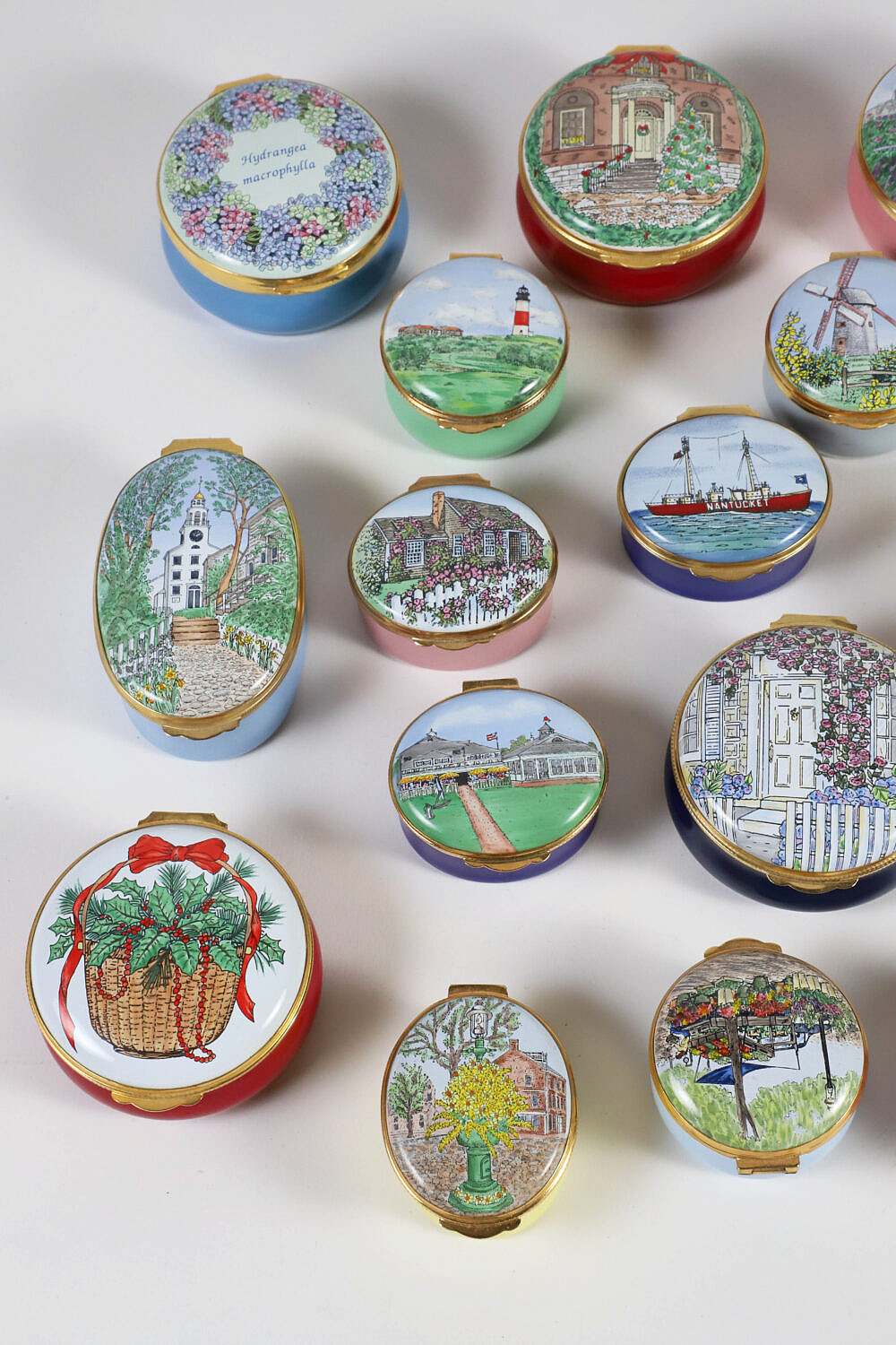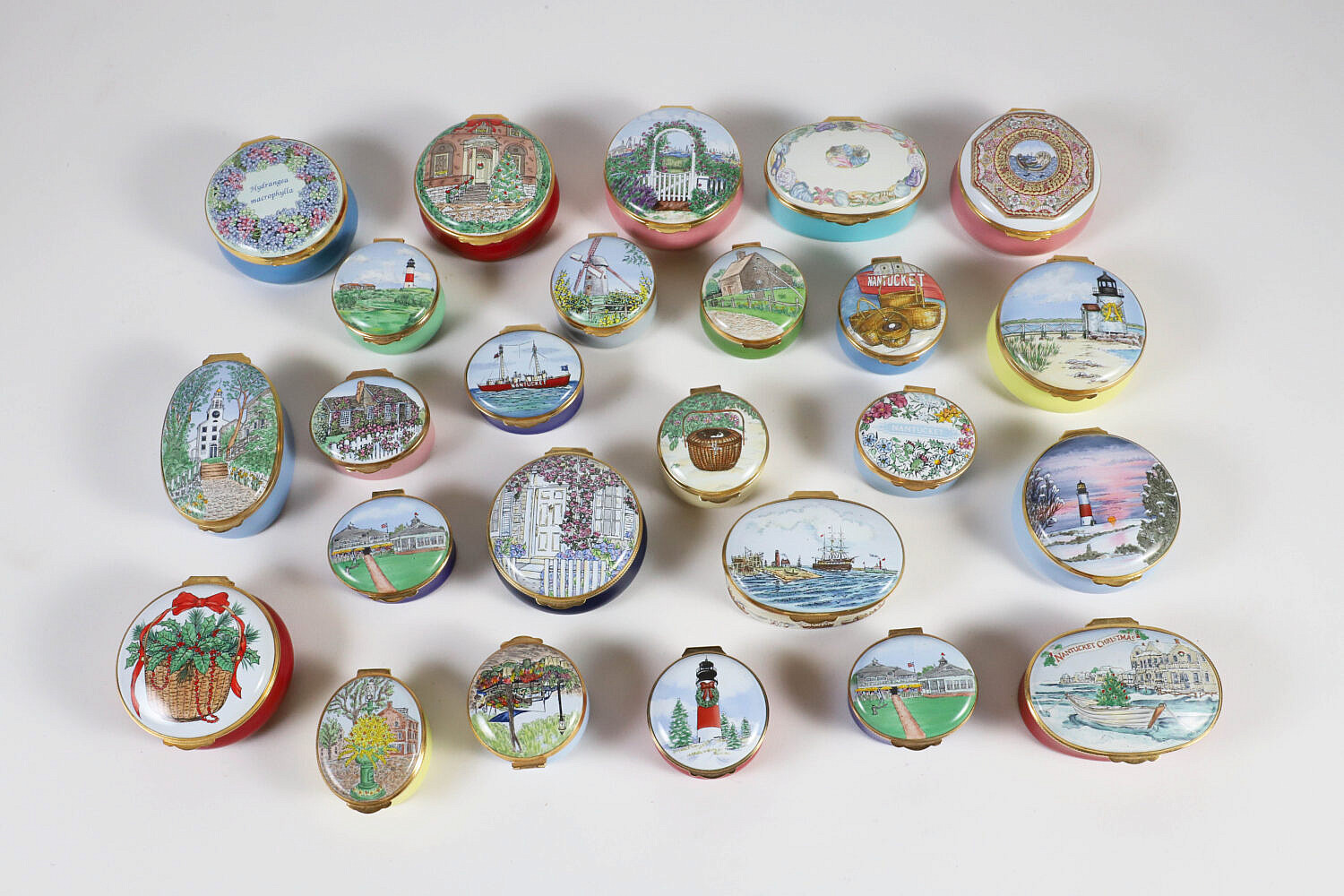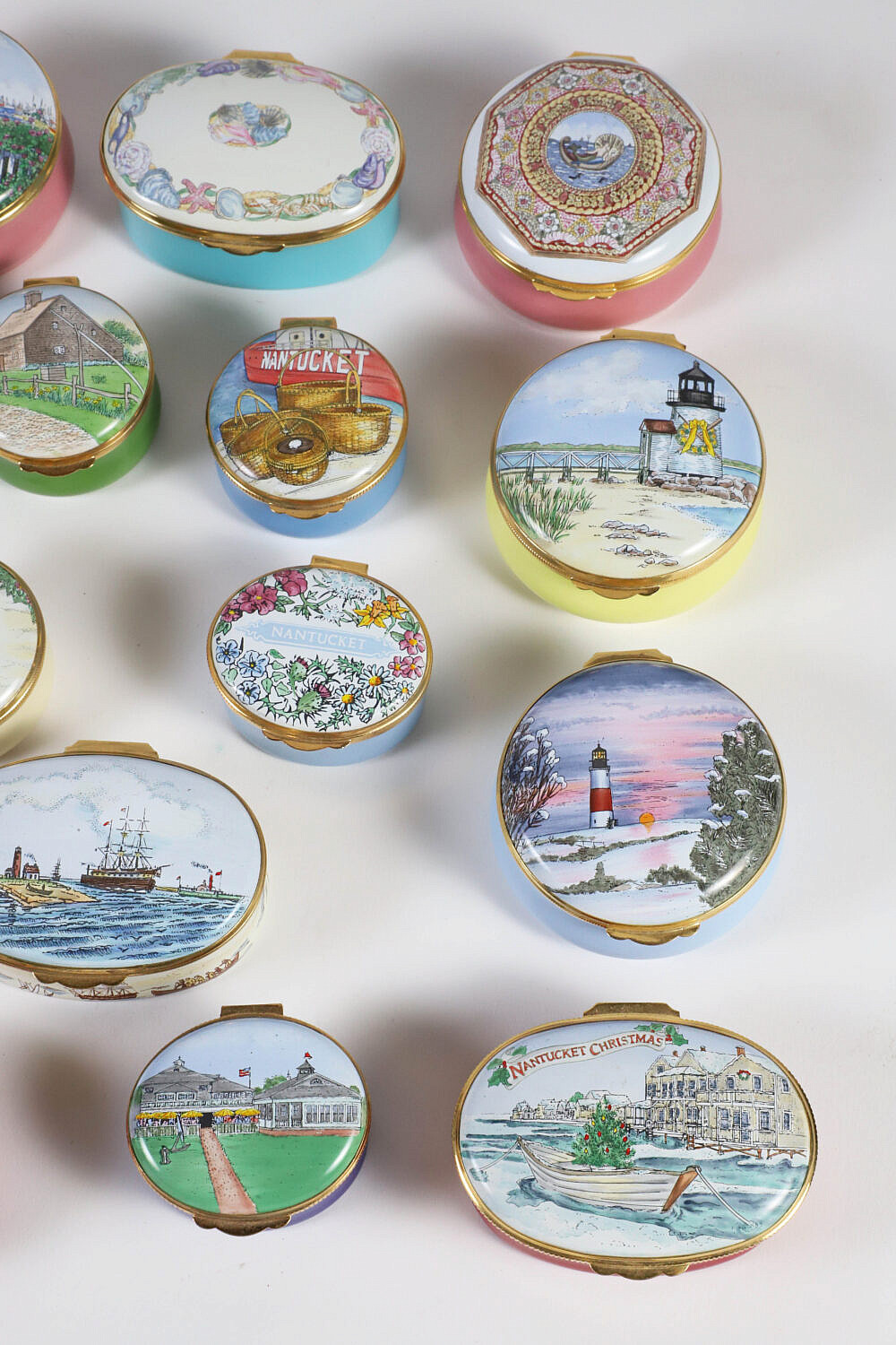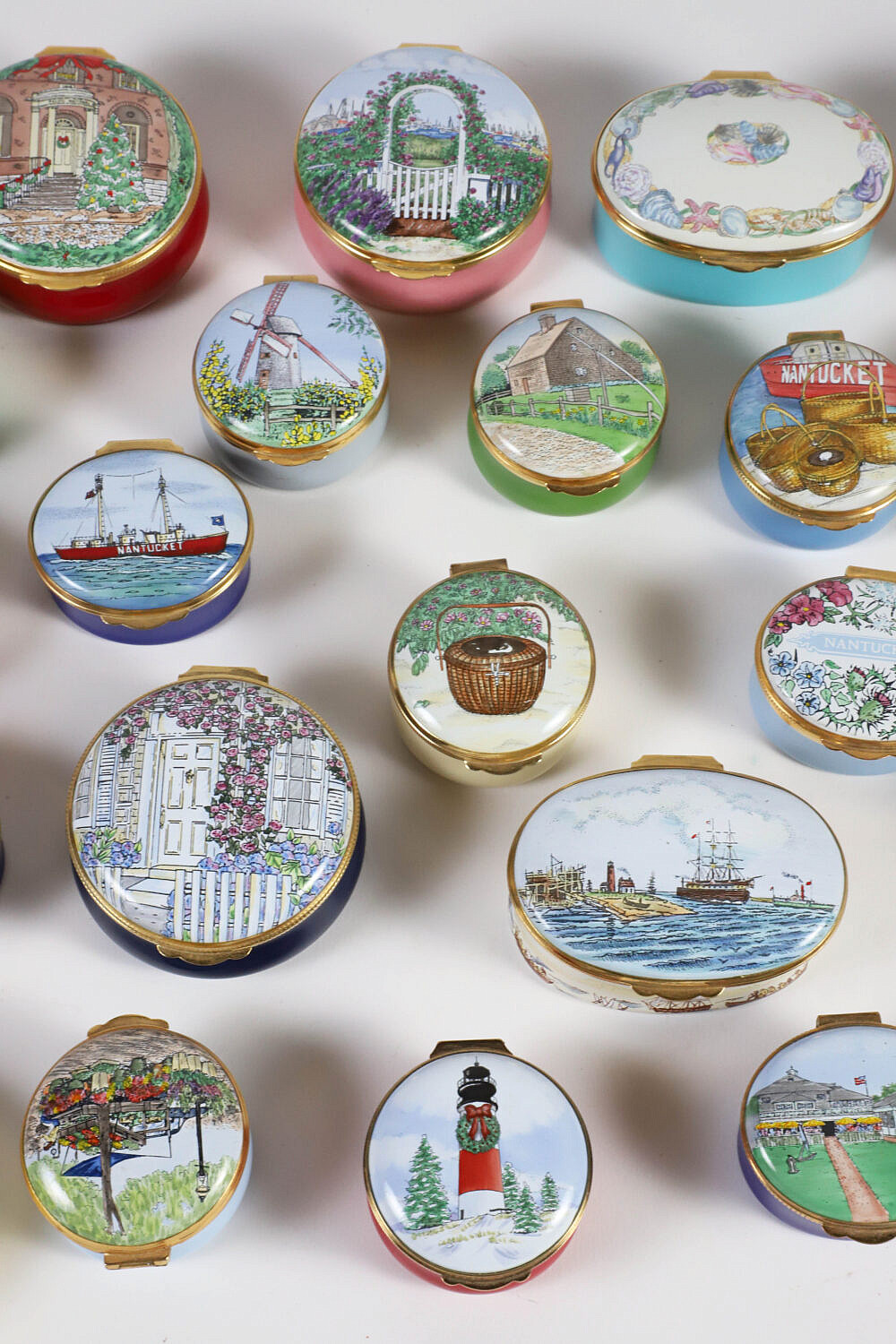 Collection of 25 Anderson’s Limited Edition Enamel Nantucket Pill Boxes