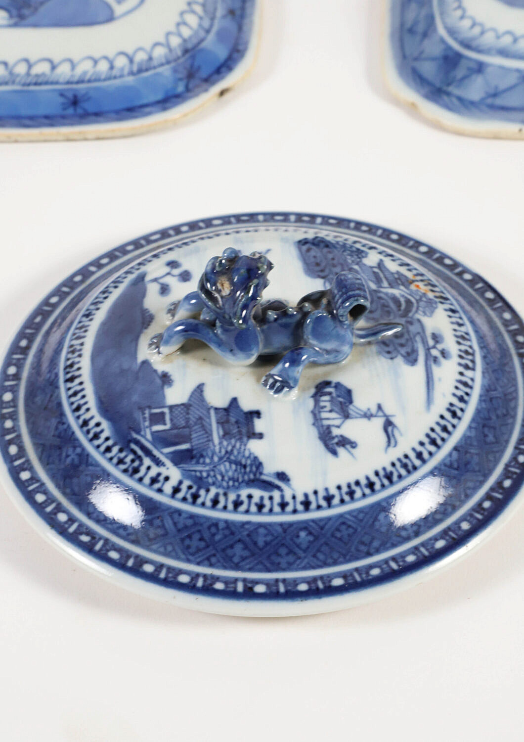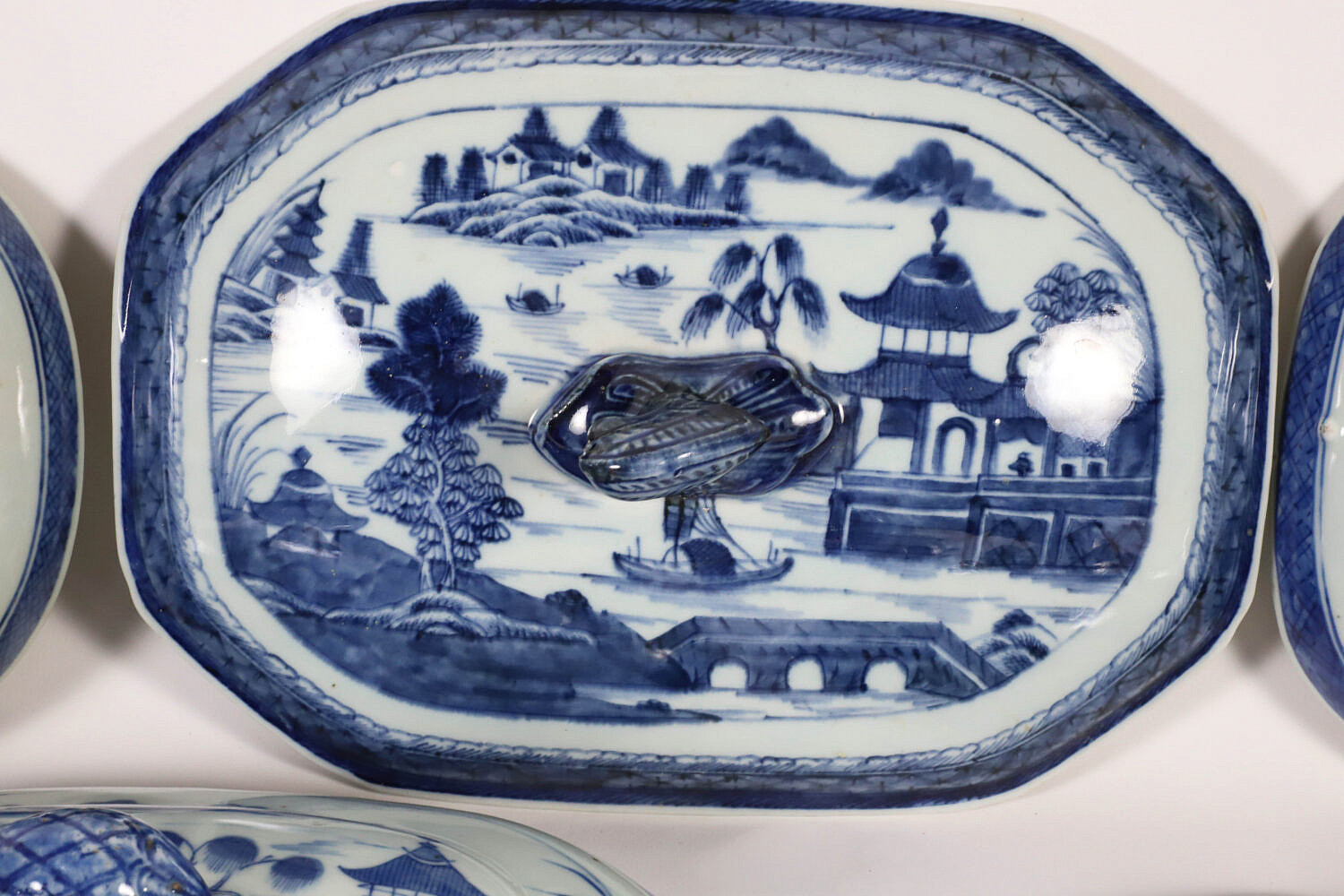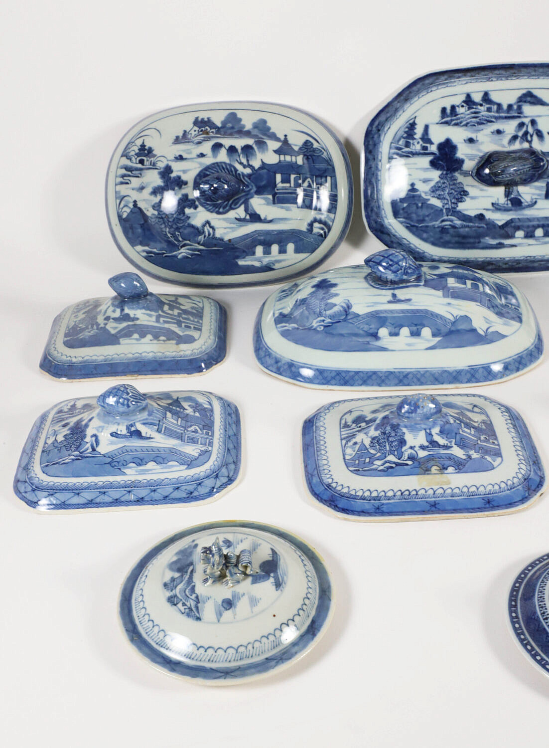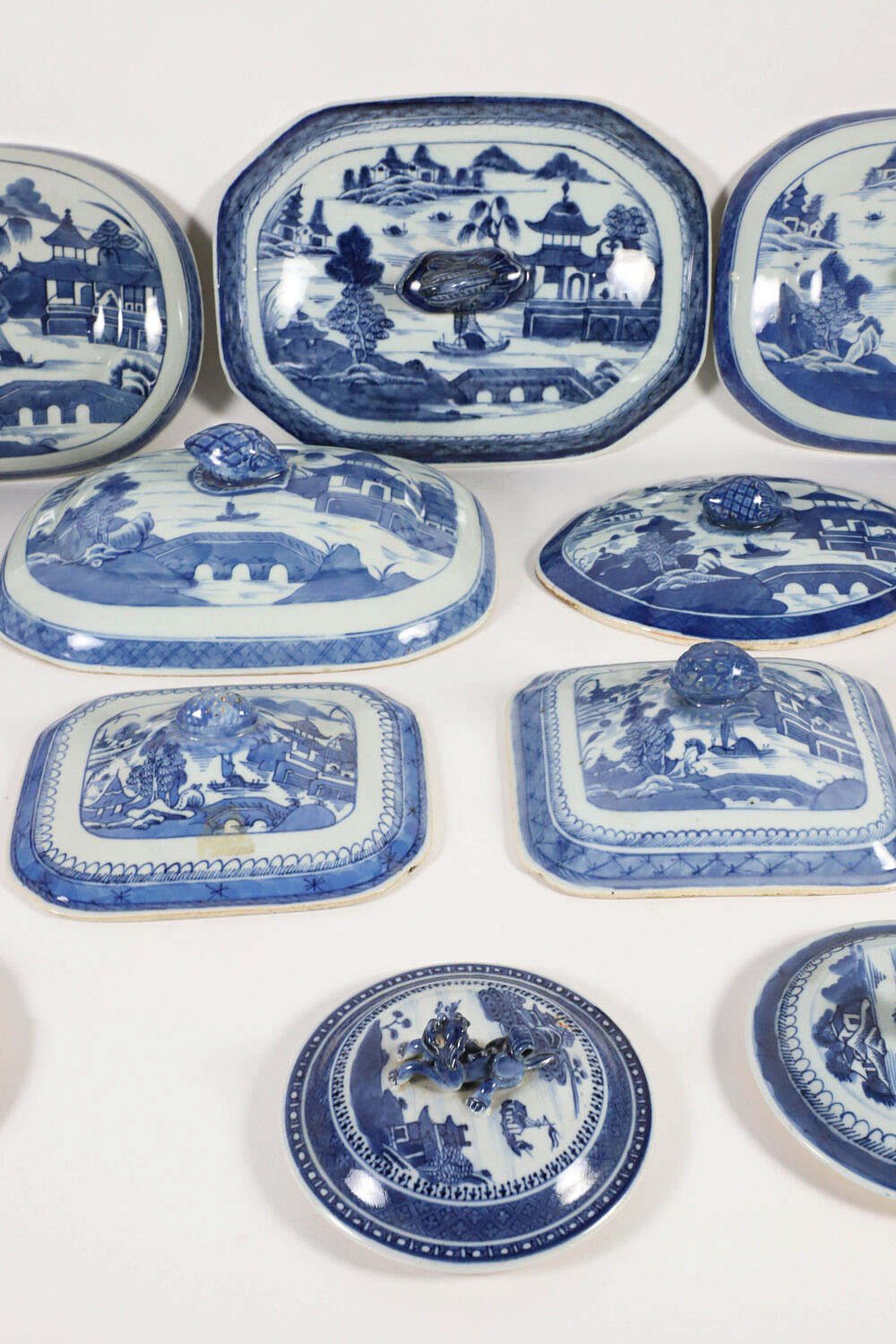Collection of Fourteen Blue and White Canton Lids and Covers, 19th Century, four round and 10 oval and rectangular