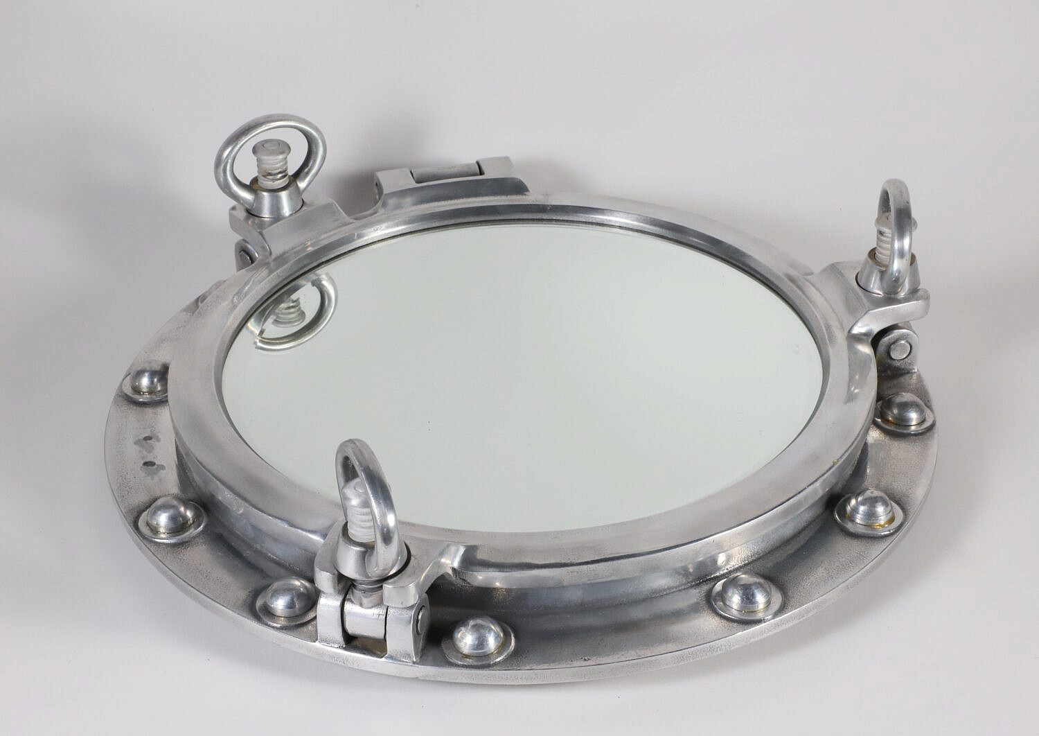 Contemporary Chrome Ship’s Porthole Window Mirror Frame