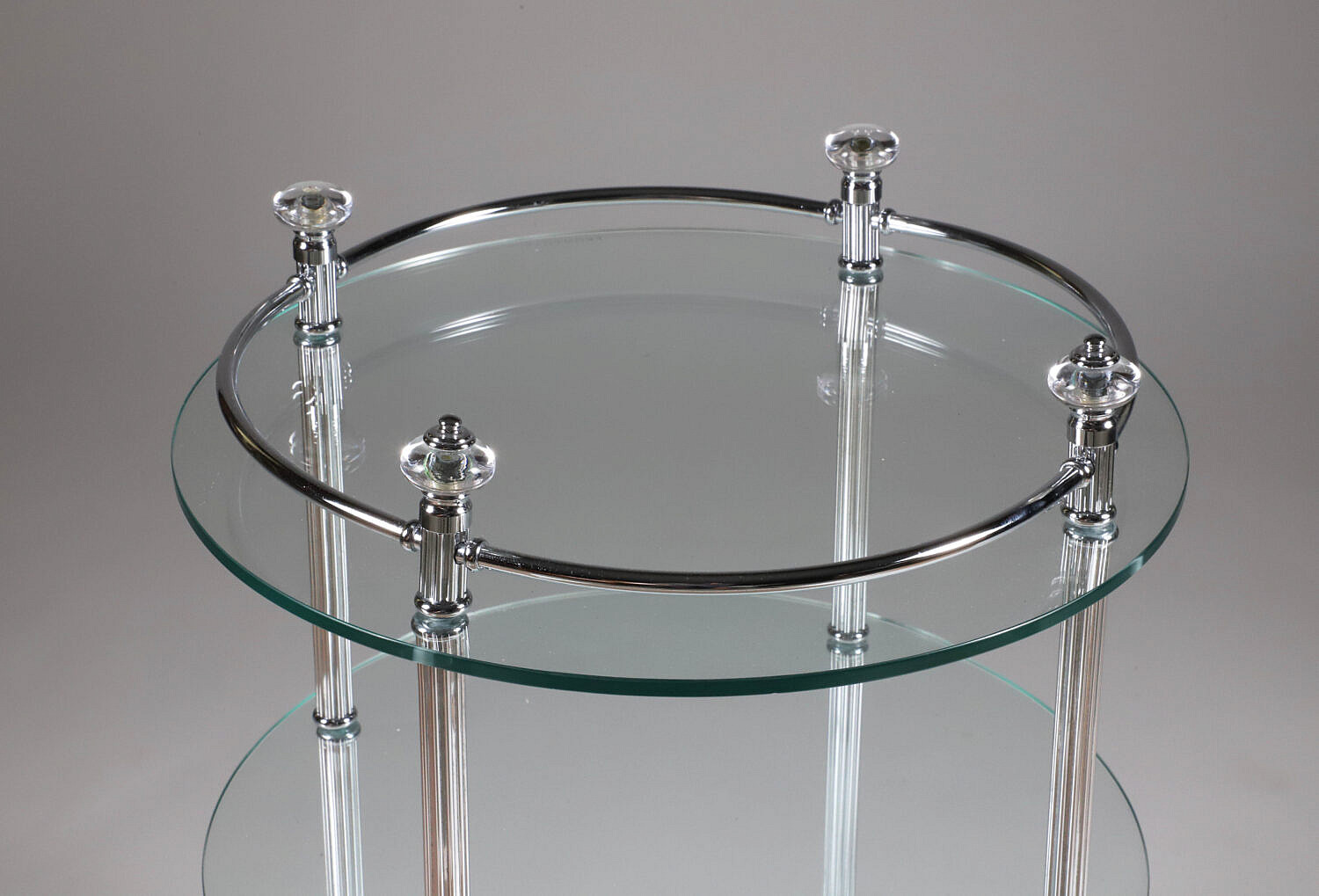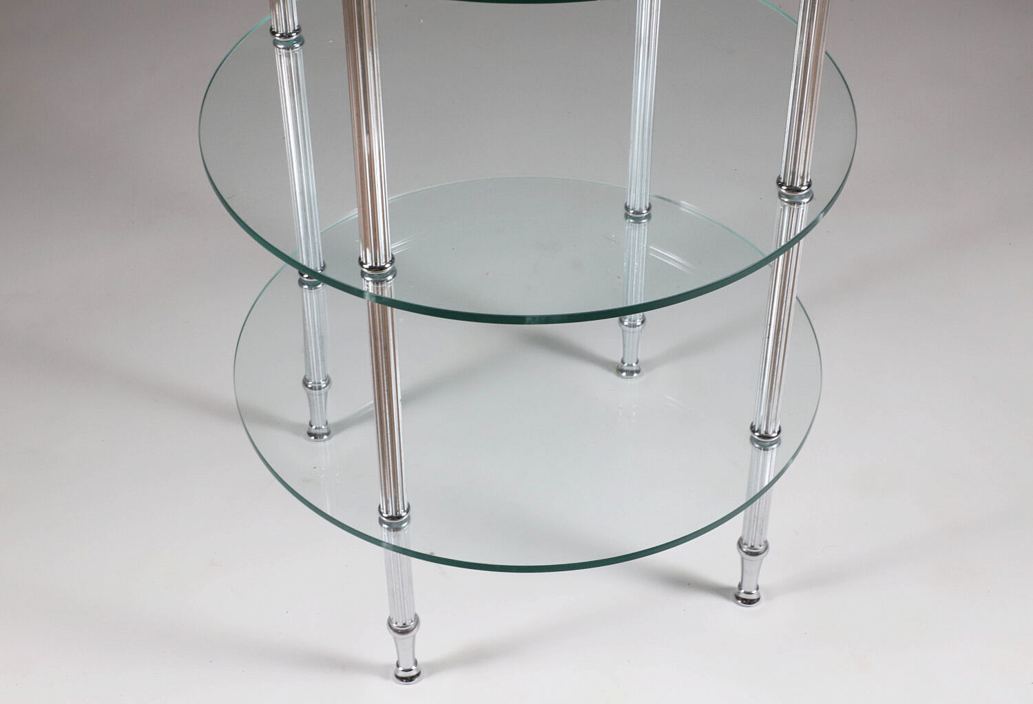 Contemporary Round Three-Tier Chrome and Glass Side Table