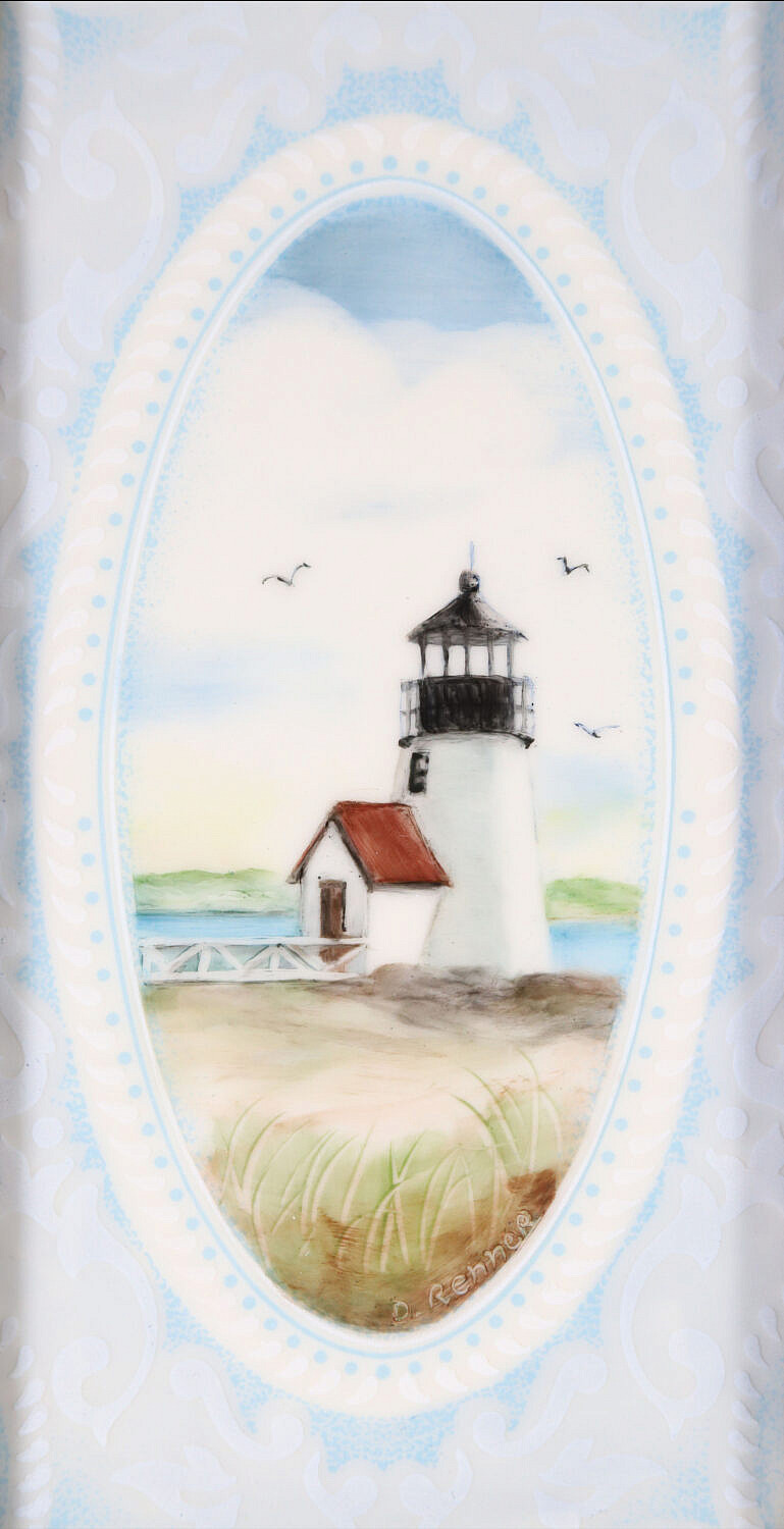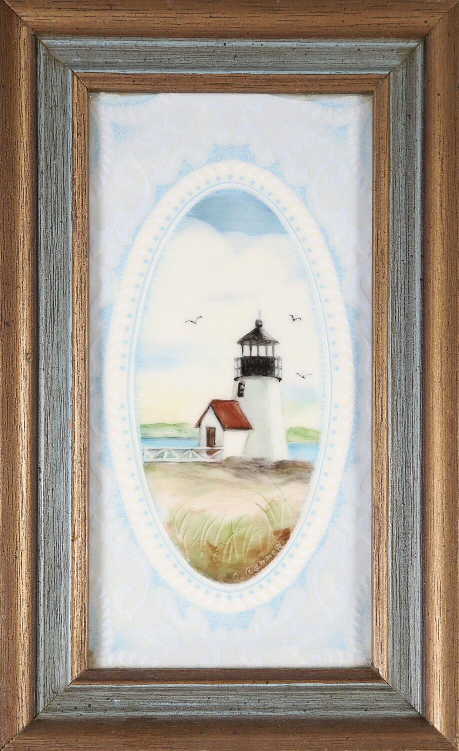 D. Renner Hand Painted Porcelain Plaque “Brant Point”, in molded wood frame