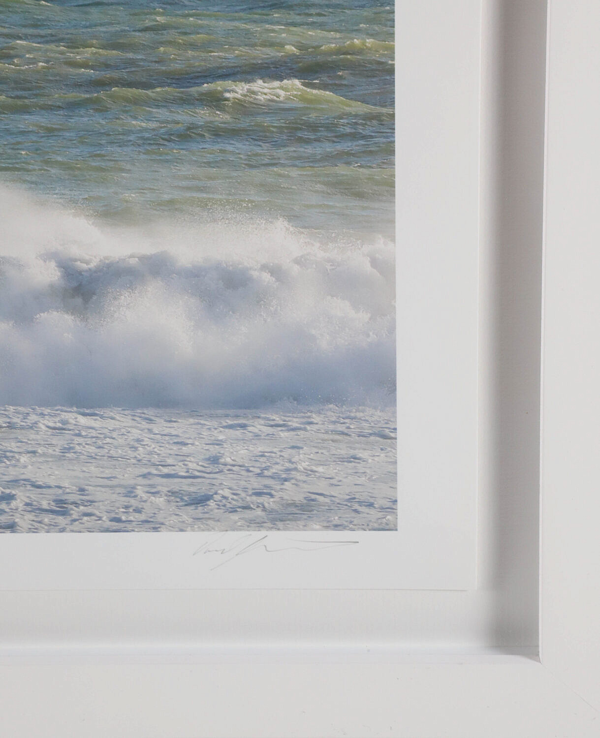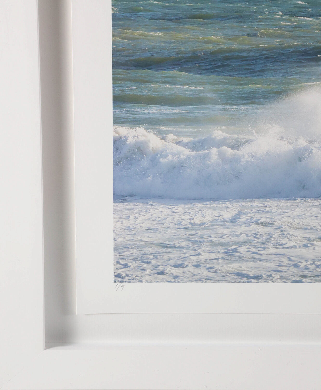 Dan Sutherland Limited Edition Photograph “Winter Waves” Nantucket, edition #1/9, signed lower right, in white shadow box-like frame