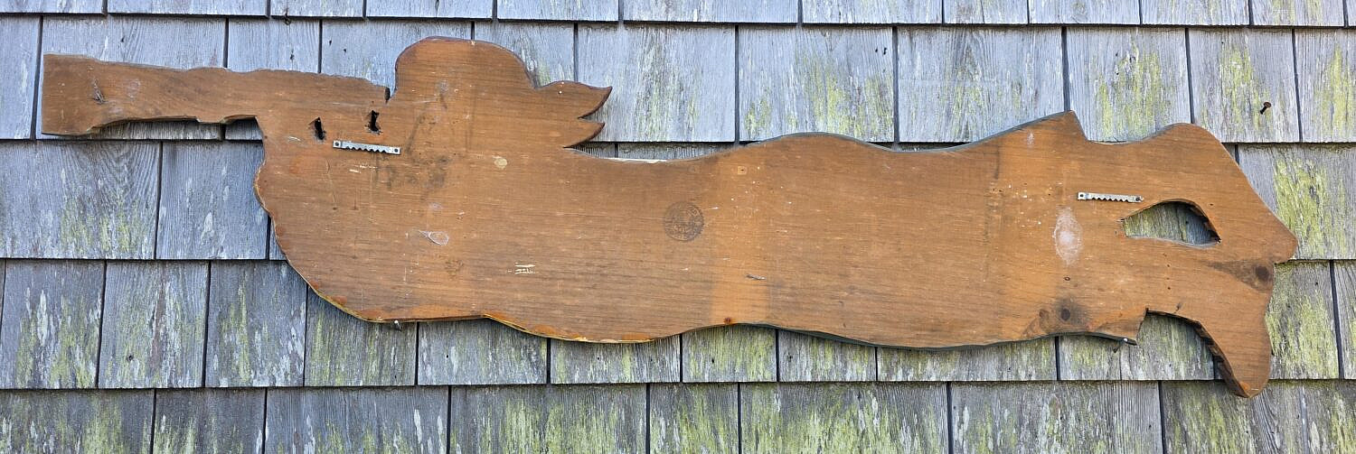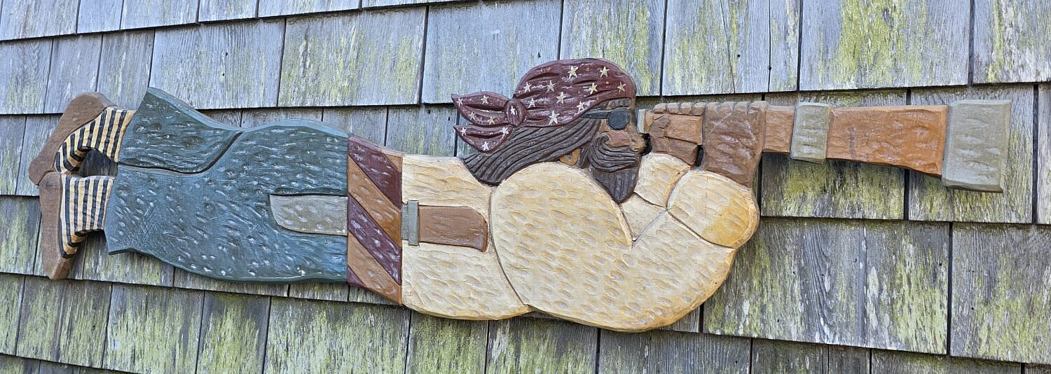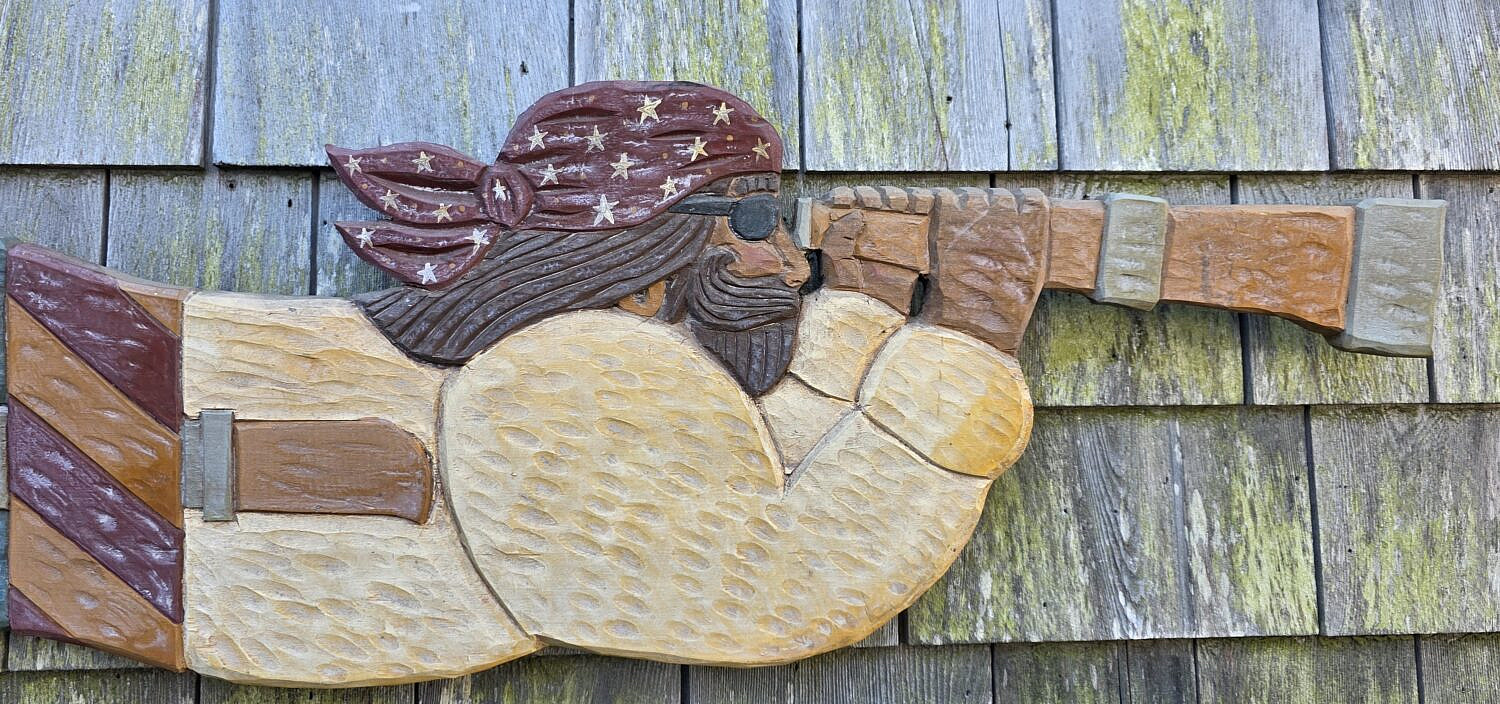 David Small Carved & Painted Folk Art Nantucket Pirate Plaque, carved wood with painted decoration, signature on reverse.