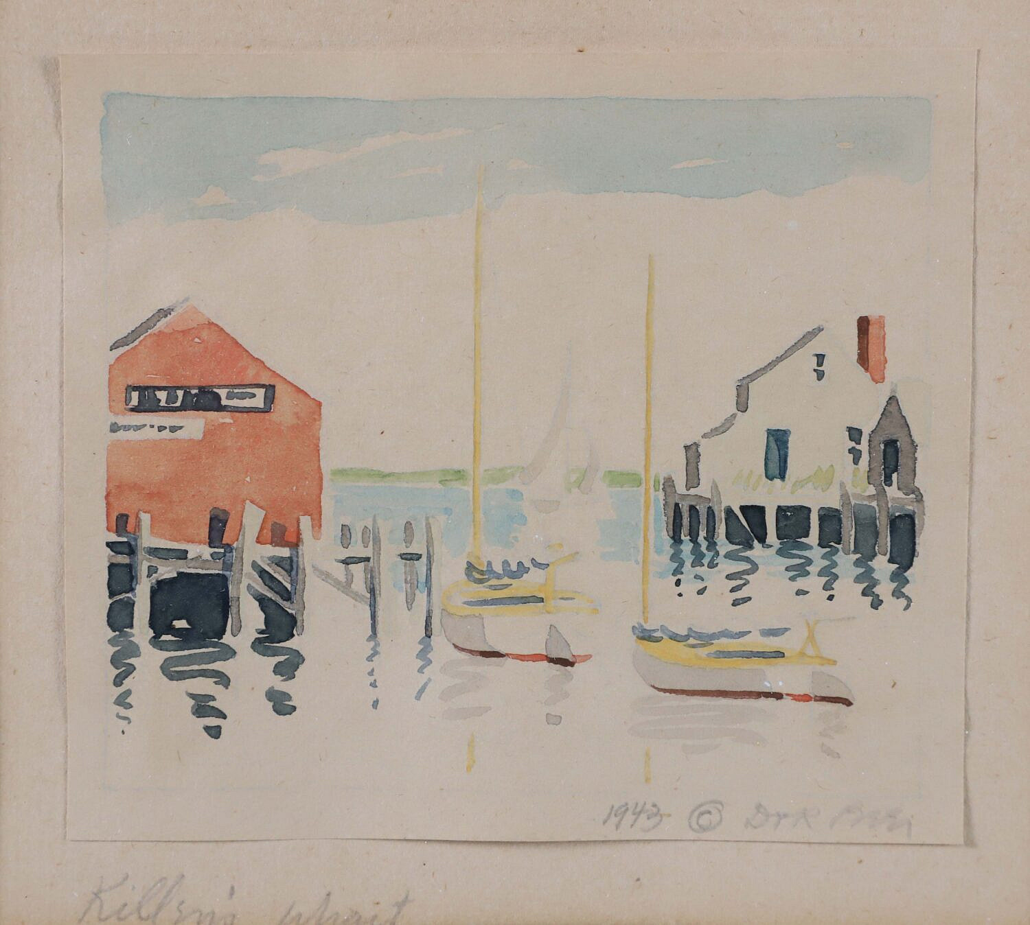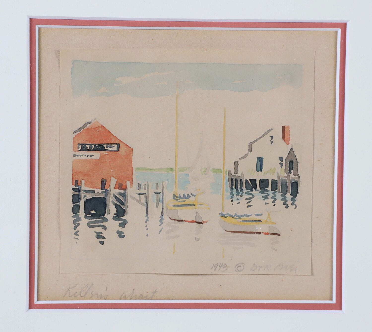 Doris and Richard (1898-1967 & 1893-1959) Beer Watercolor on Paper “Killen’s Wharf”, signed and dated lower right 1943, titled lower left
