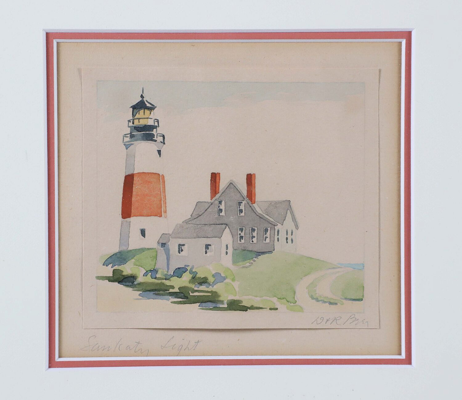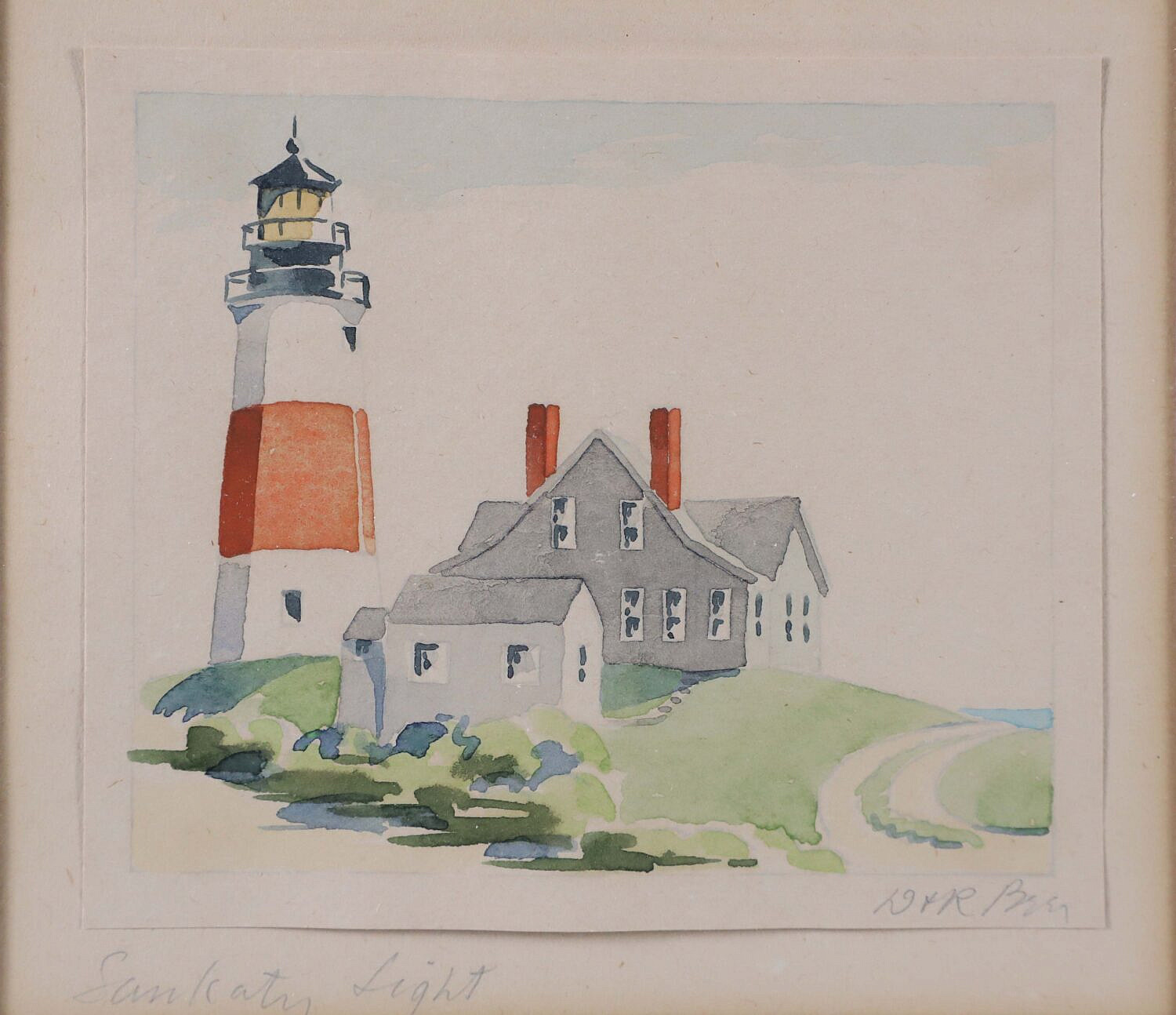 Doris and Richard Beer (1898-1967 & 1893-1959) Watercolor on Paper “Sankaty Light”, signed lower right and titled lower left