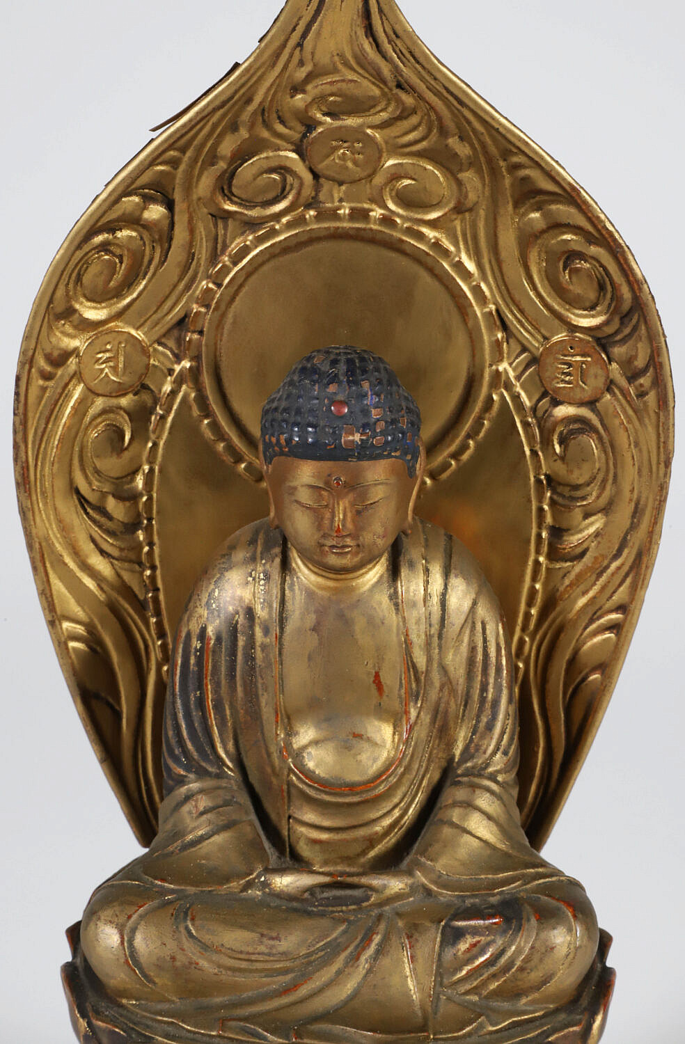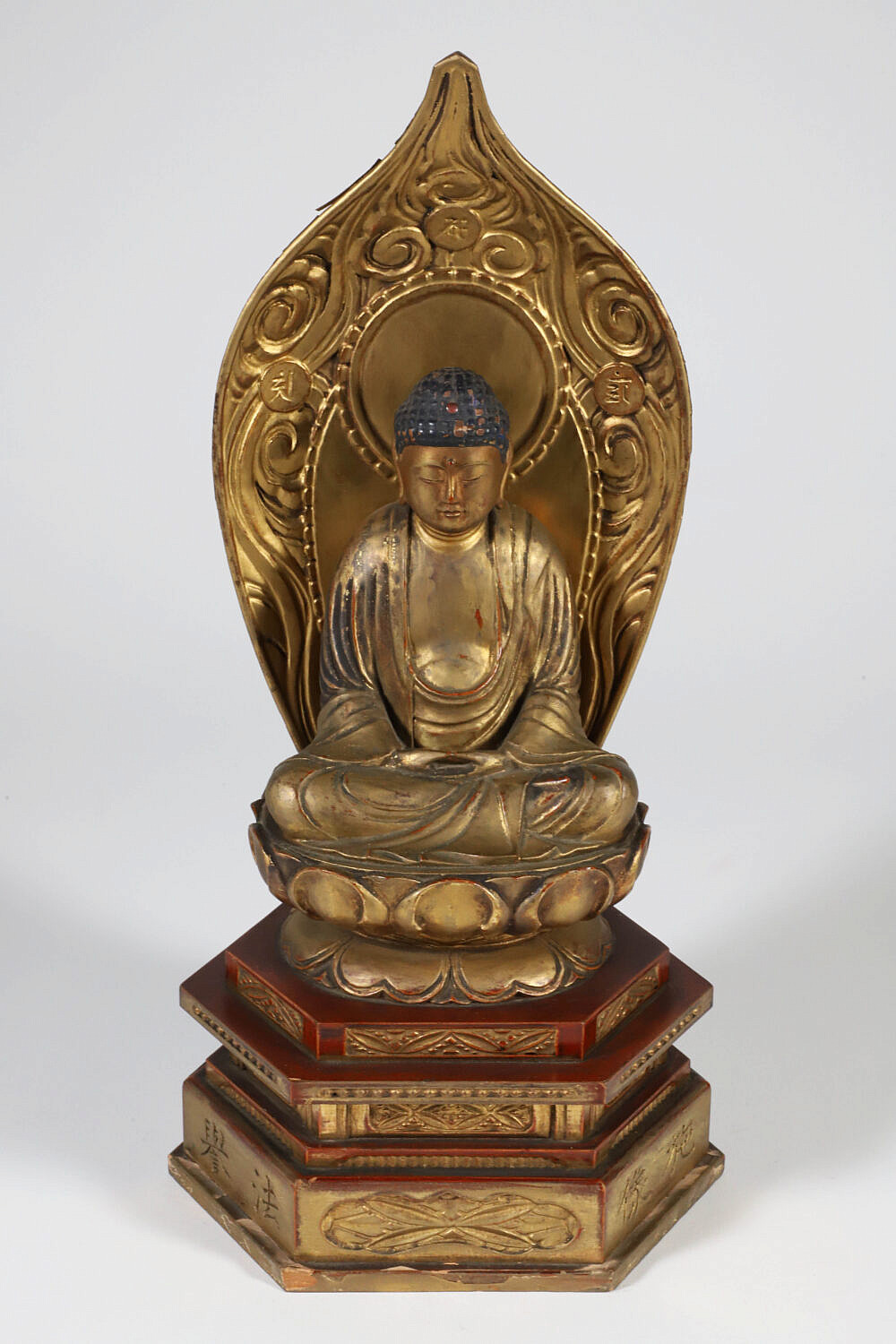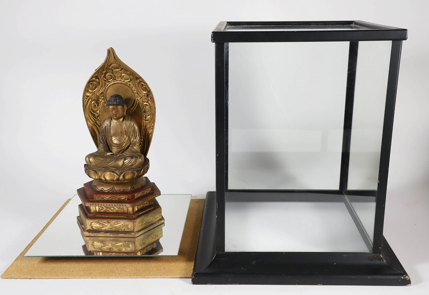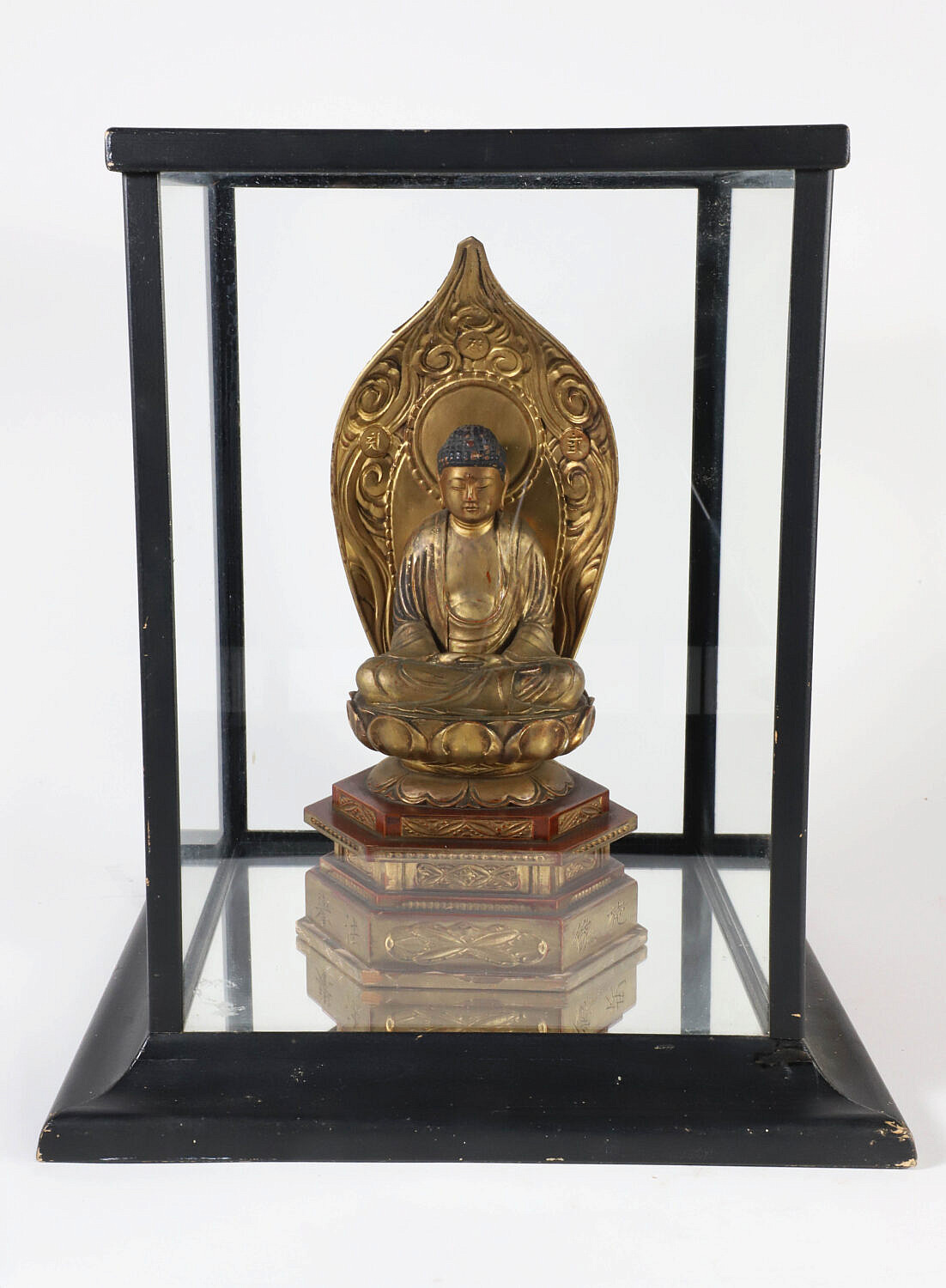 Edo Period Gold Lacquer Wooden Buddha in Glass Case