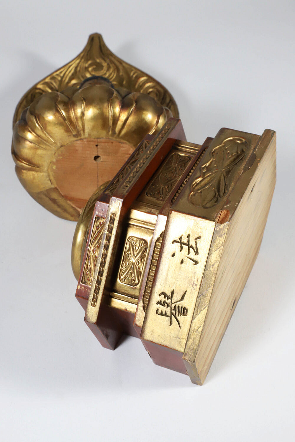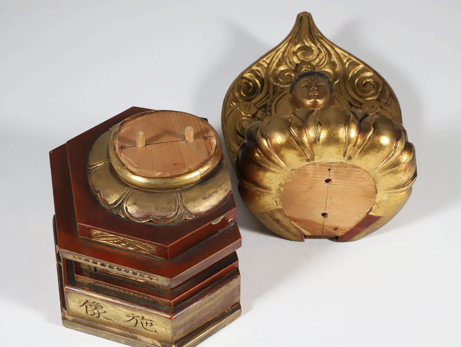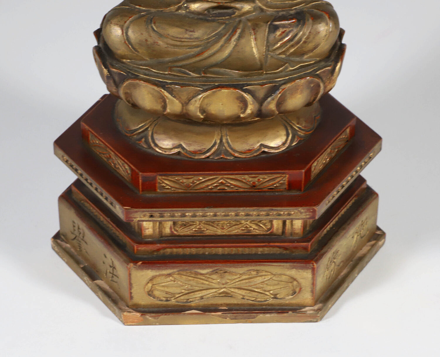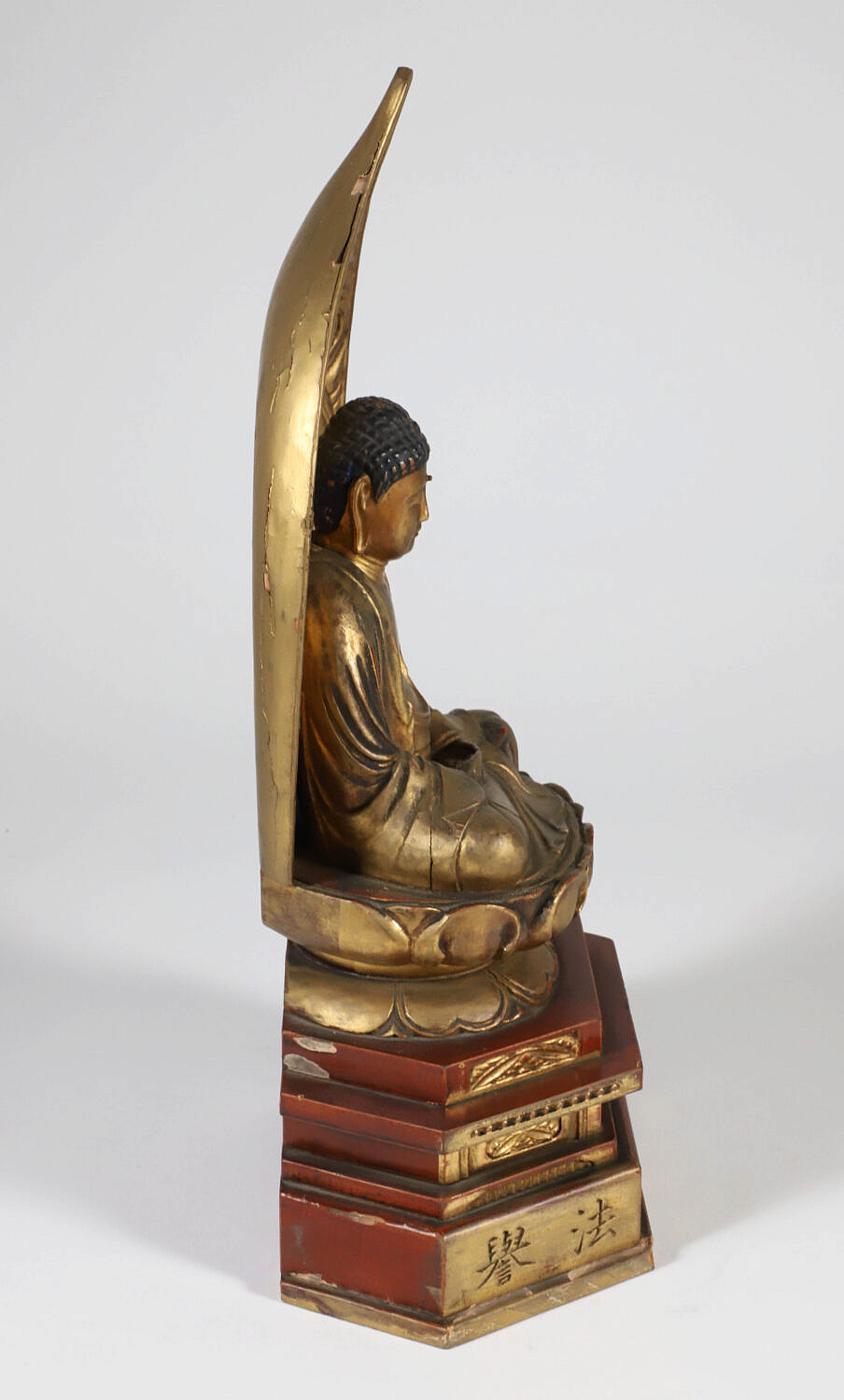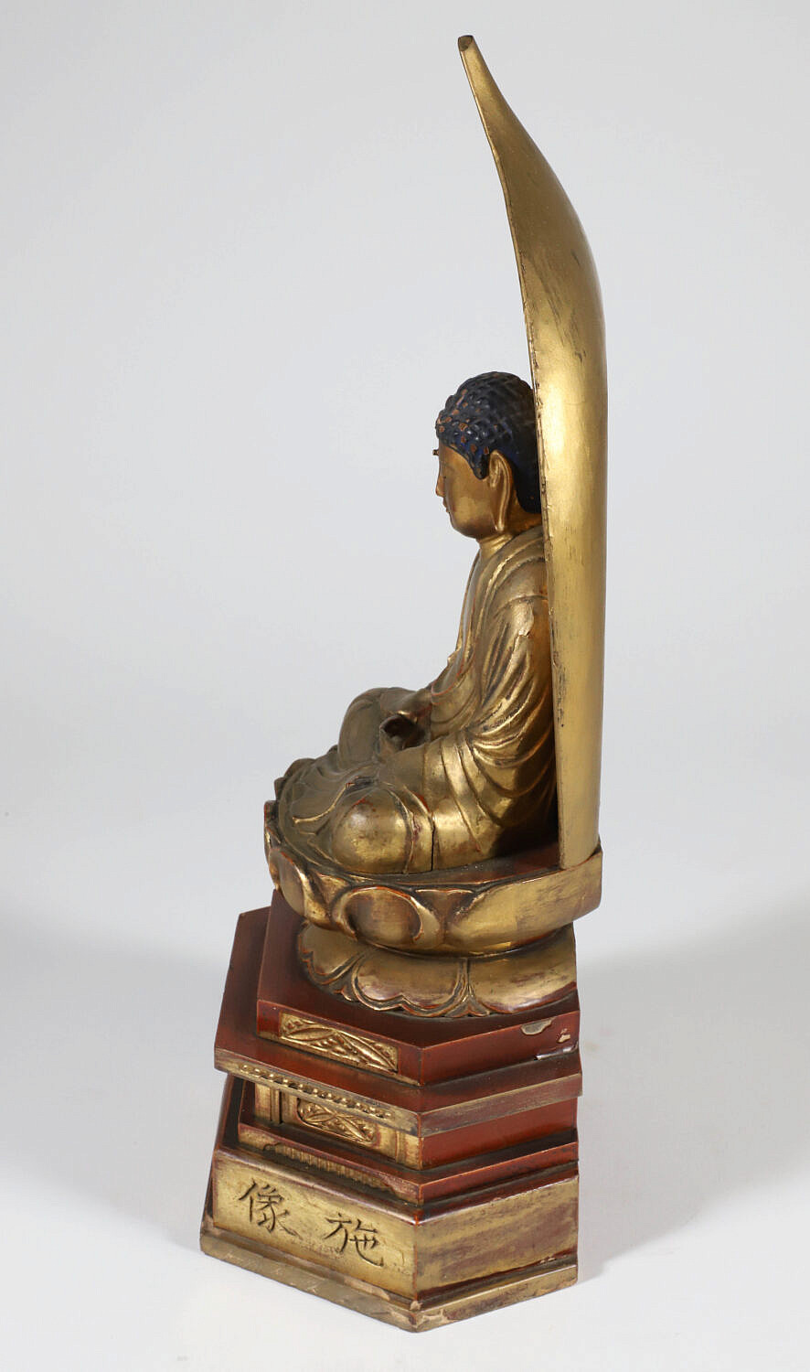 Edo Period Gold Lacquer Wooden Buddha in Glass Case