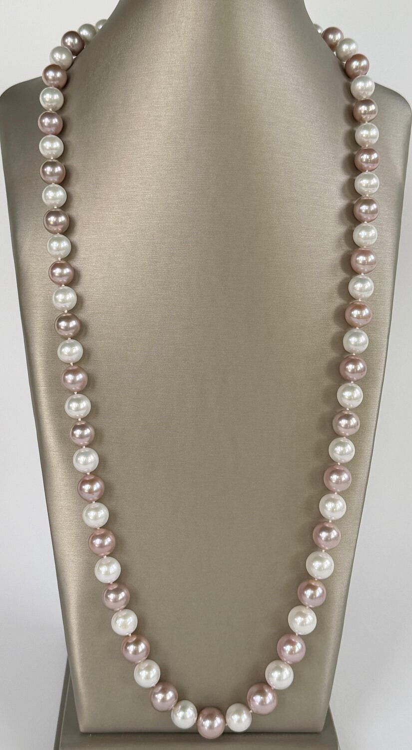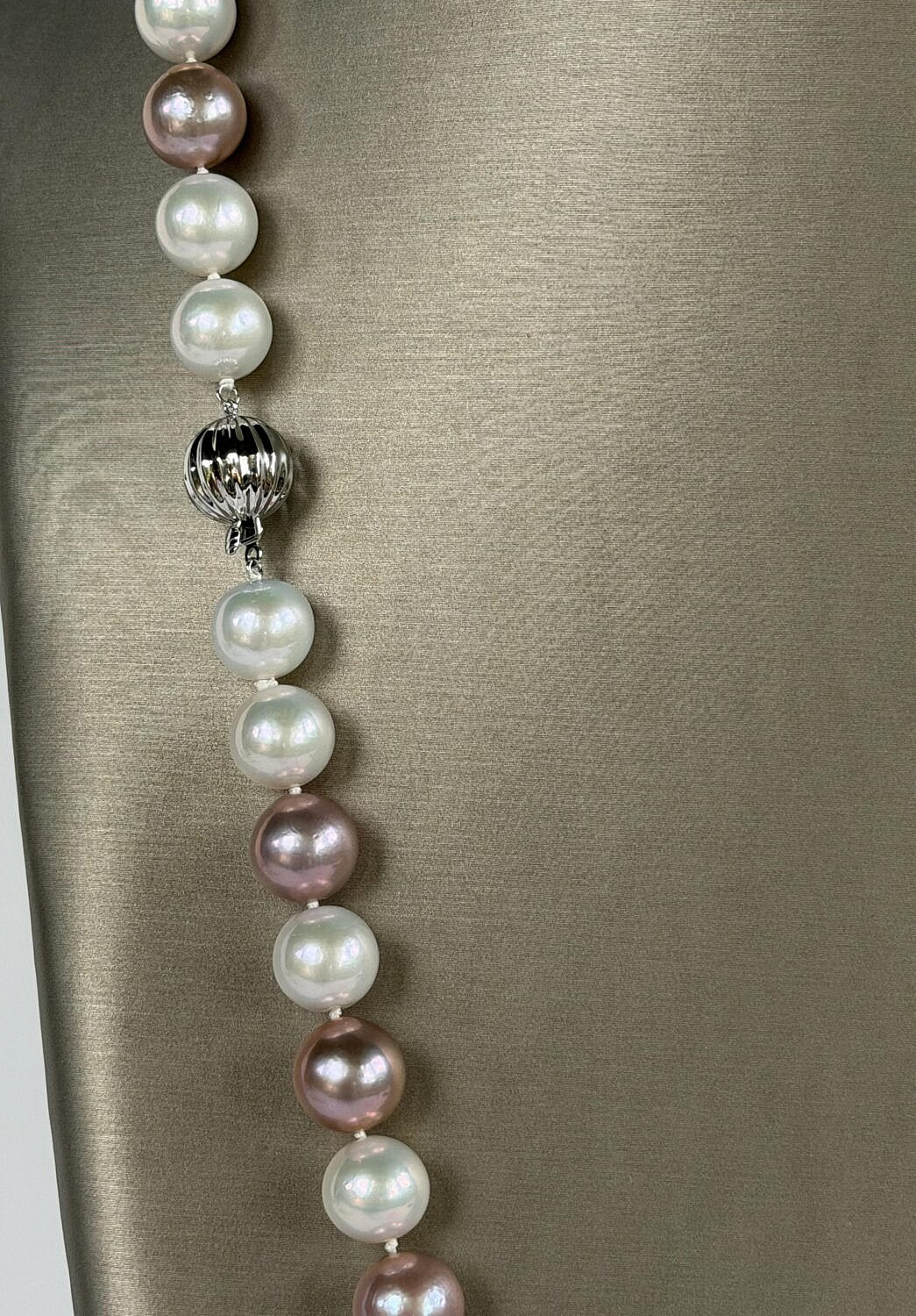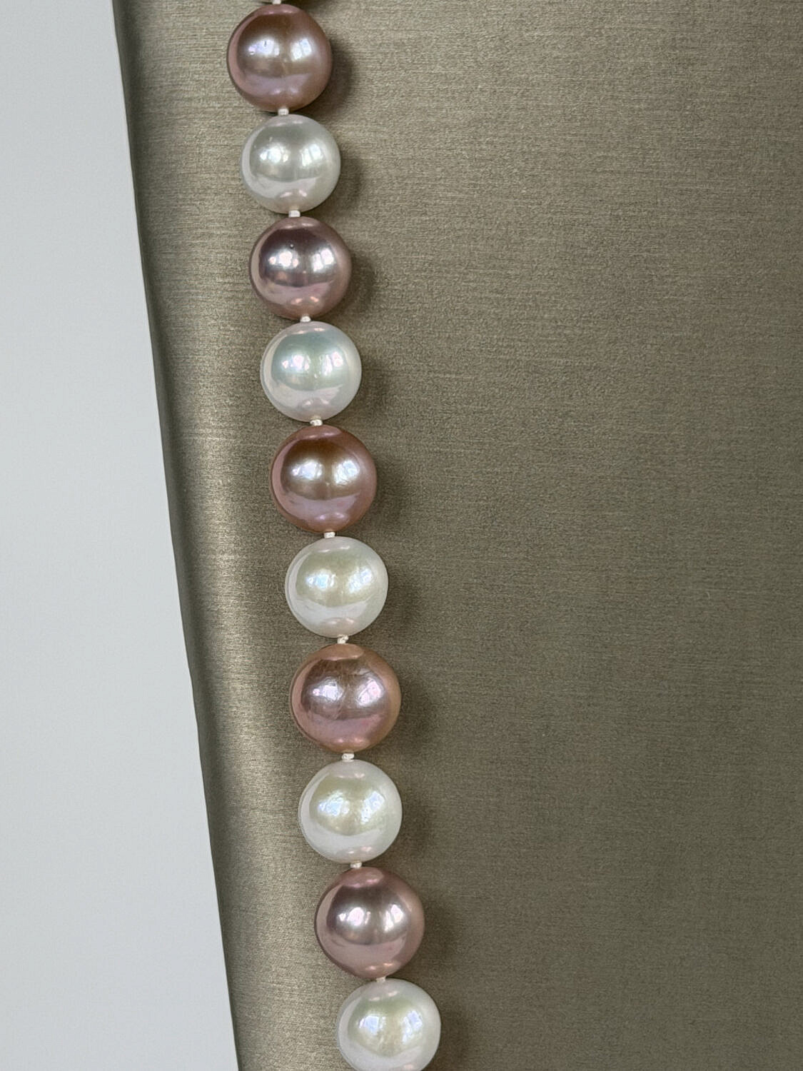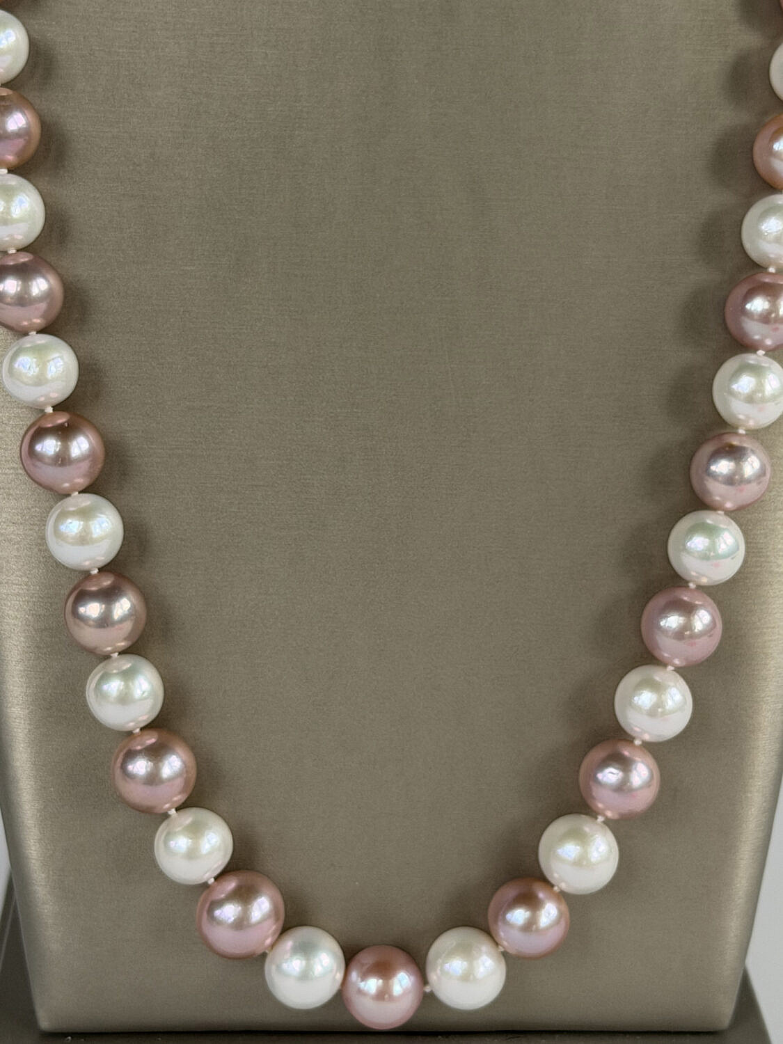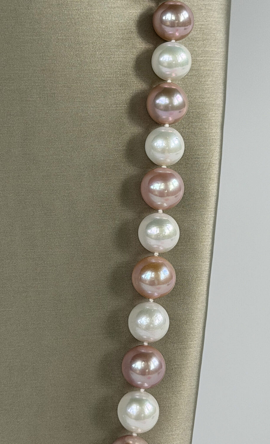Fine 11mm-14mm White and Pink Freshwater Pearl Necklace, 14k White Gold Clasp