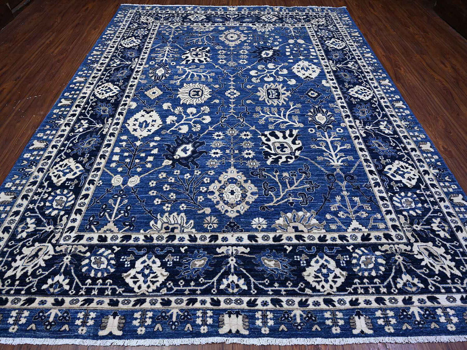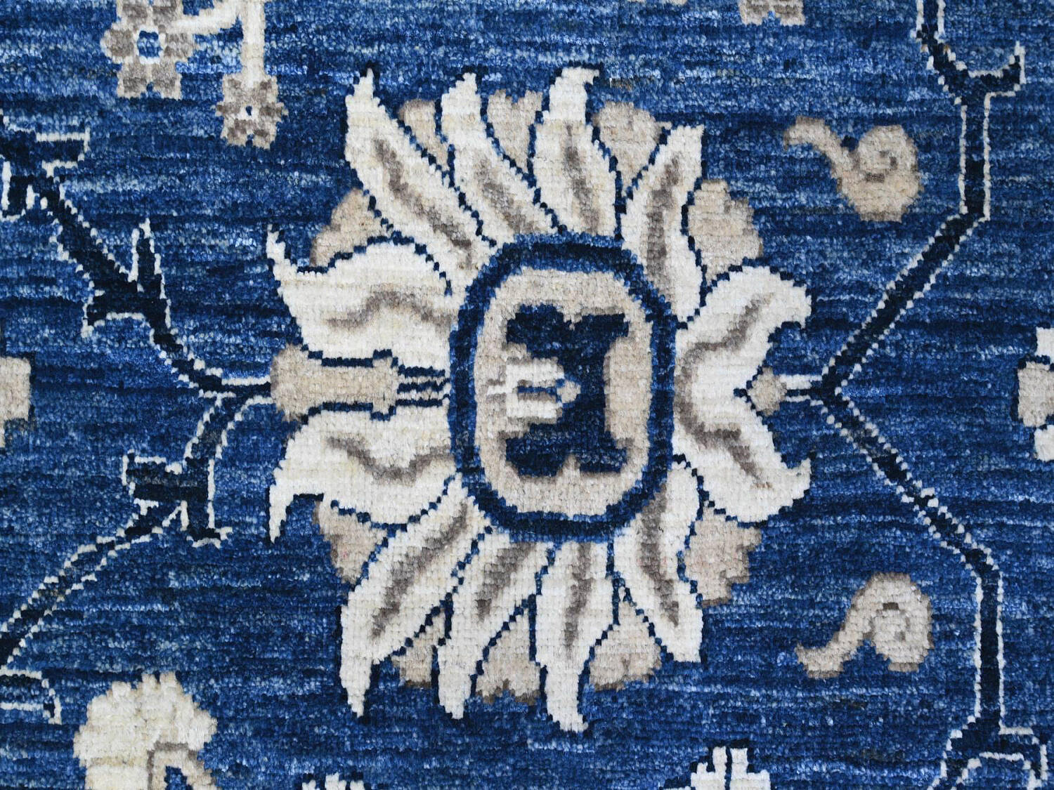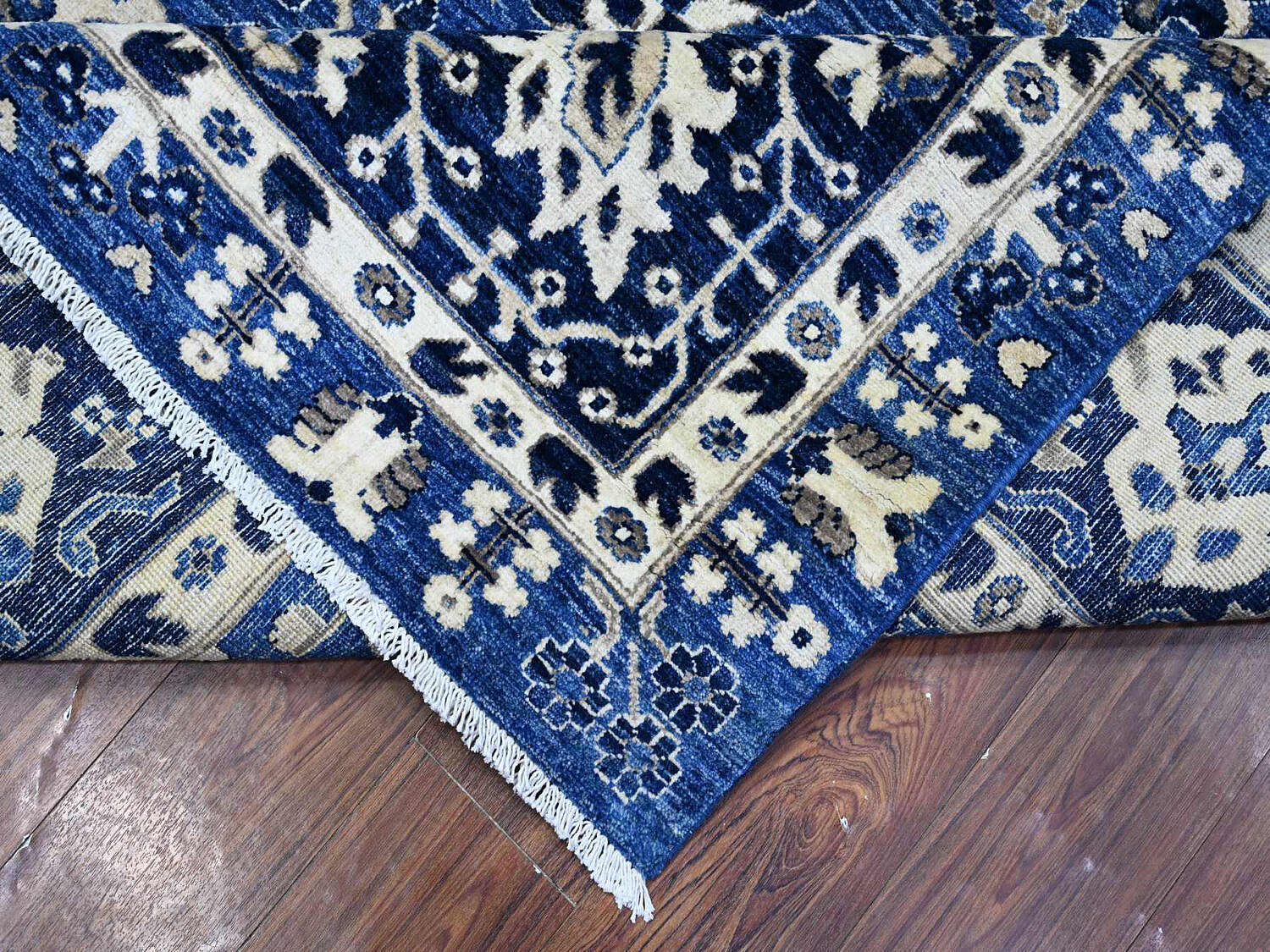 Fine Blue and White Peshawar Hand Knotted Wool Oriental Carpet Rug, allover Mahal design