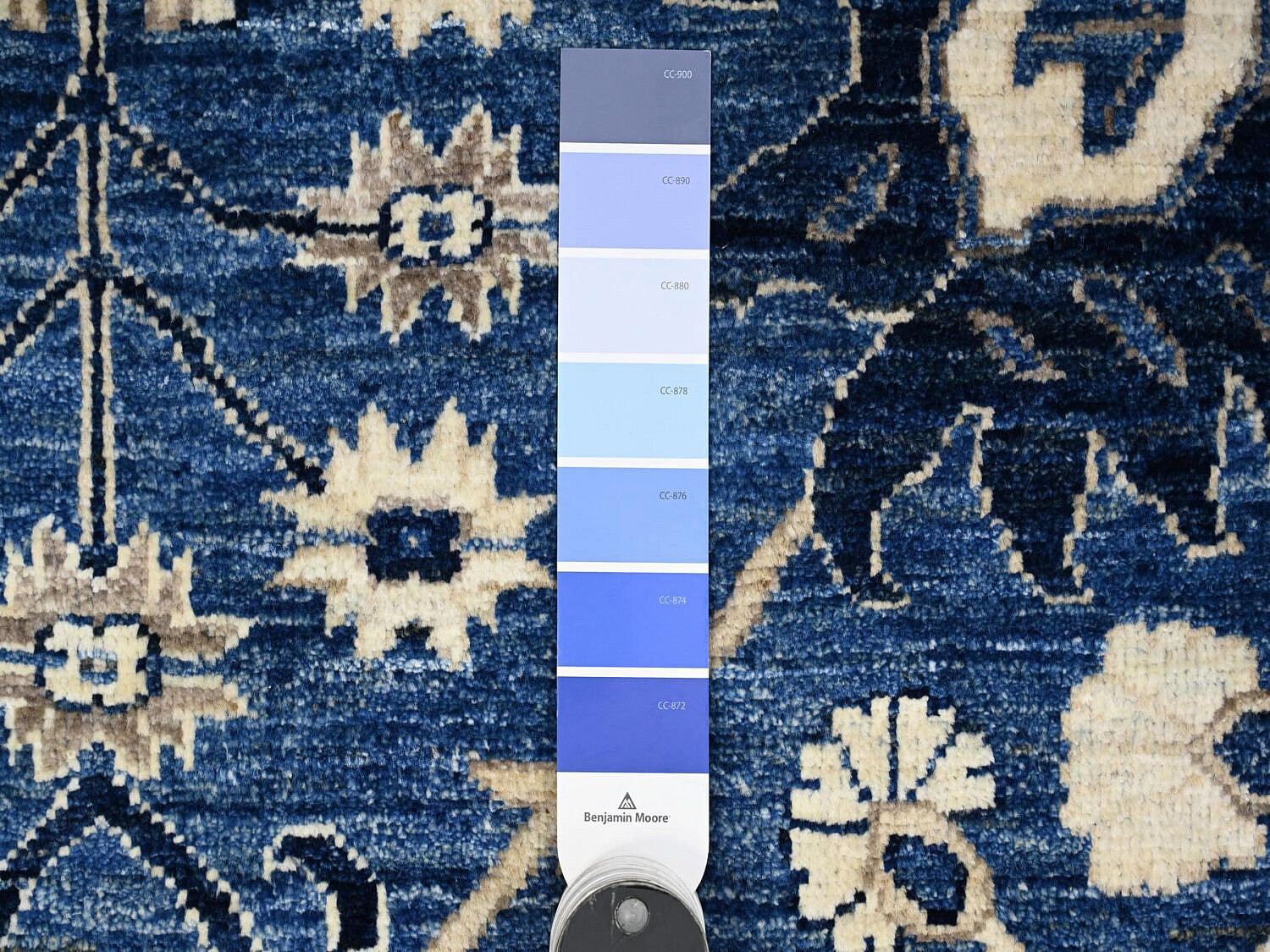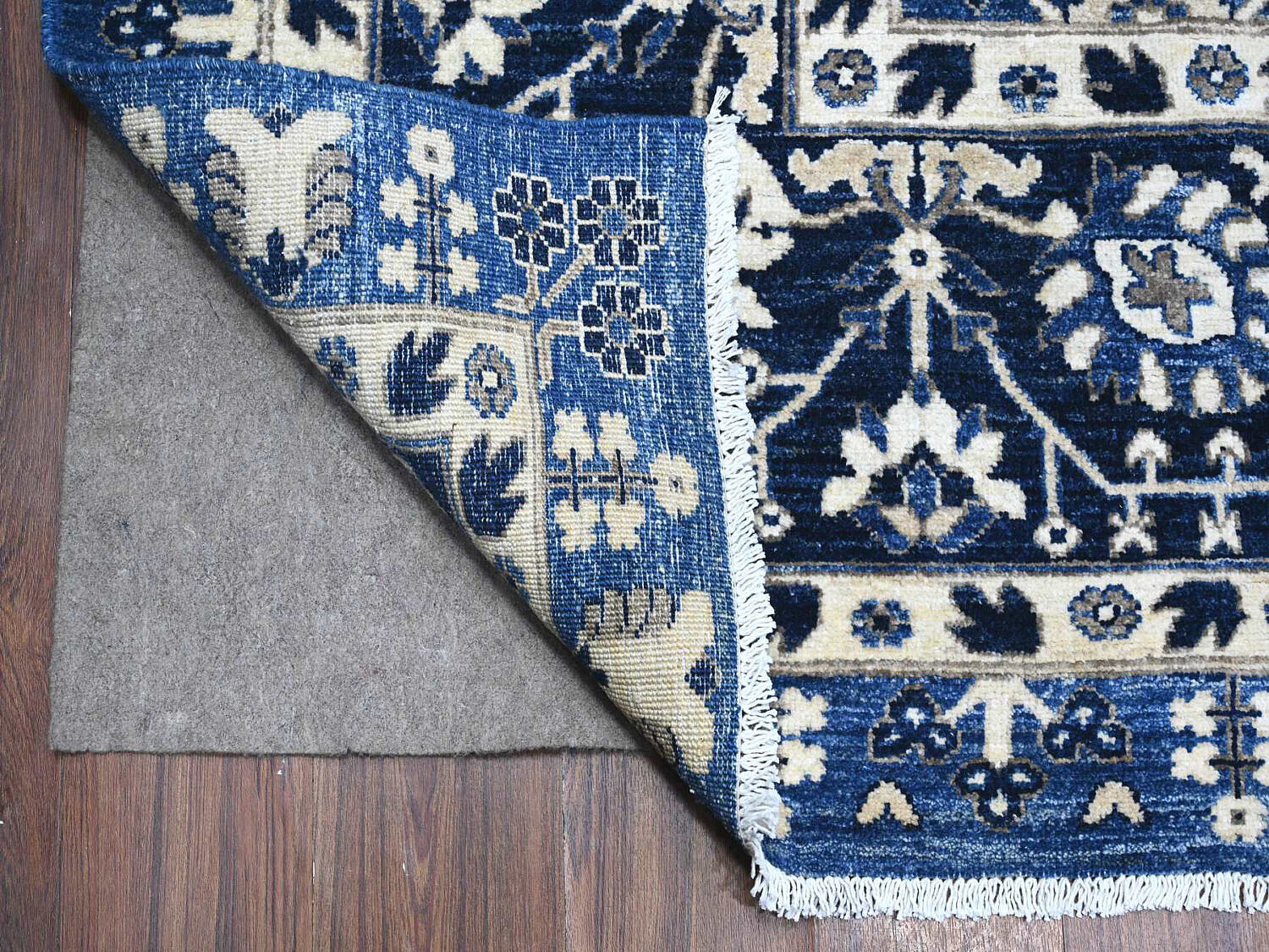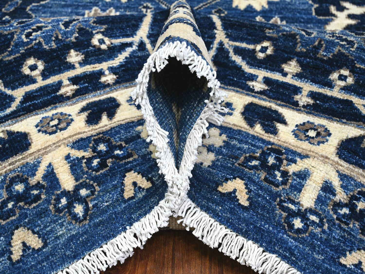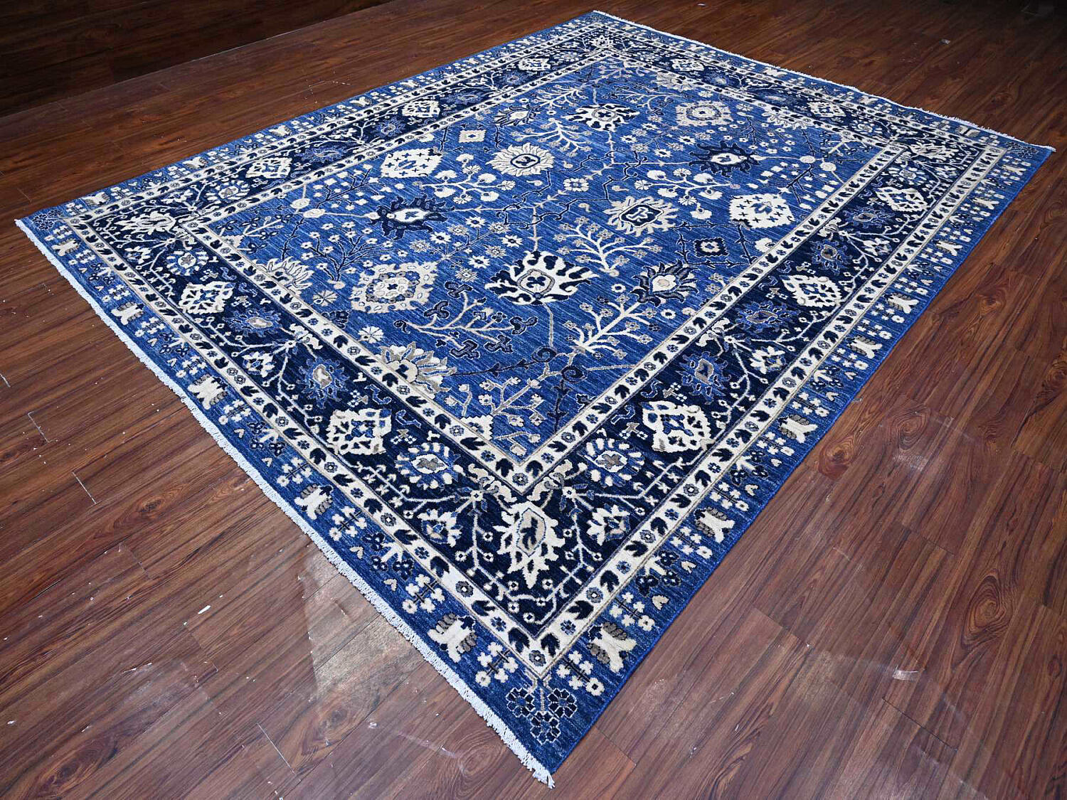Fine Blue and White Peshawar Hand Knotted Wool Oriental Carpet Rug, allover Mahal design
