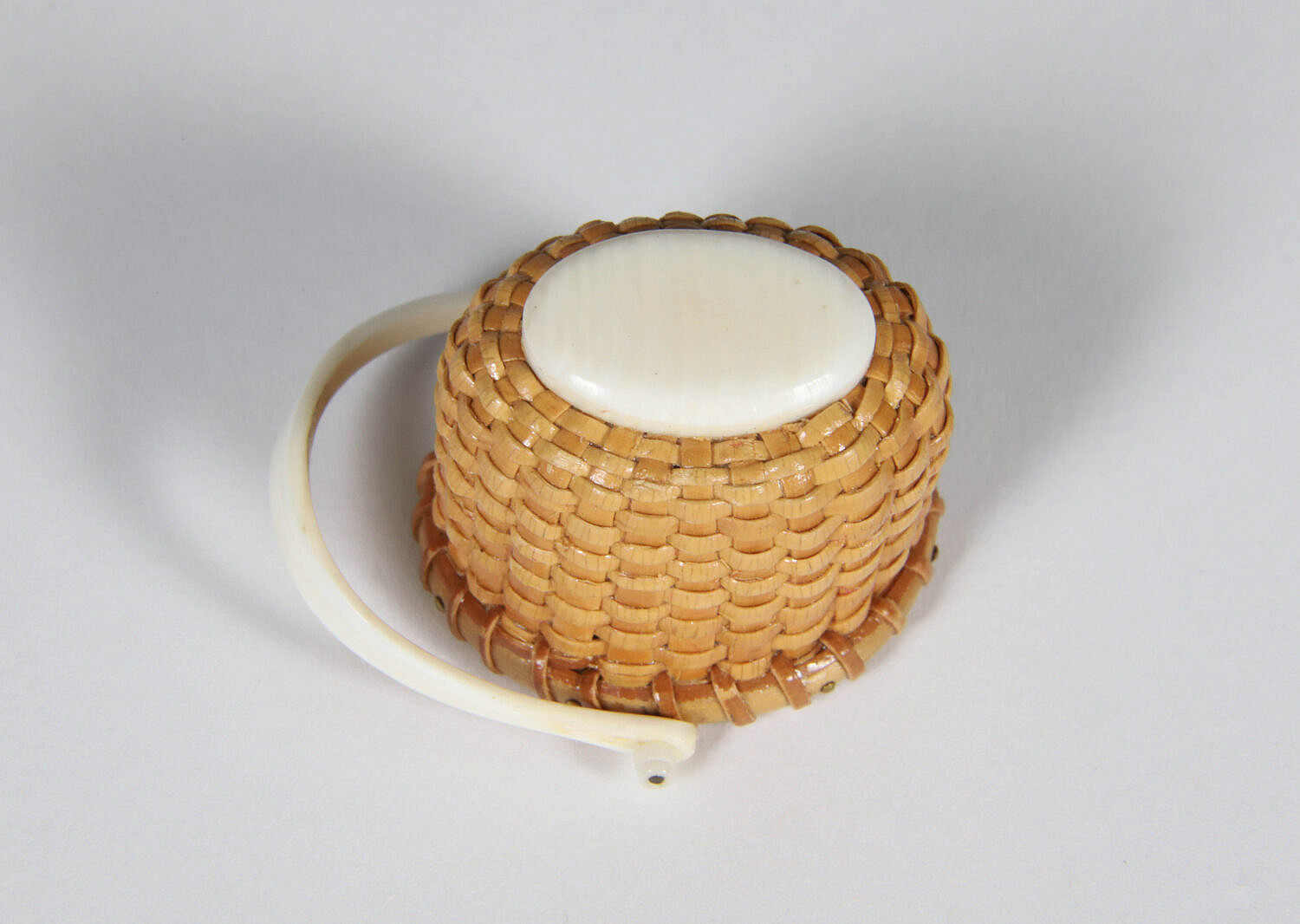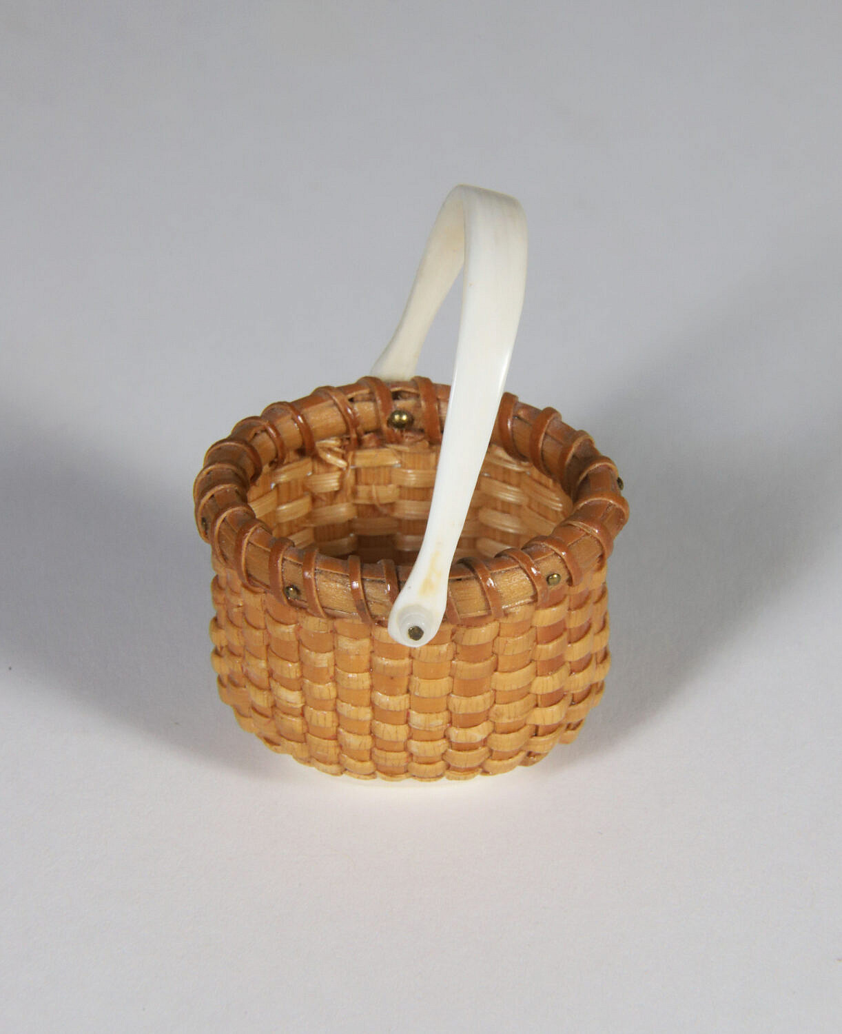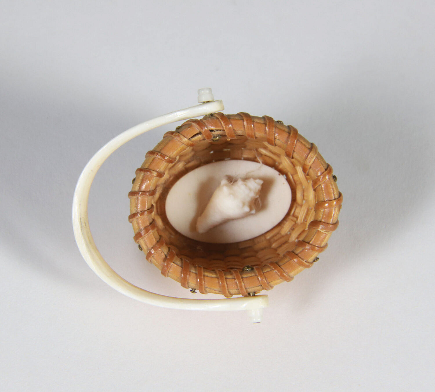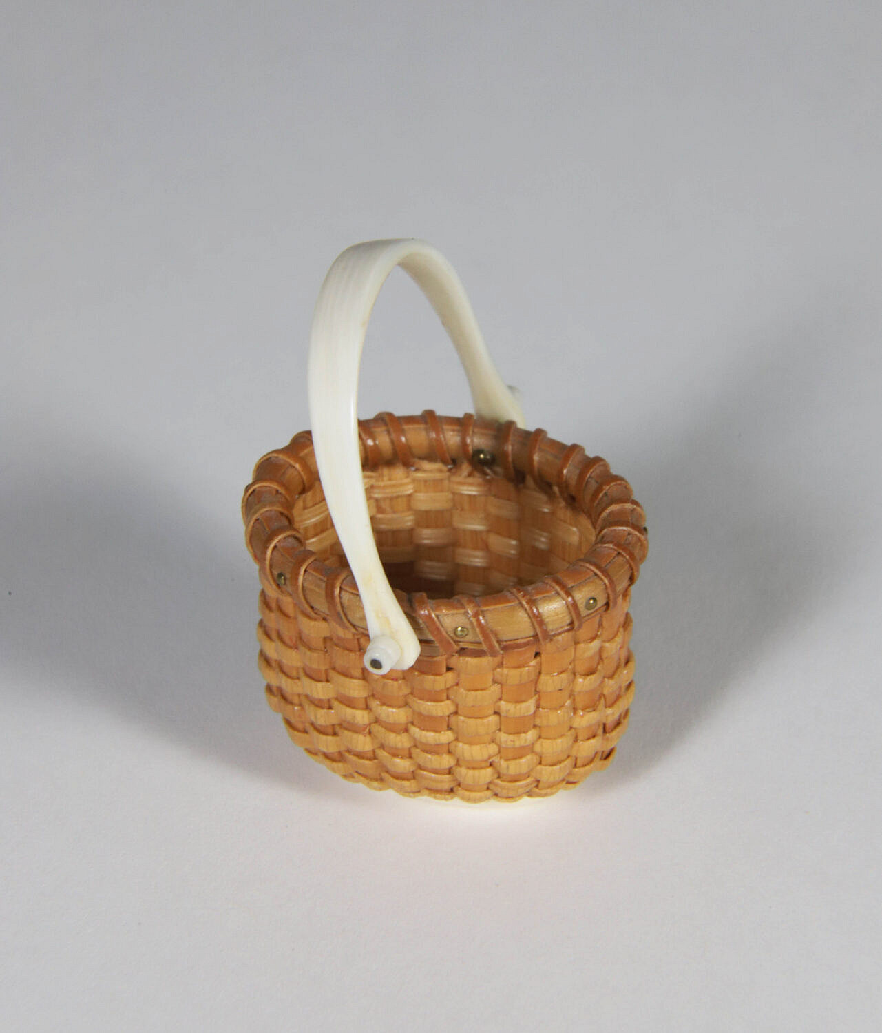 Jean M. Valerio Miniature Oval Swing Handle Nantucket Basket with Carved Seashell Interior