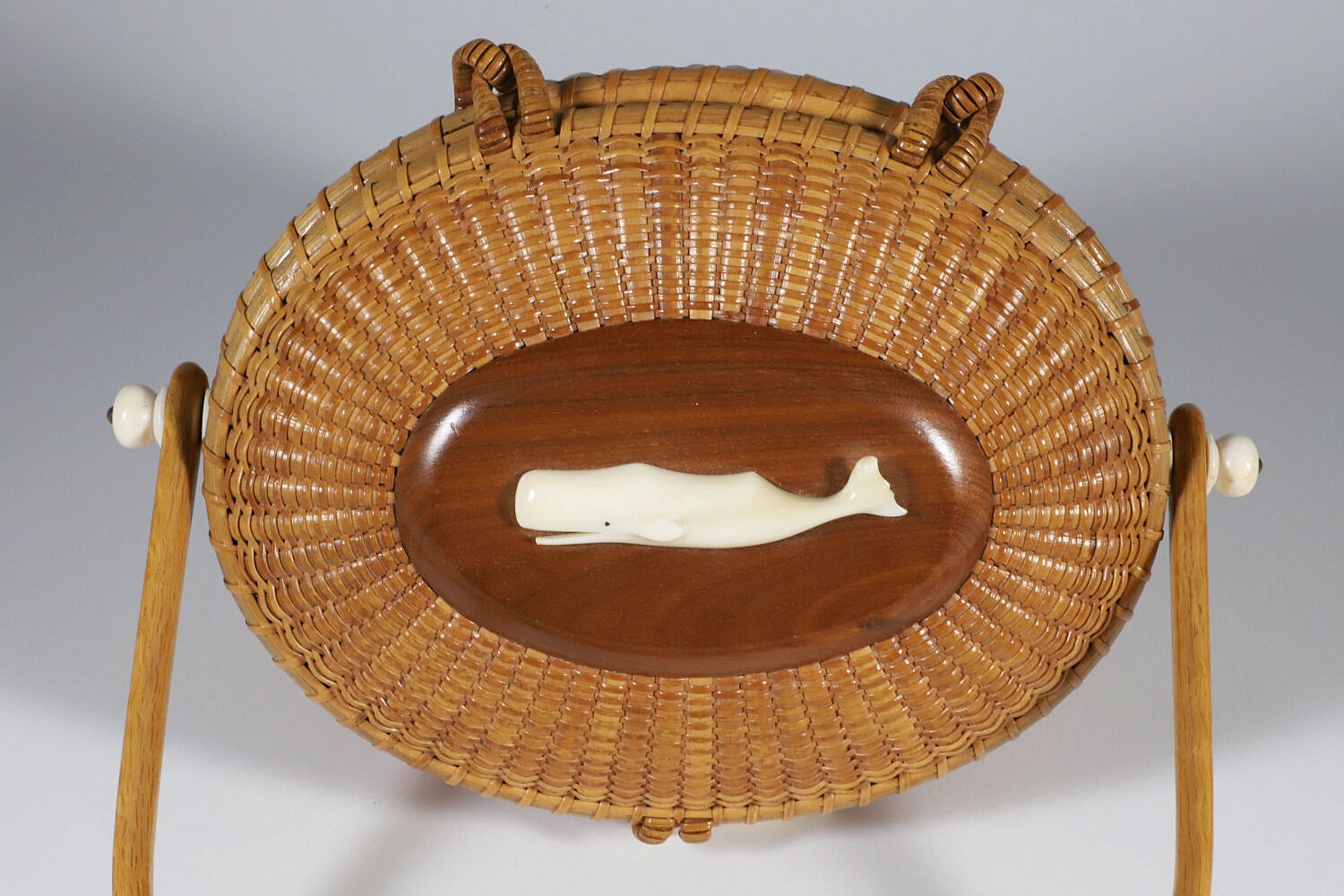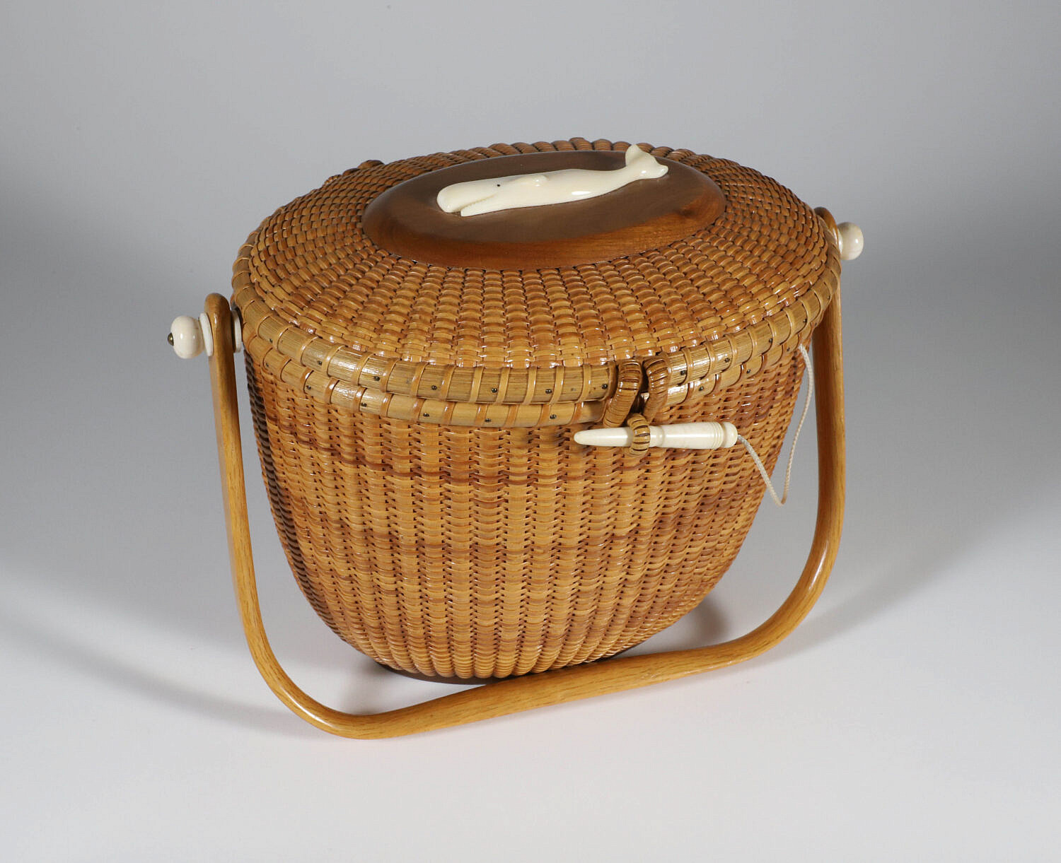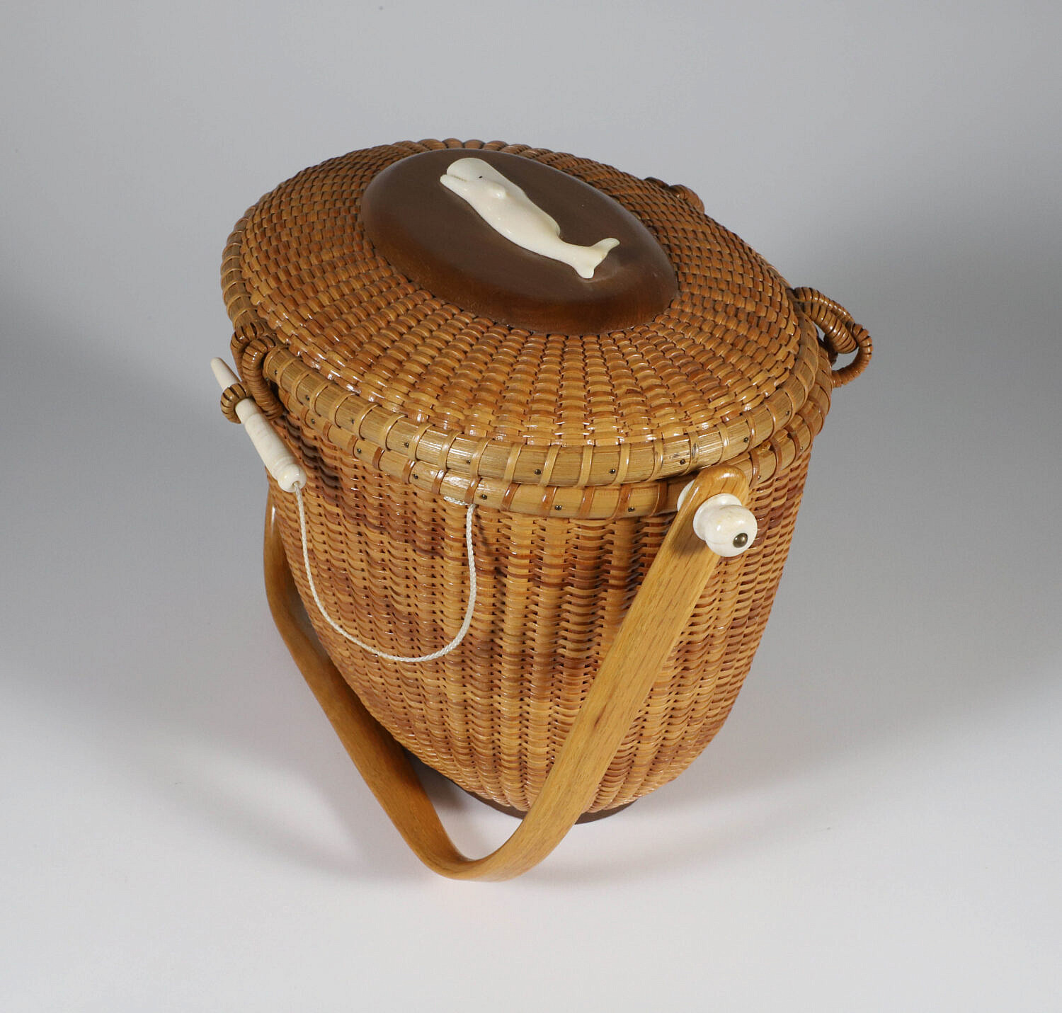 John and Frances Elder Nantucket Friendship Basket with Carved Sperm Whale on Lid