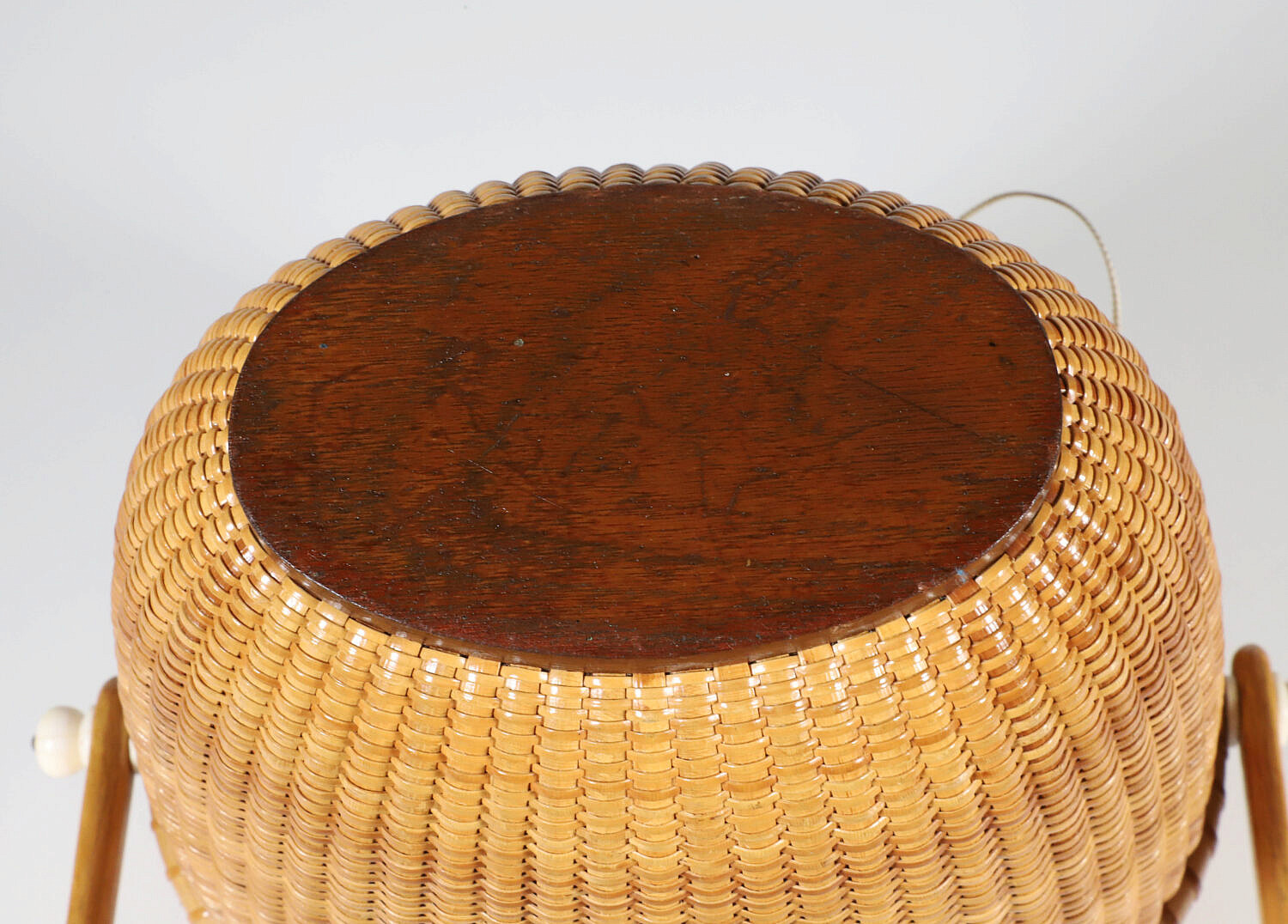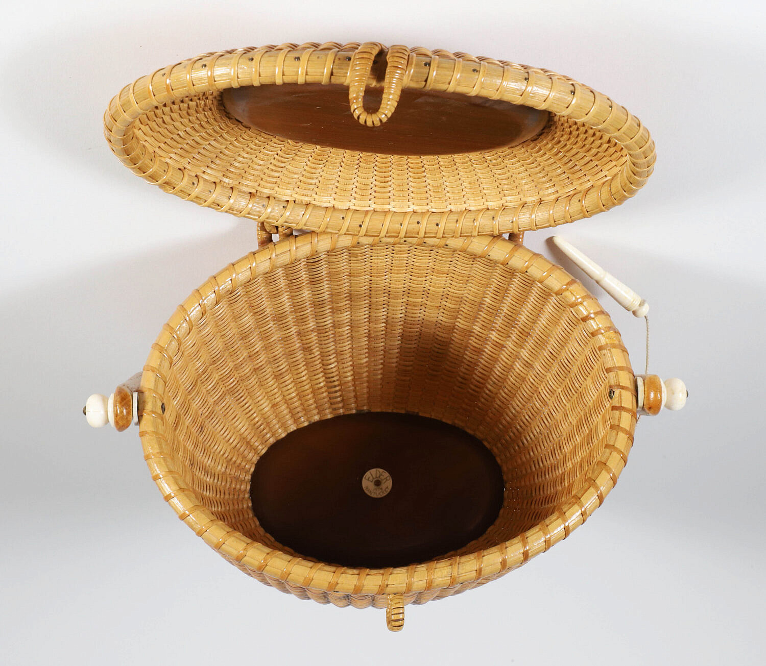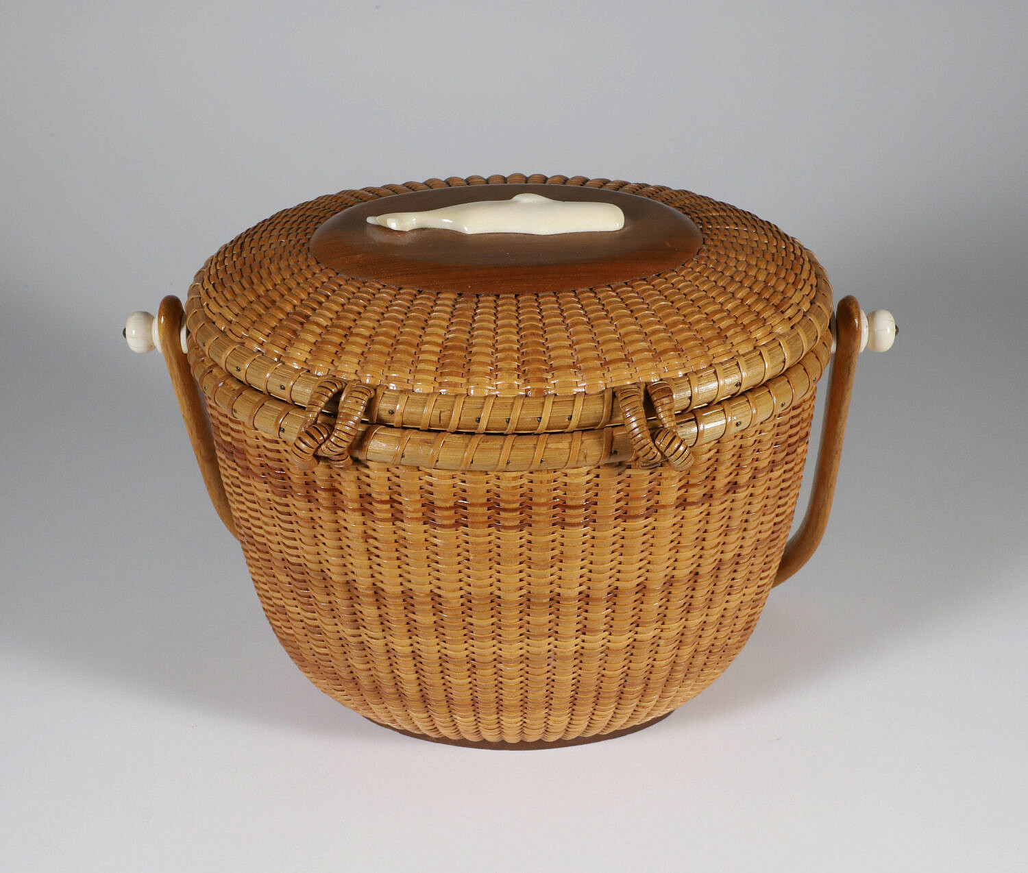 John and Frances Elder Nantucket Friendship Basket with Carved Sperm Whale on Lid