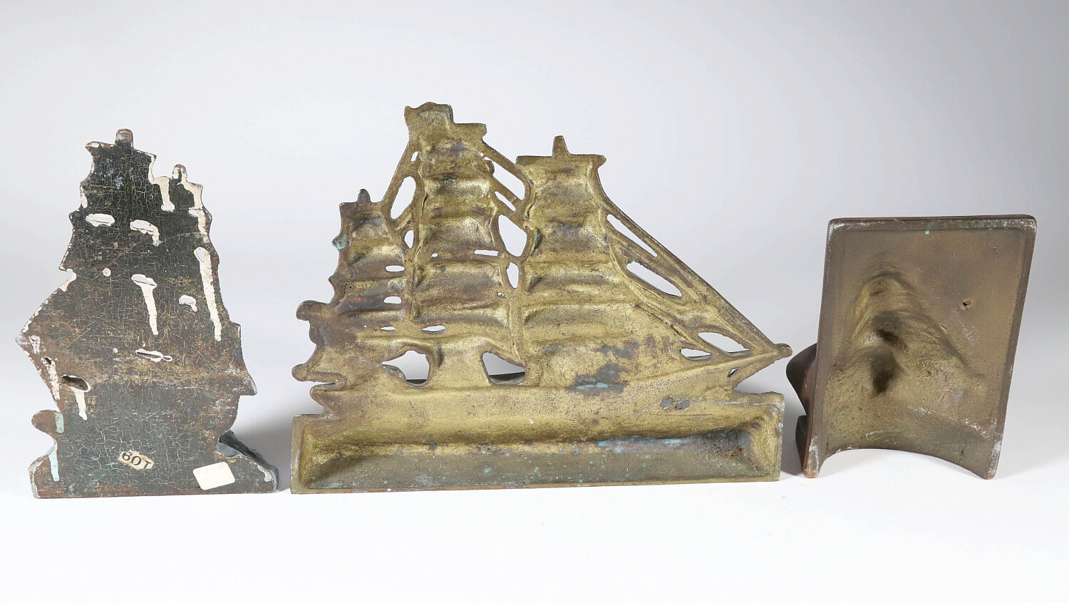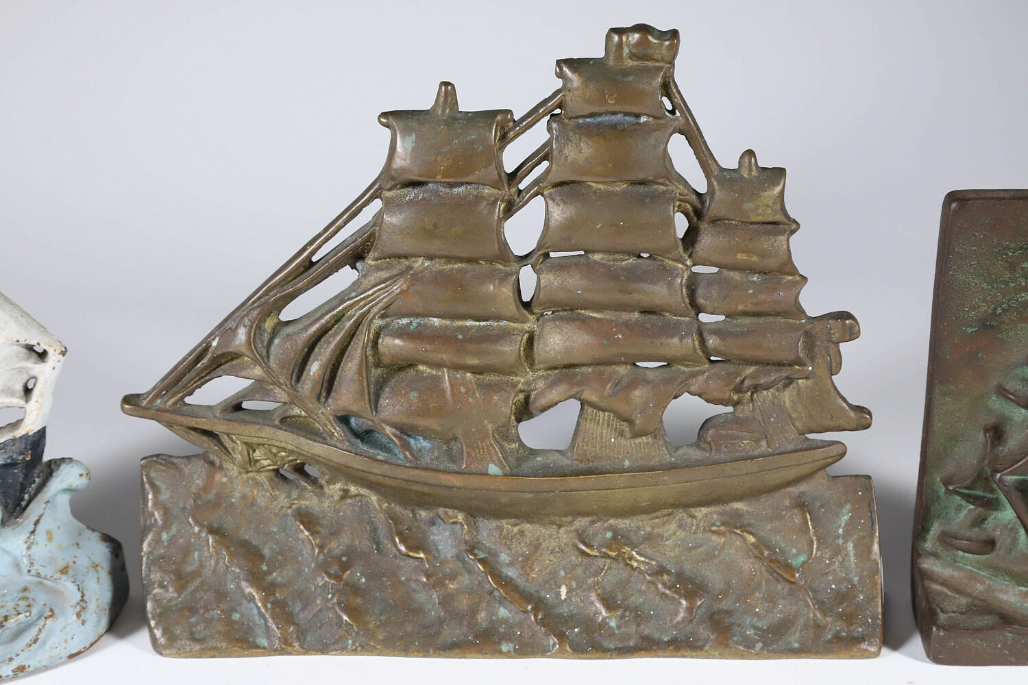 Lot of Three Cast Iron Clipper Ship Doorstops and Bookends