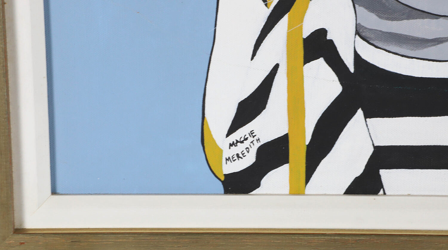 Maggie Meredith (1922-2012) Oil on Canvas “Cat in a White Sun Hat”, with large sun shining in the background, signed lower left Maggie Meredith, in thin wood frame