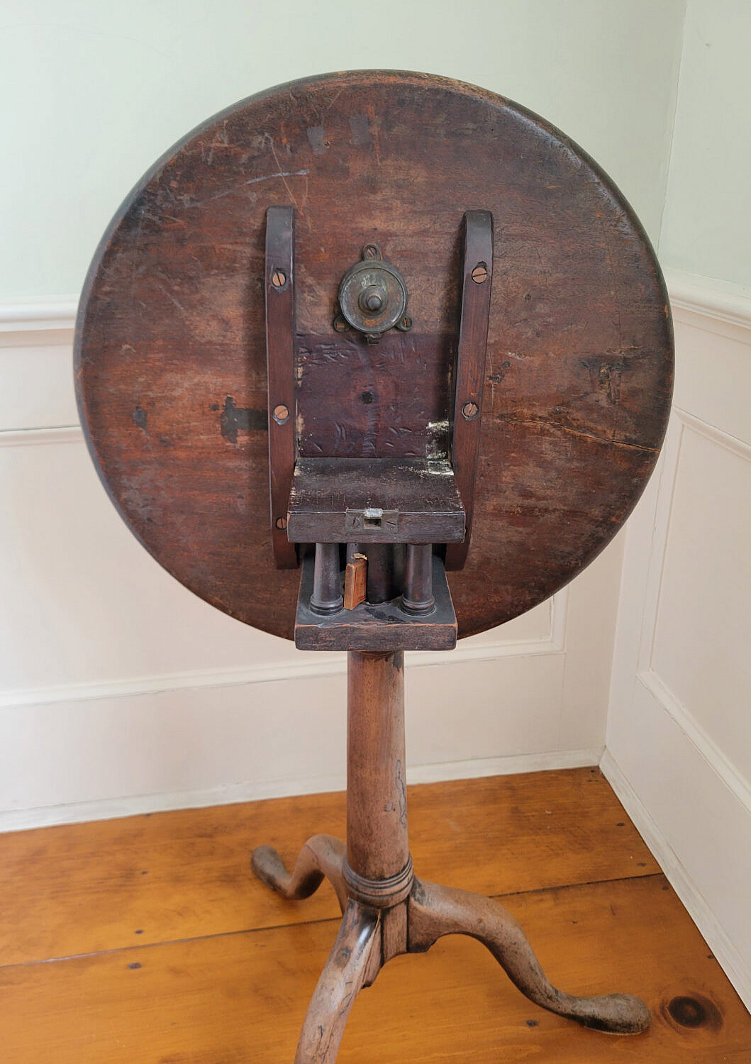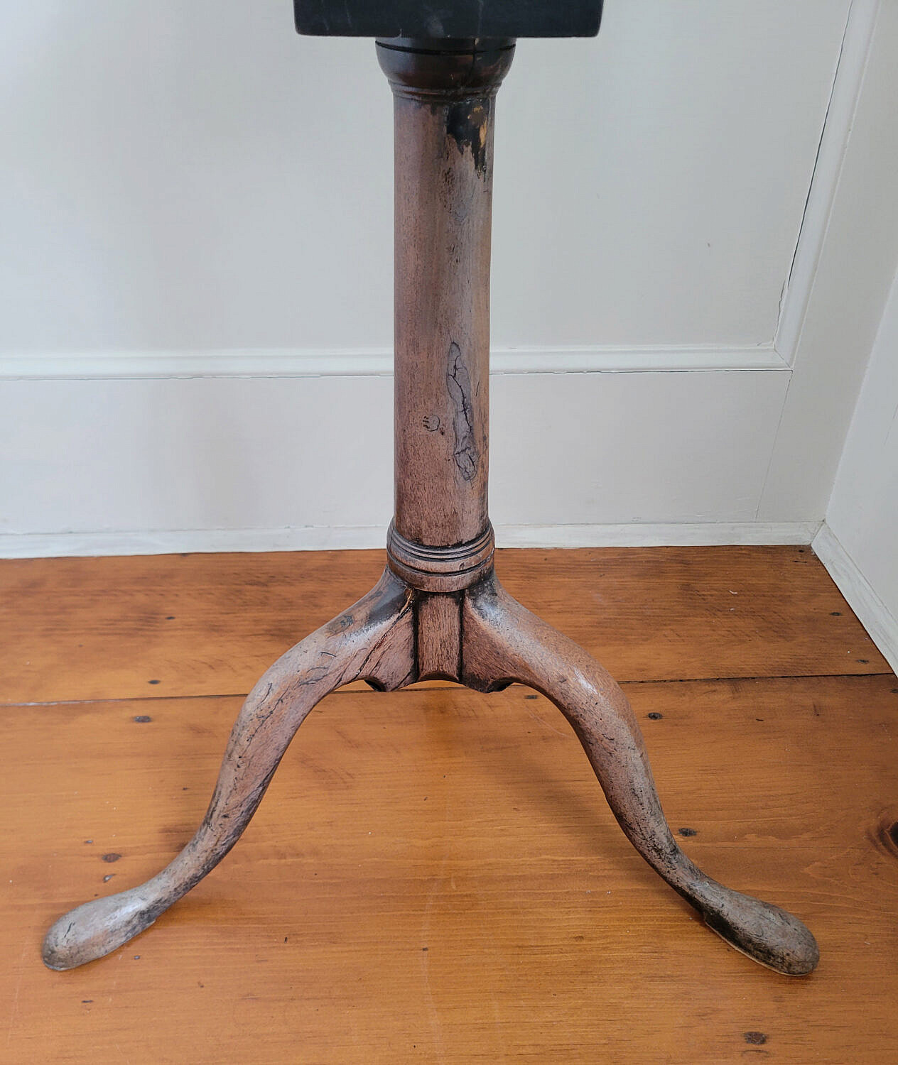 Mahogany Birdcage Round Tilt Top Candlestand, 19th Century, straight standard continuing to down-swept legs ending in slipper feet