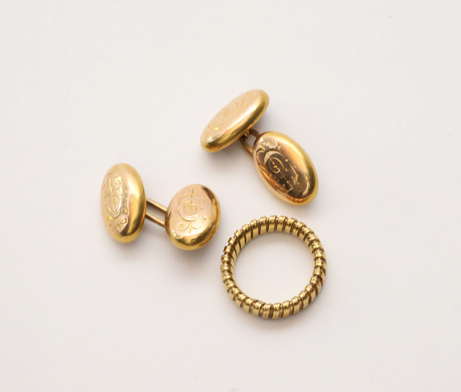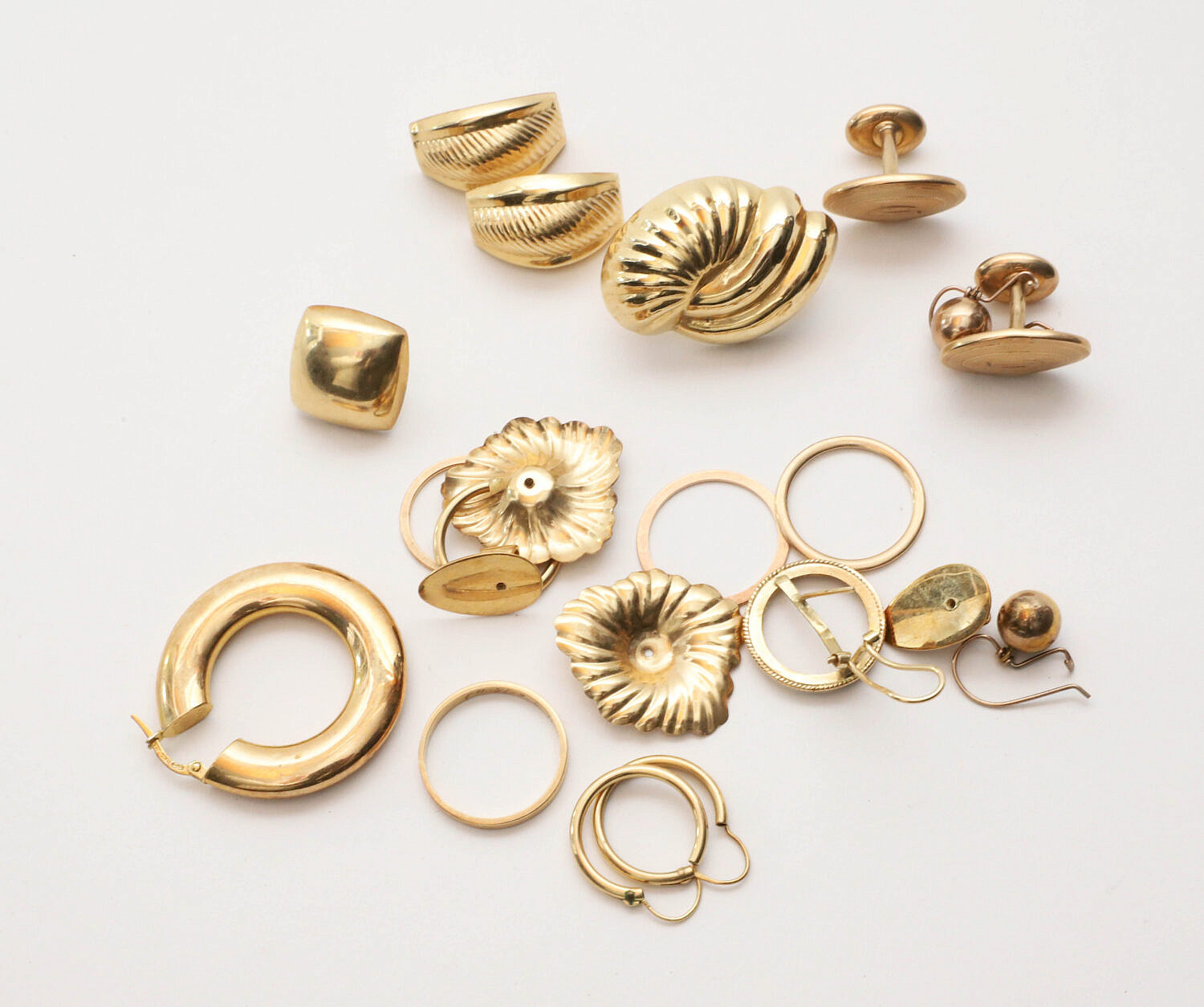Mixed Lot of 18k, 14k, and 10k Gold Jewelry including ring, cuff links, and mis-matched earrings
