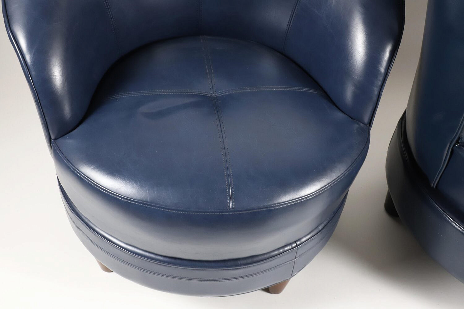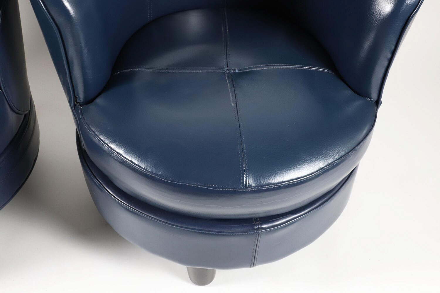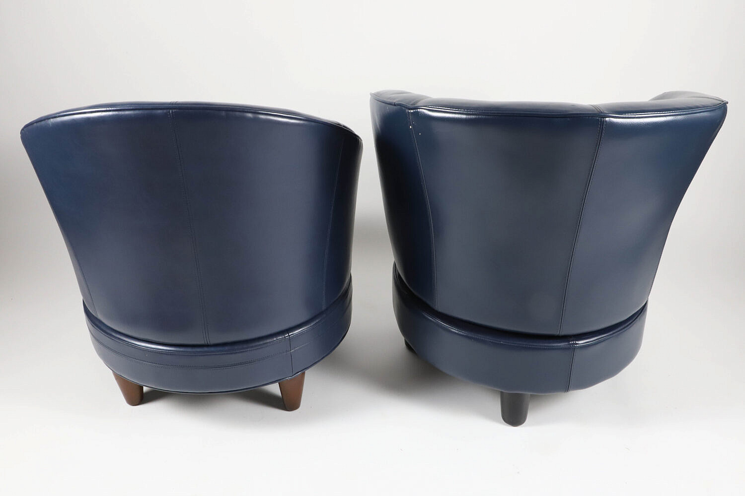 Near Pair of Contemporary Navy Blue Swivel Chairs