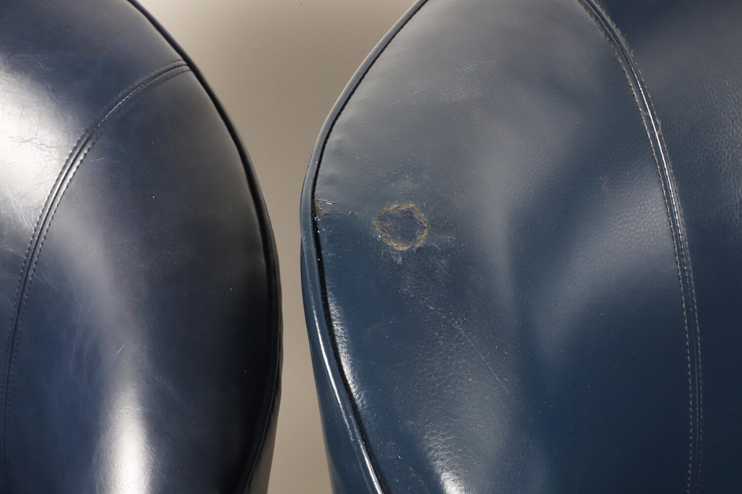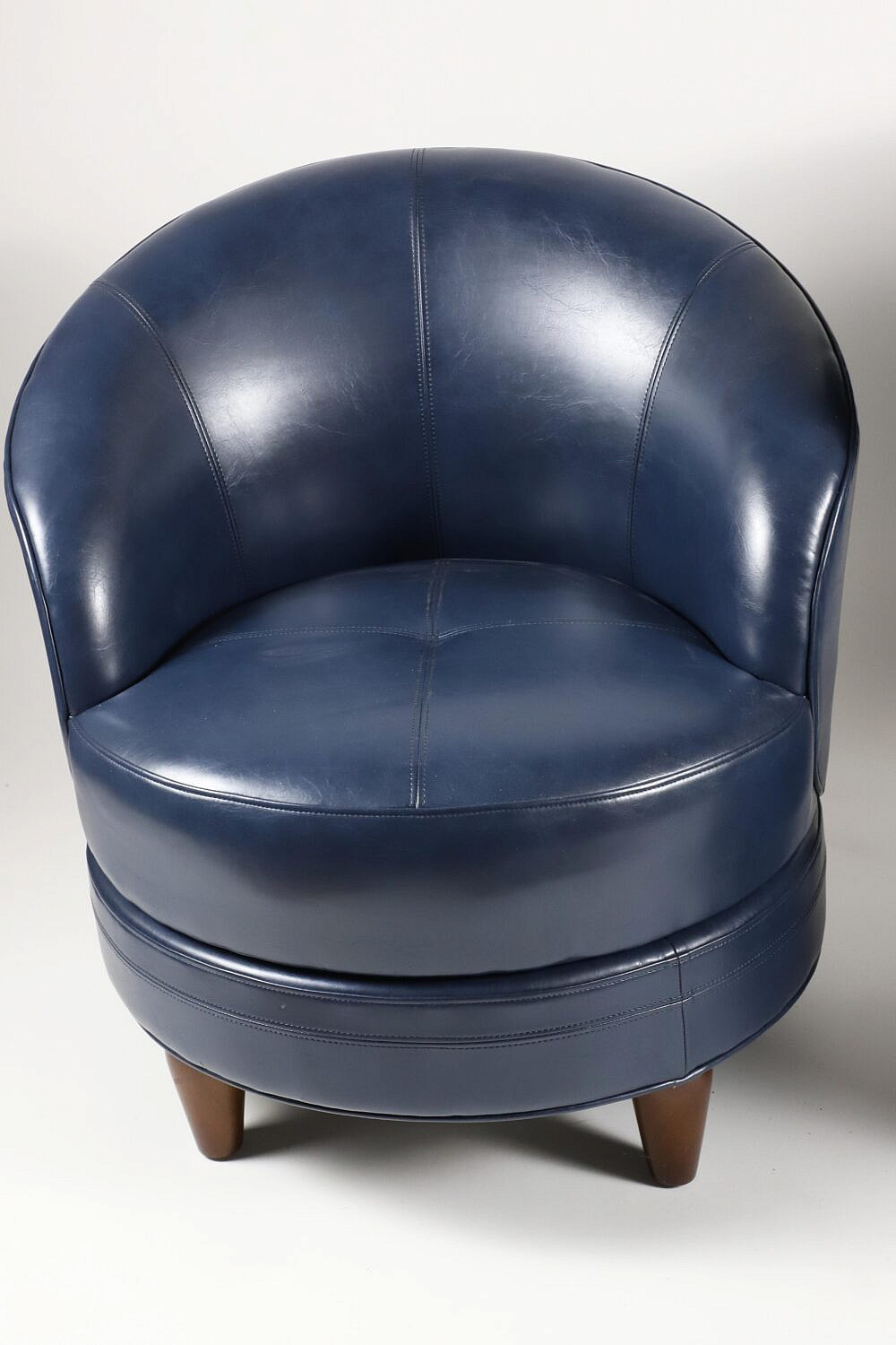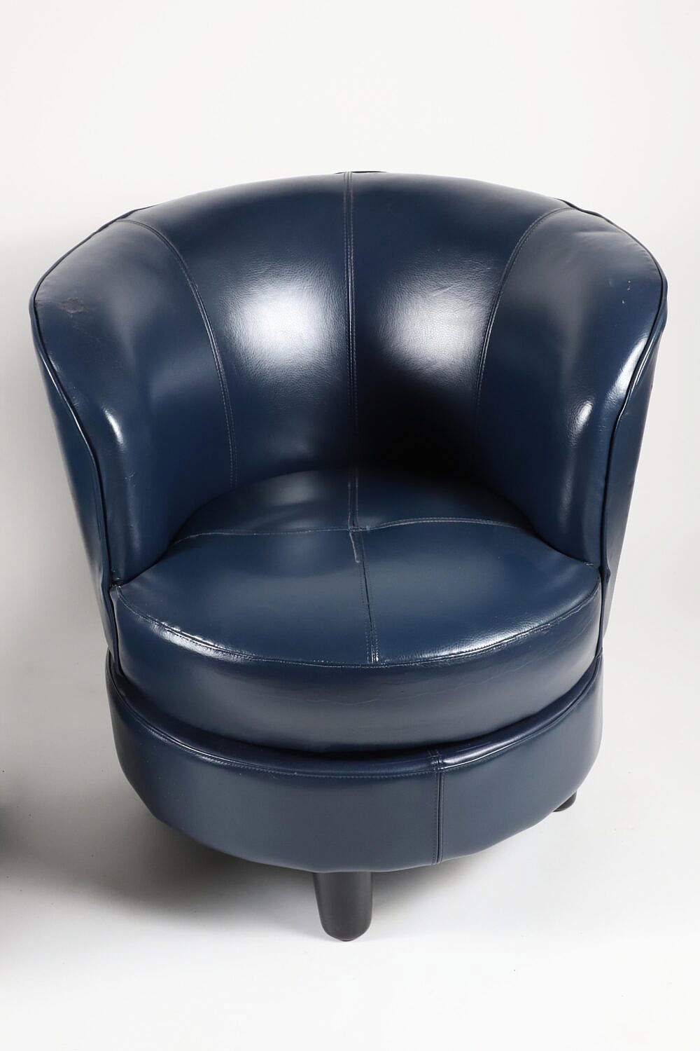 Near Pair of Contemporary Navy Blue Swivel Chairs