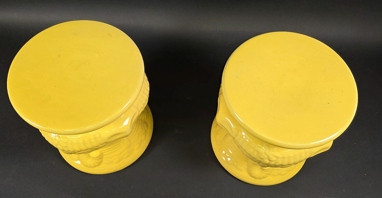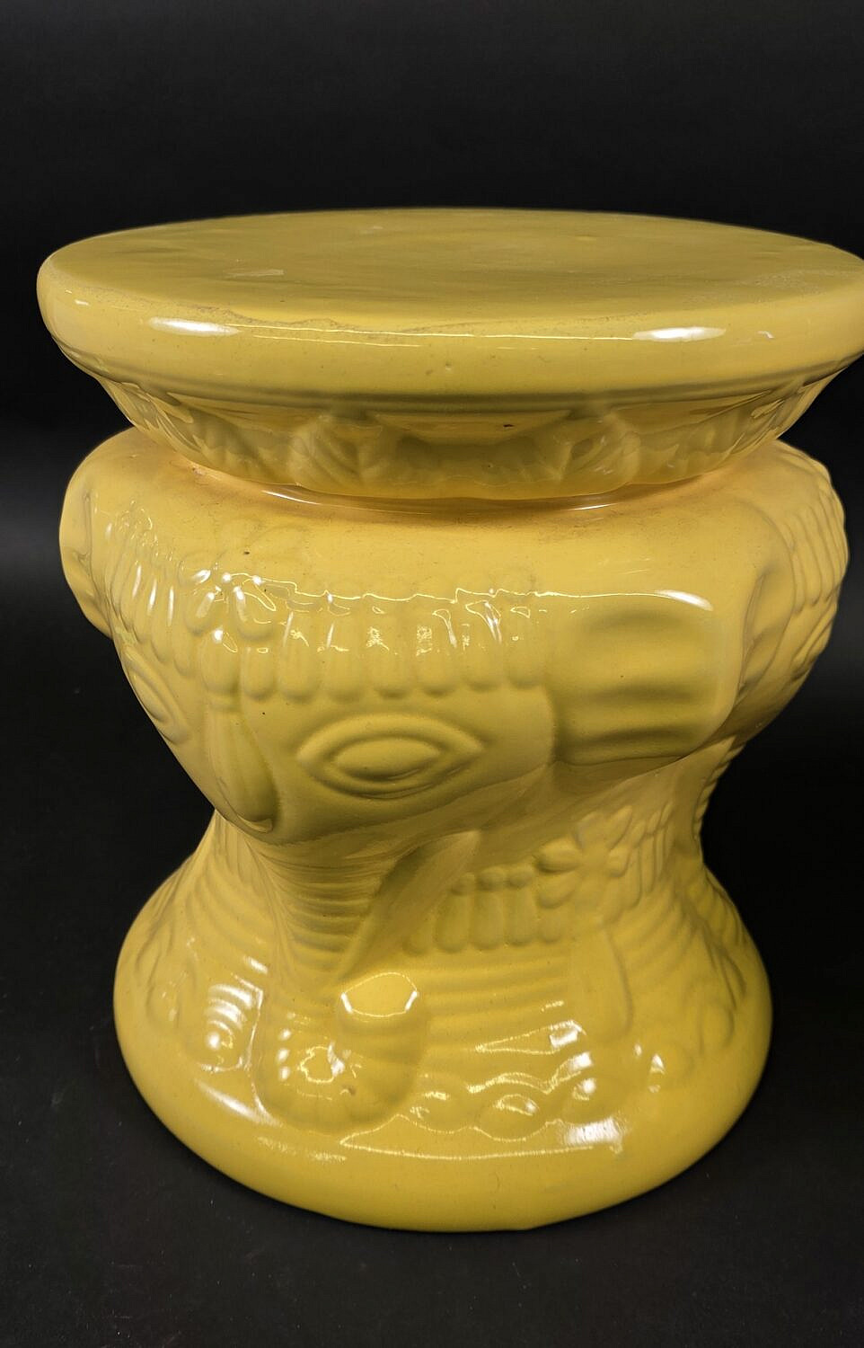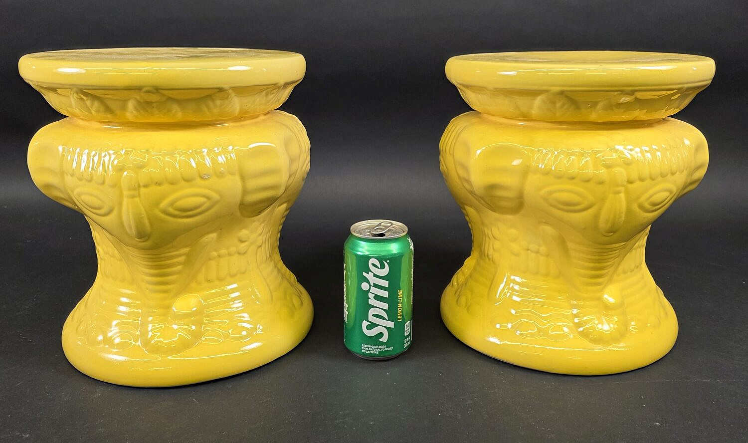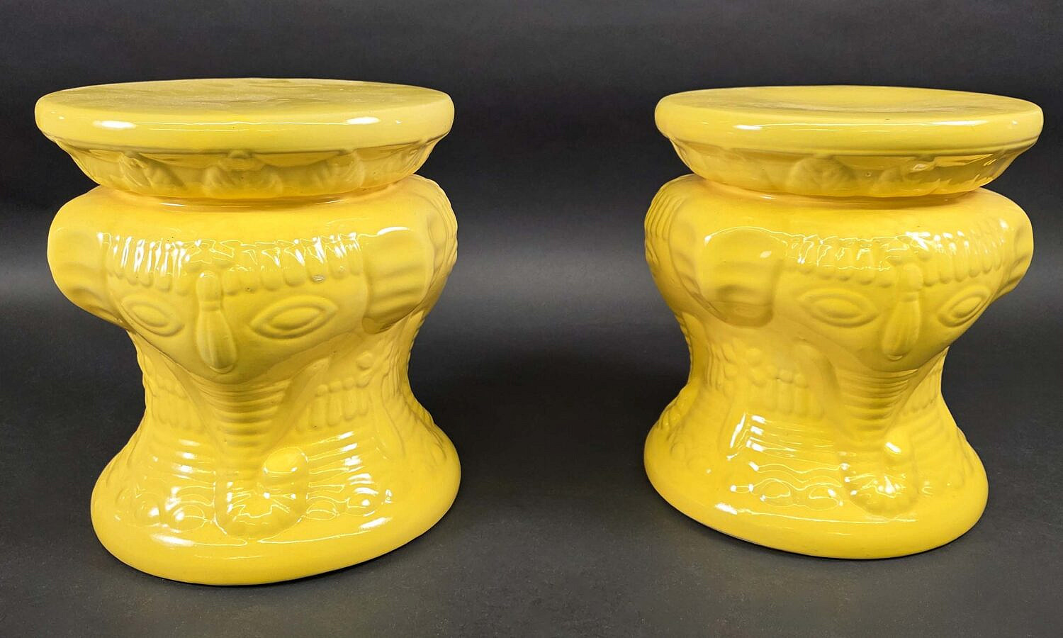 Pair of Ceramic Yellow Glaze Elephant Garden Stools