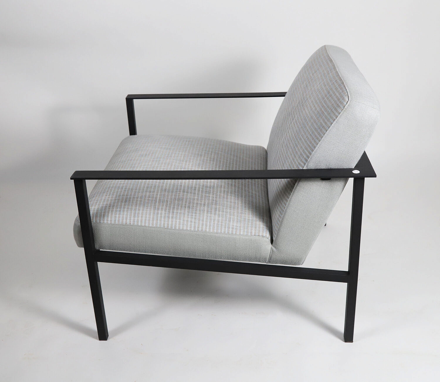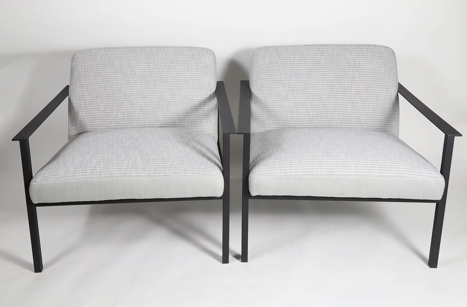 Pair of Contemporary Mid Century Modern Style Metal Upholstered Open Armchairs