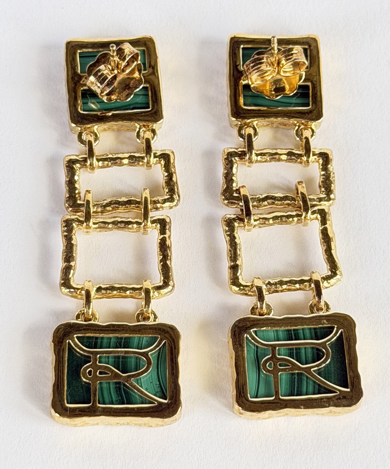 Pair of “Cubist” Malachite Sterling Silver Vermeil Dangle Earrings
