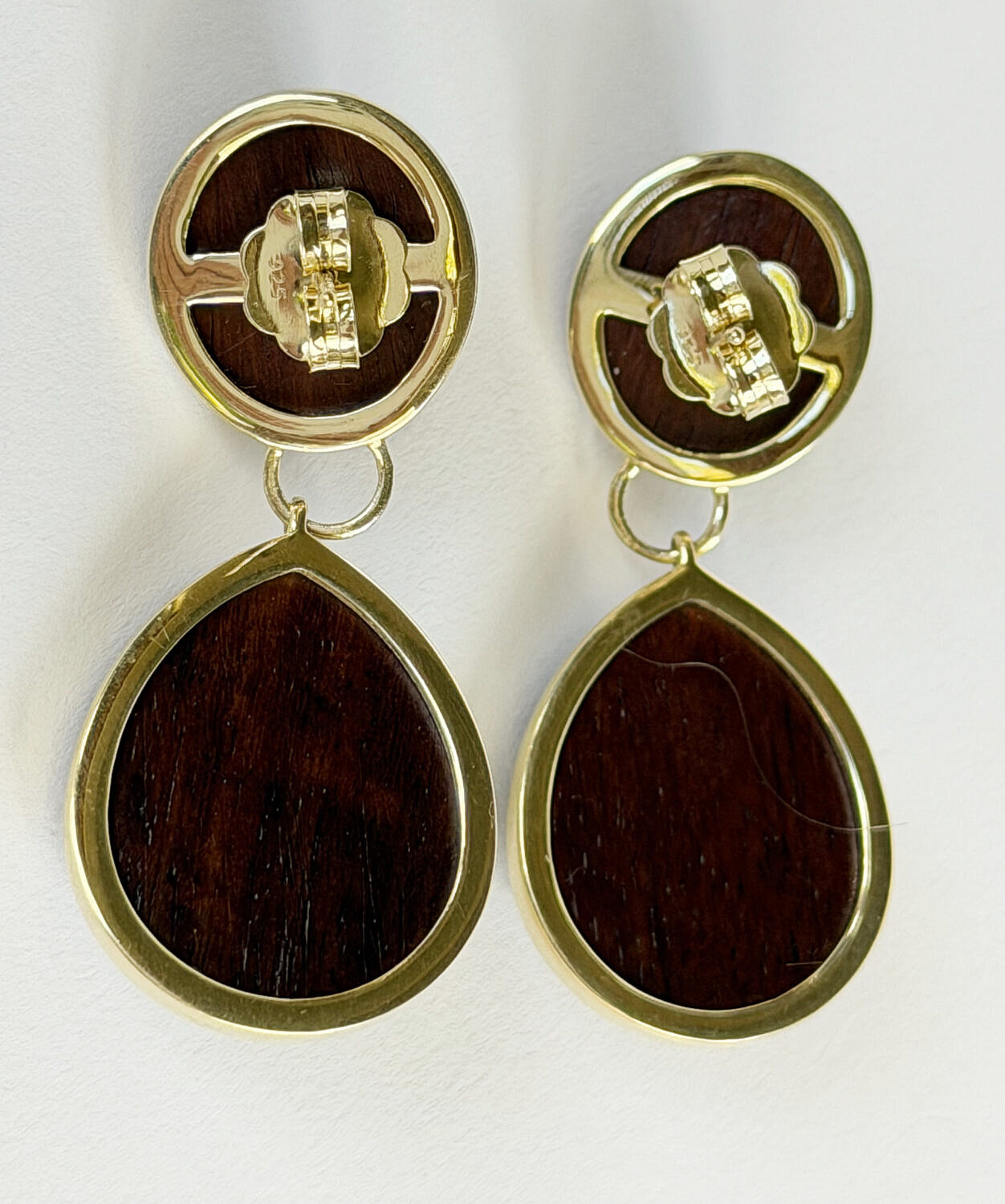 Pair of Faceted Malachite and Wood Dangle Earrings