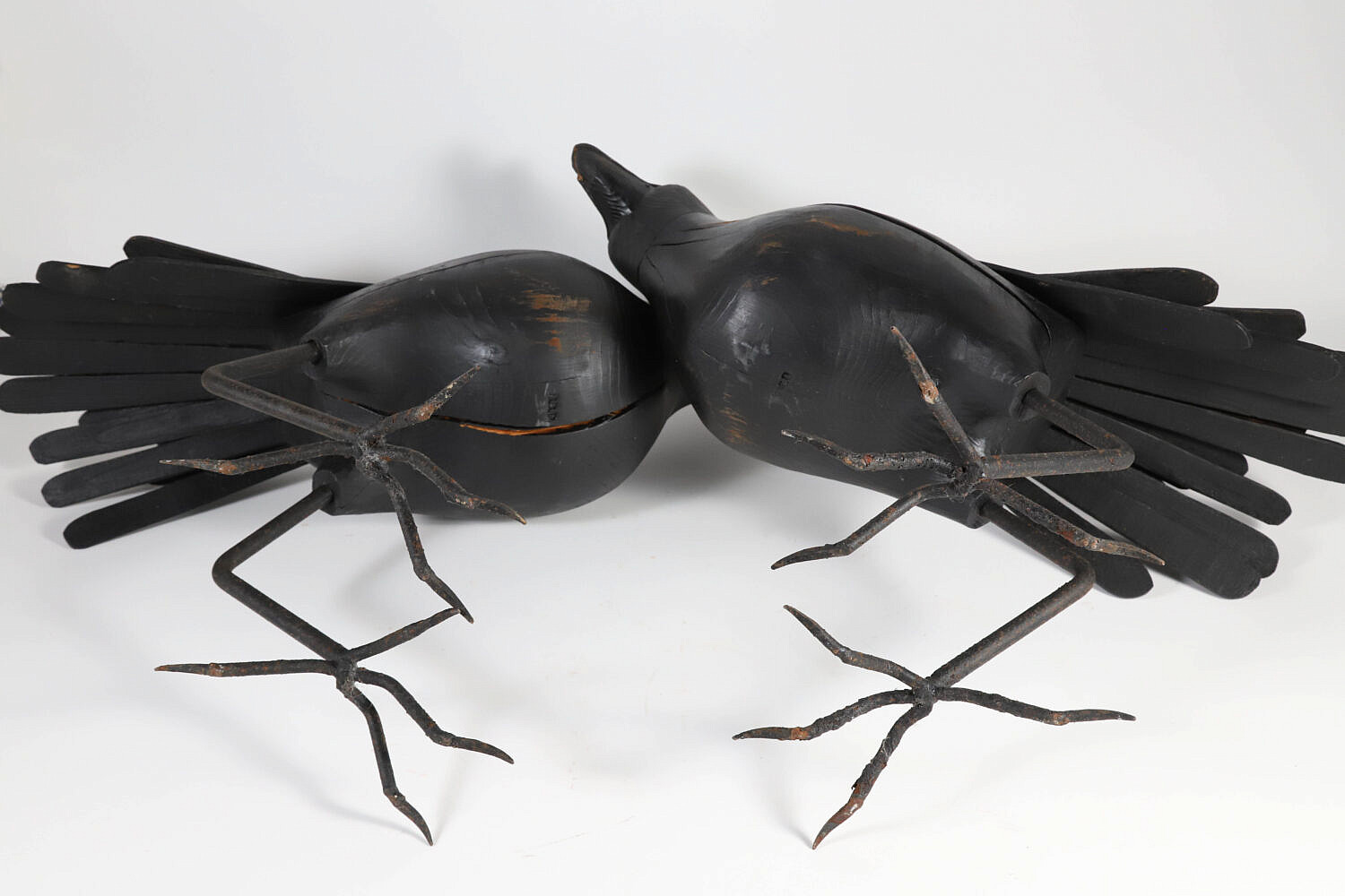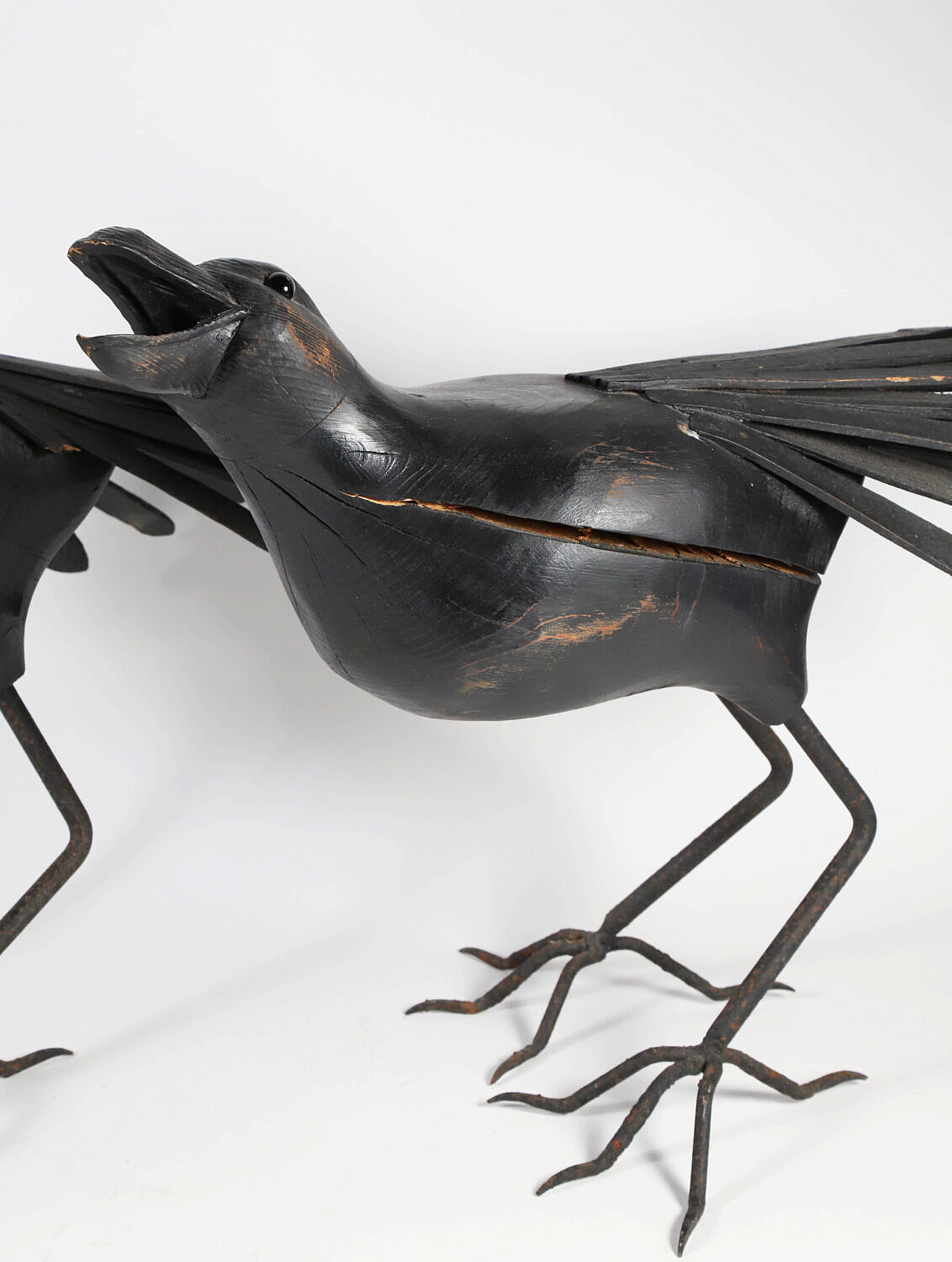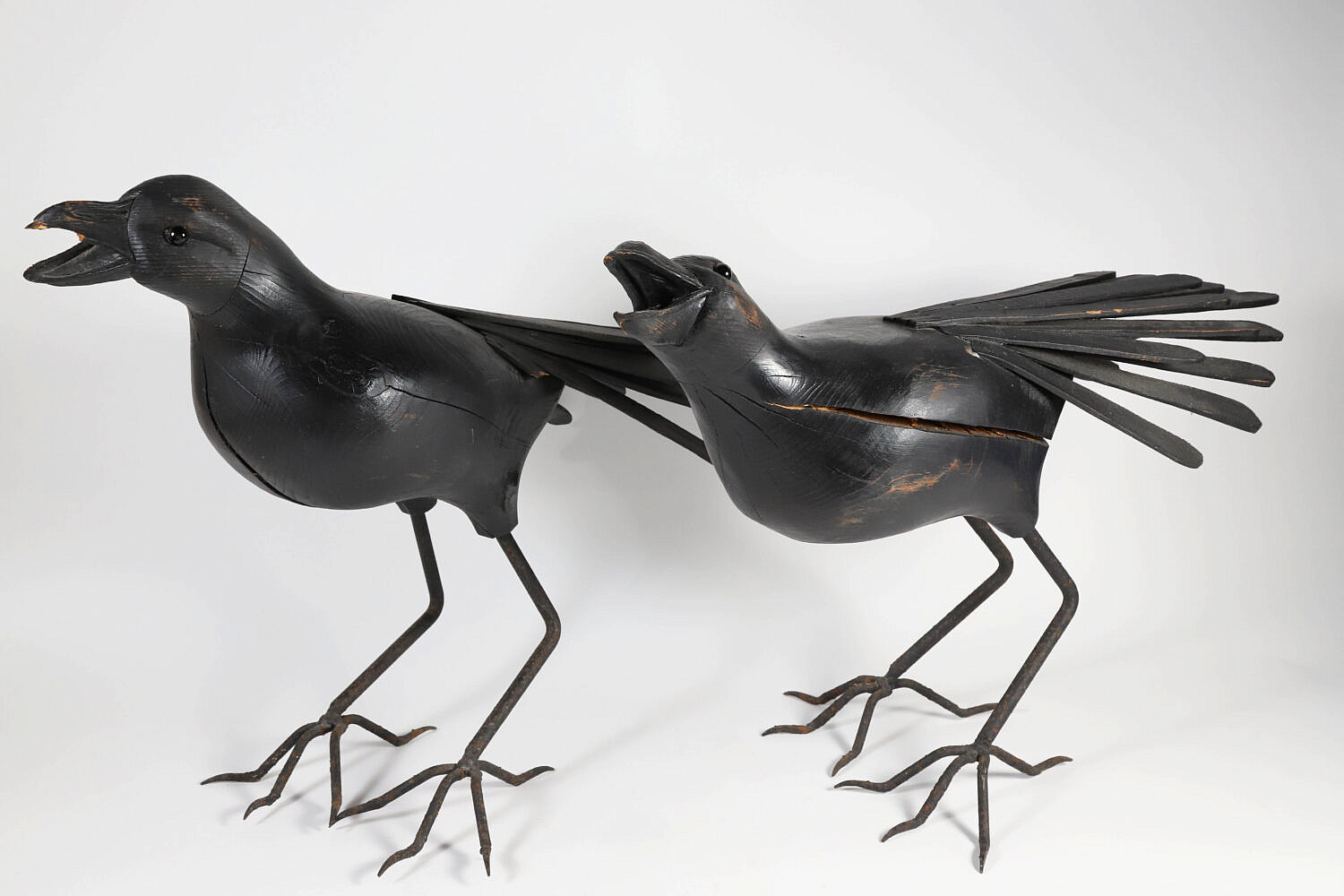 Pair of Large Carved Wood and Iron Ravens