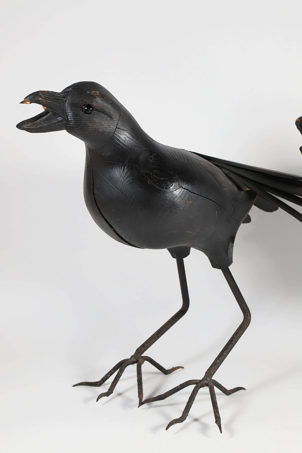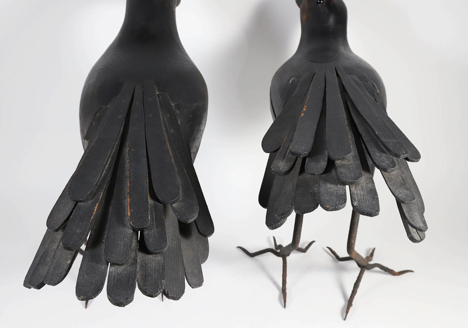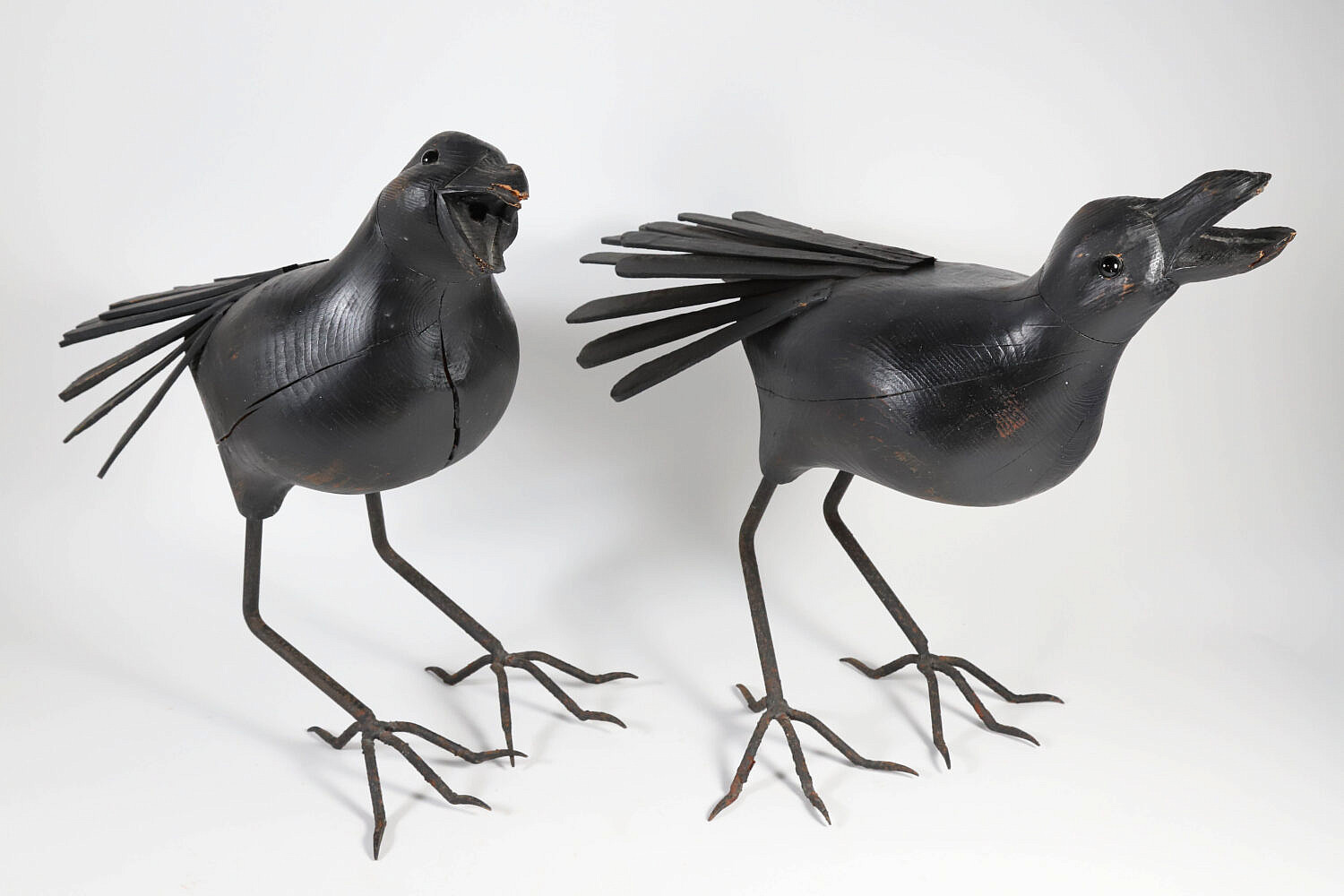Pair of Large Carved Wood and Iron Ravens