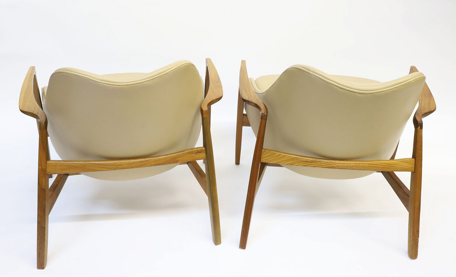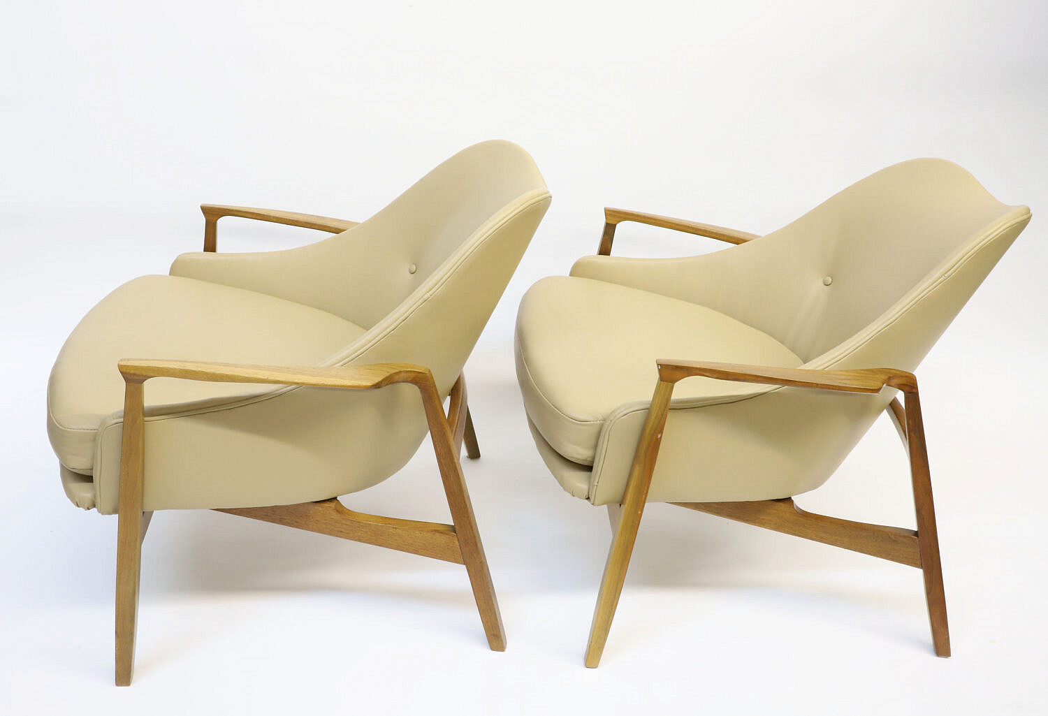 Pair of Mid Century Teak Audo Copenhagen Elizabeth STYLE Lounge Chairs, the originals were designed by Ib Kofod-Larsen in 1956, originally known as the U-56 chair