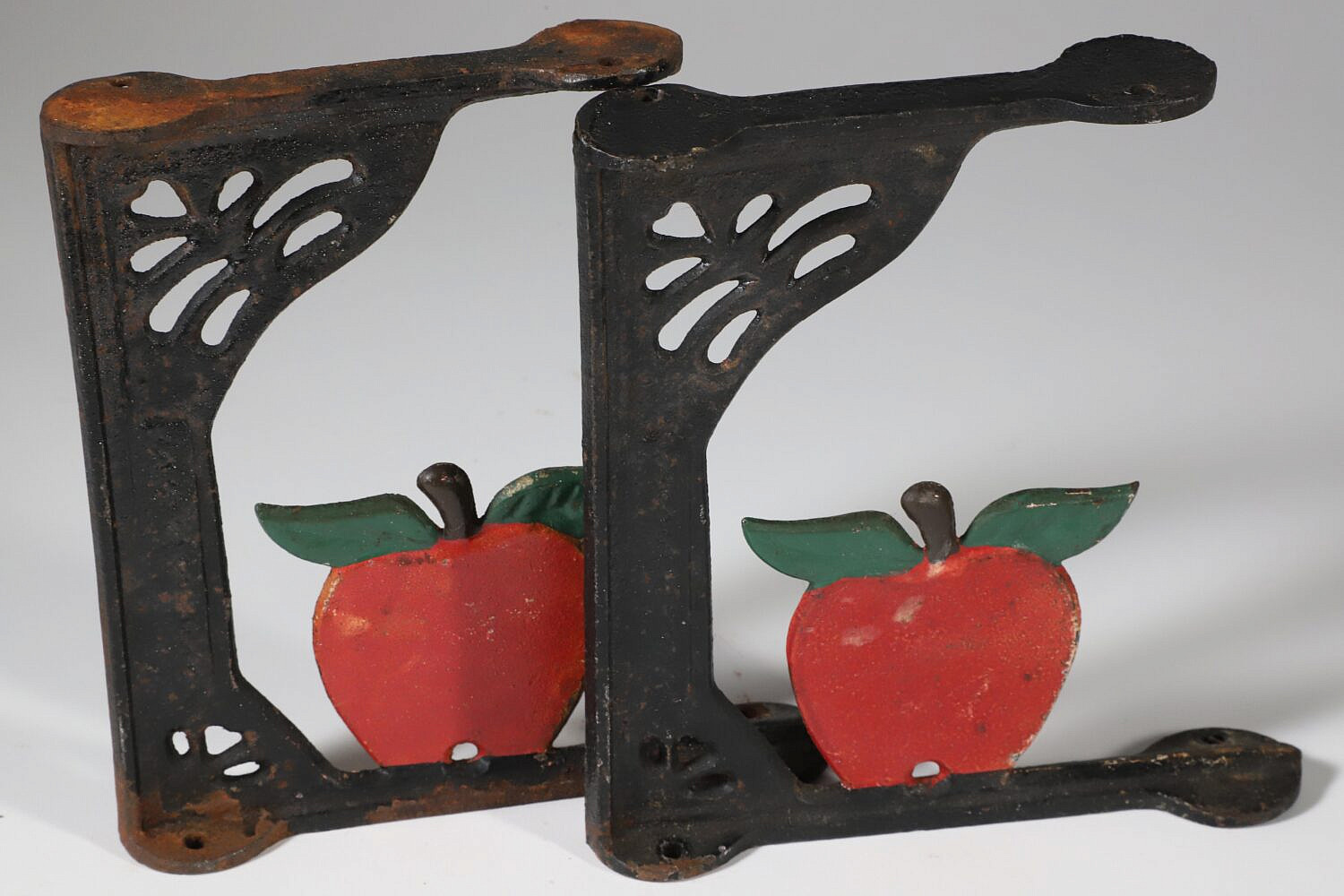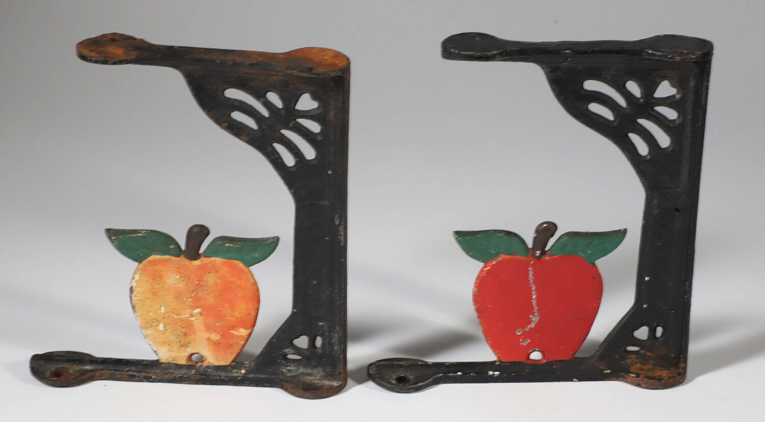 Pair of Vintage Cast Iron Painted Apple Motif Shelf Brackets