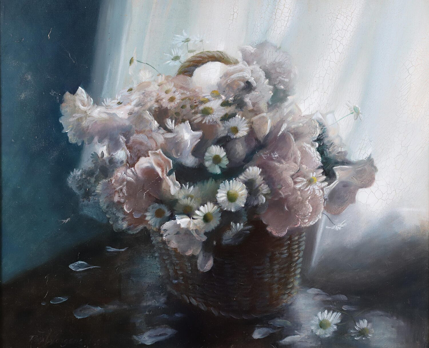 Paul Longenecker Oil on Canvas “Floral Still Life with Basket”