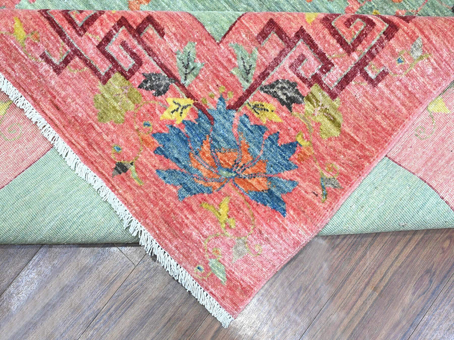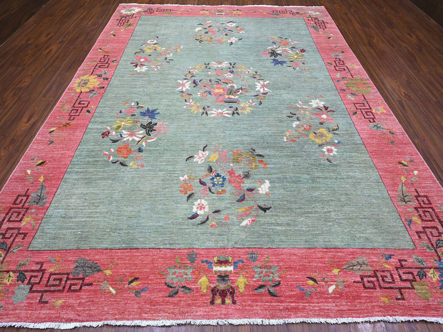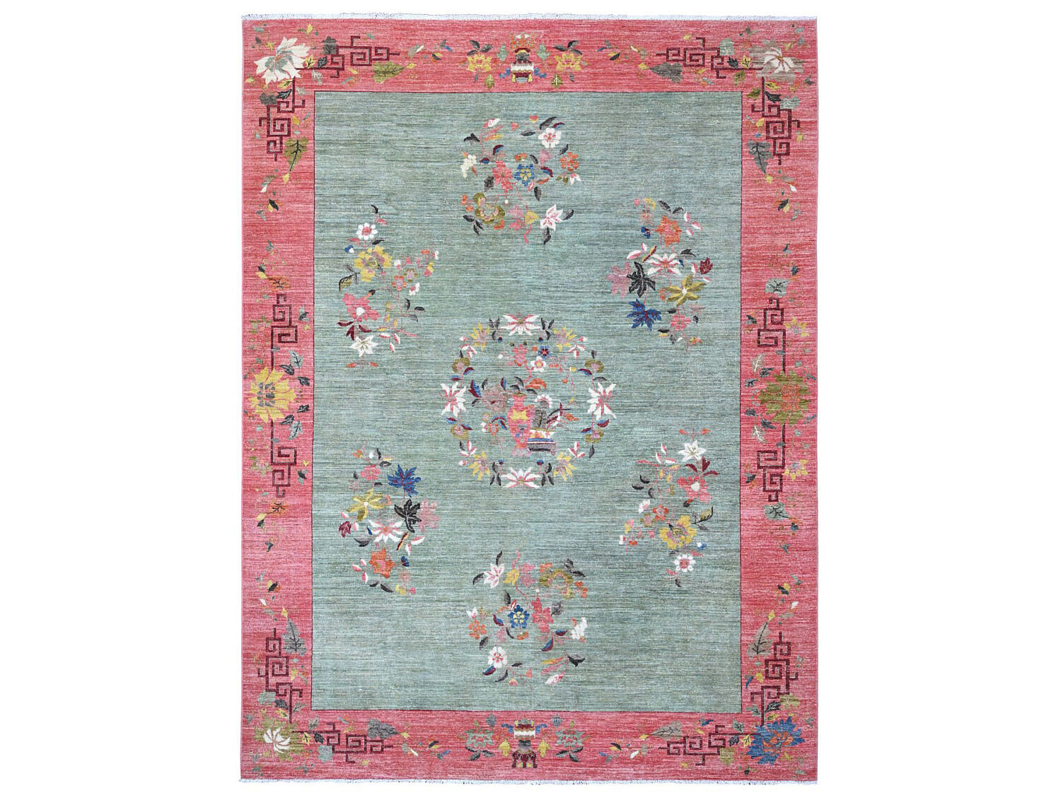 Pistachio Green Chinese Art Deco Style Revival Hand Knotted Wool Oriental Carpet Rug