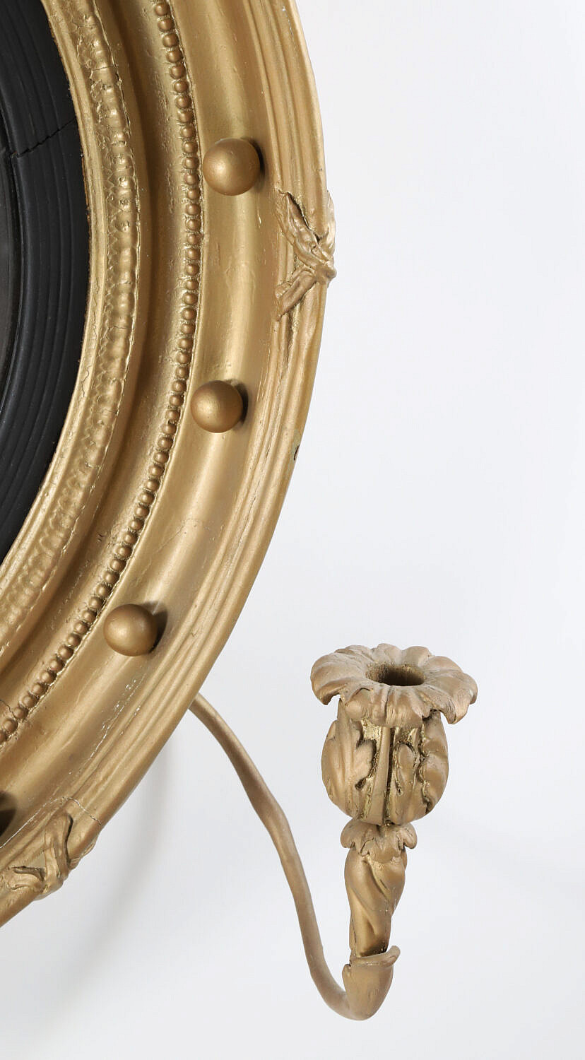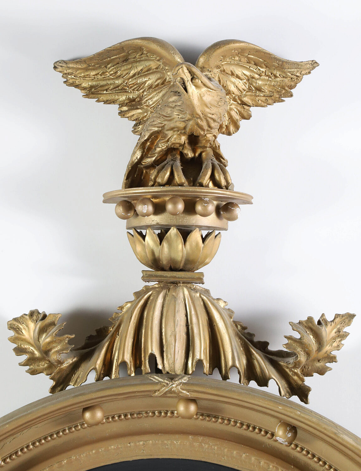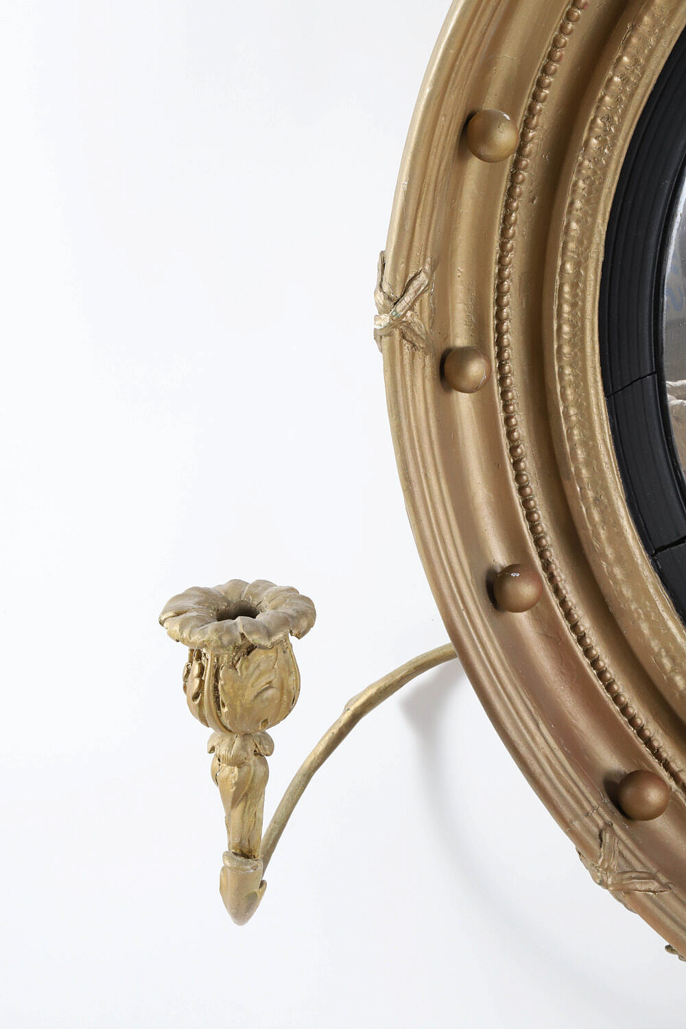 Regency Carved Convex Girondale Mirror, early 19th Century, surmounted by eagle and two candle holder branches