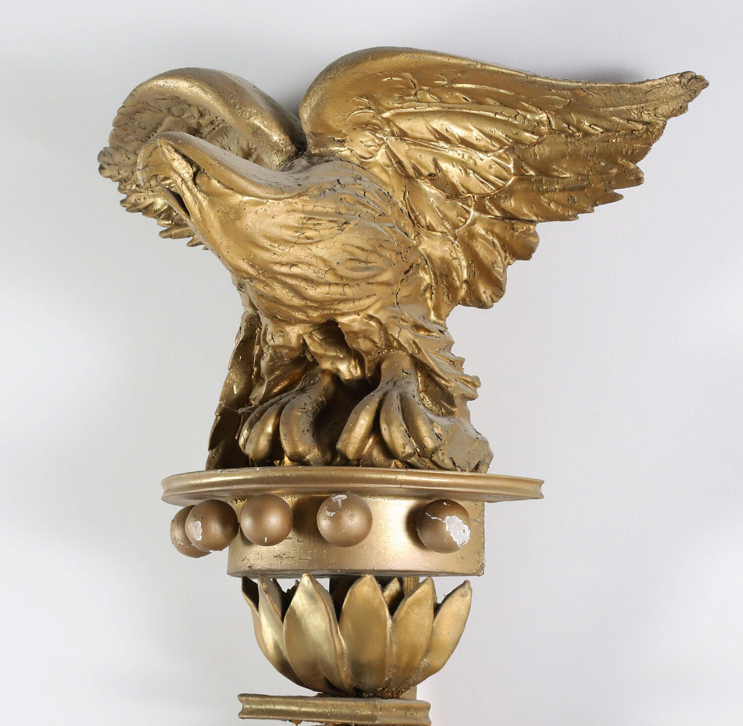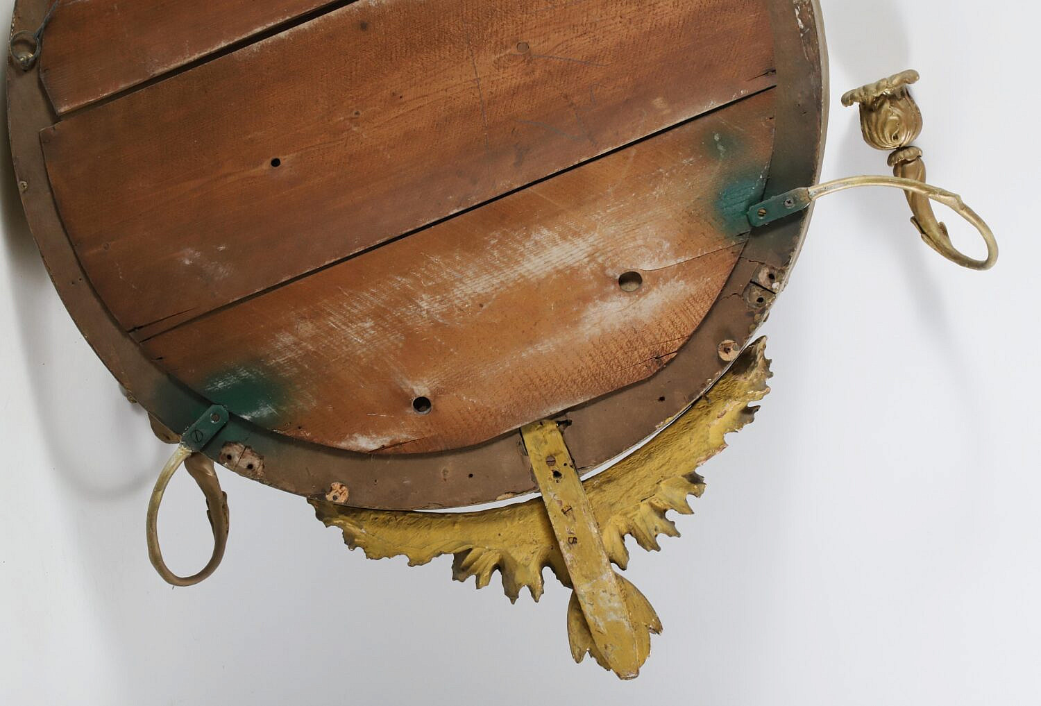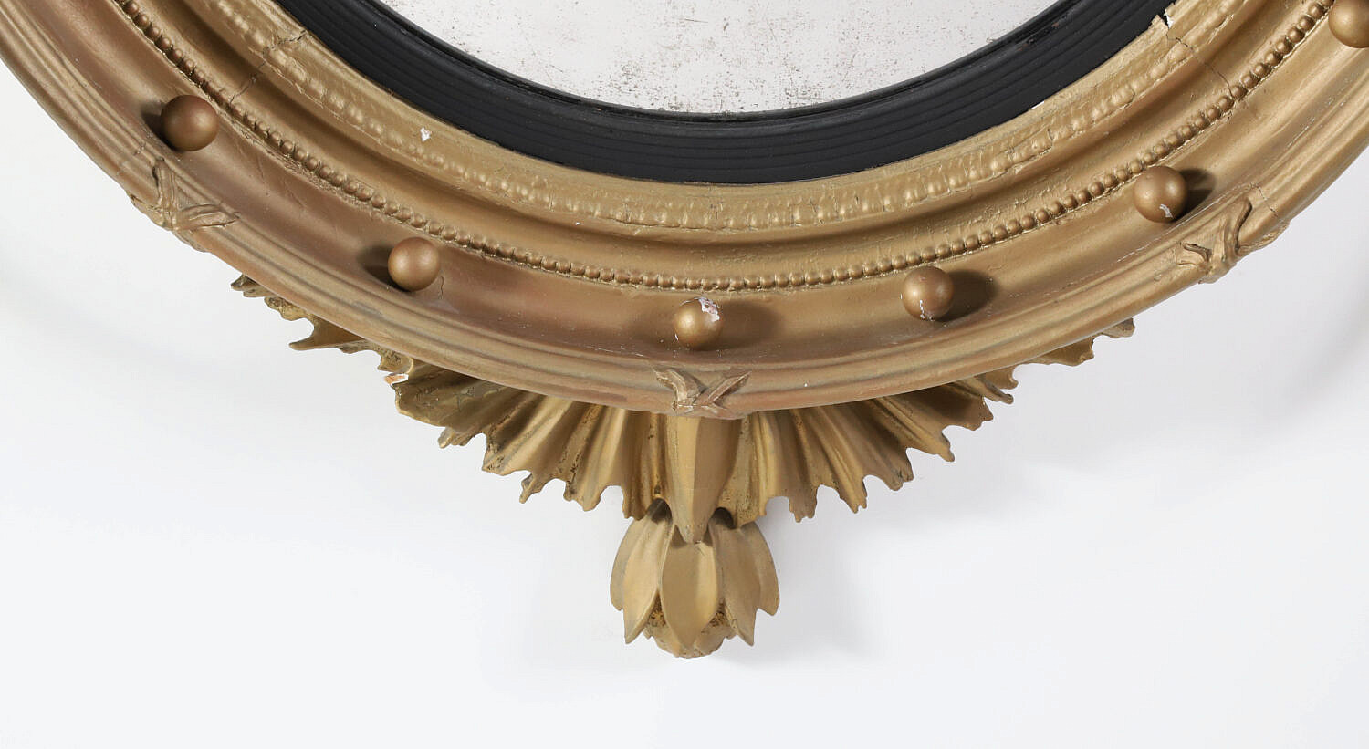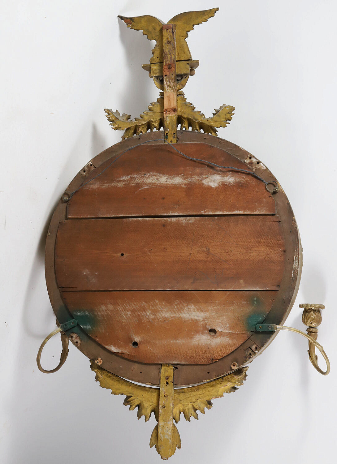 Regency Carved Convex Girondale Mirror, early 19th Century, surmounted by eagle and two candle holder branches
