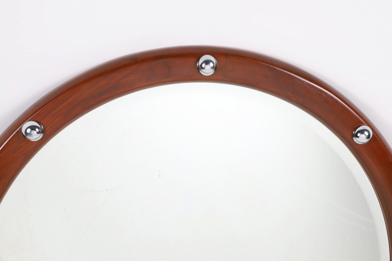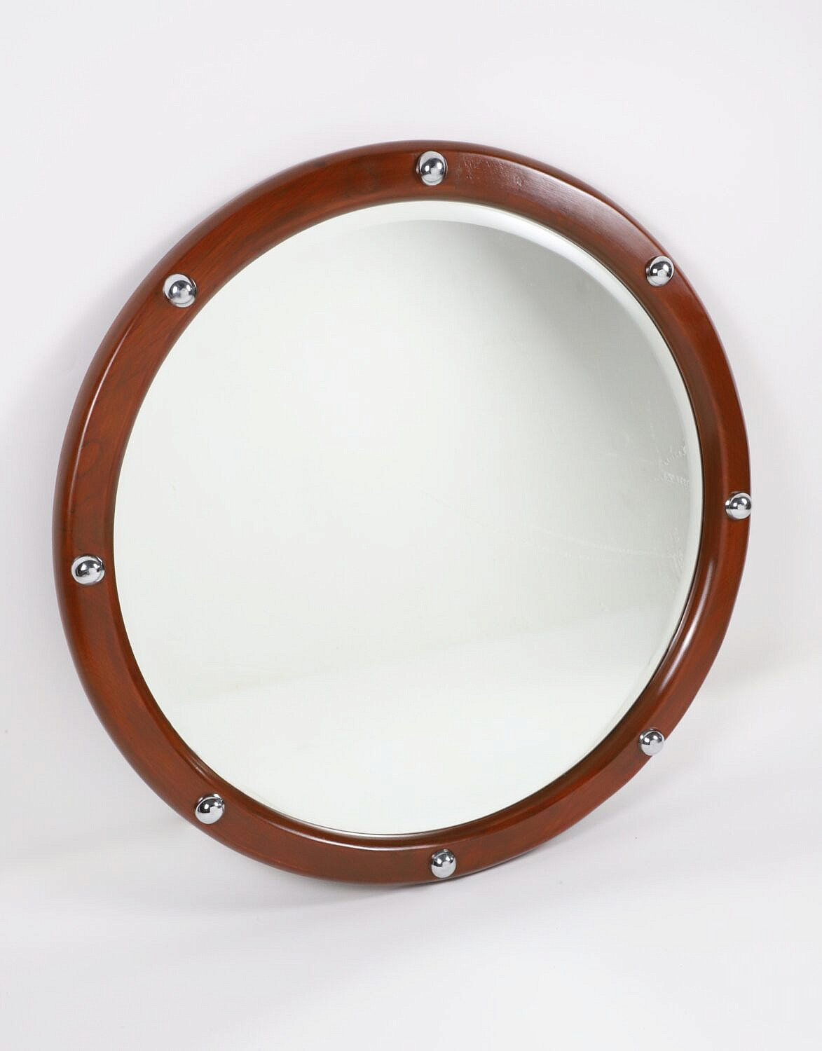 Round Teak Wood Mirror with Half Round Spheres