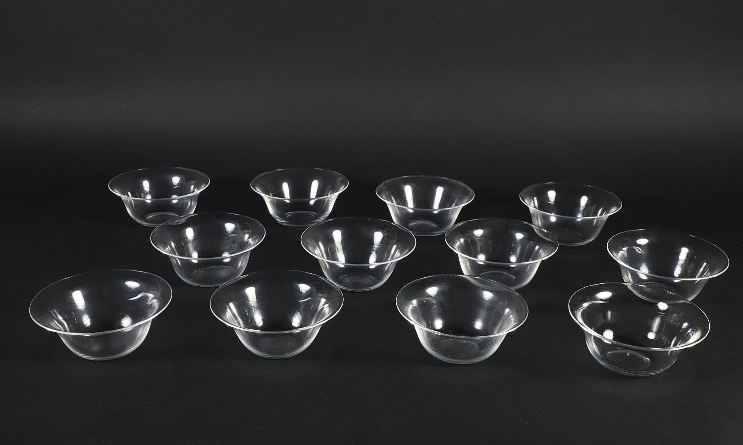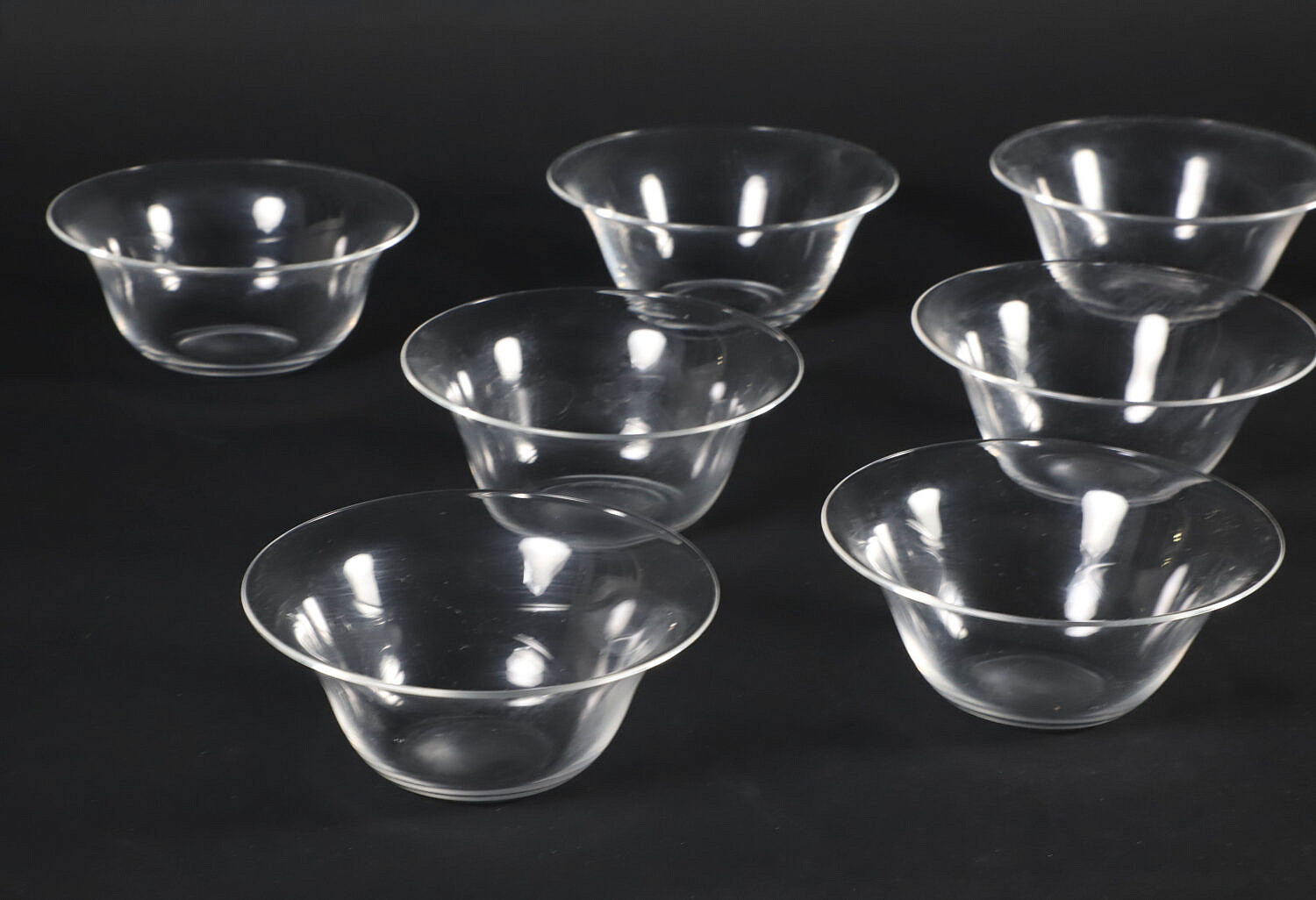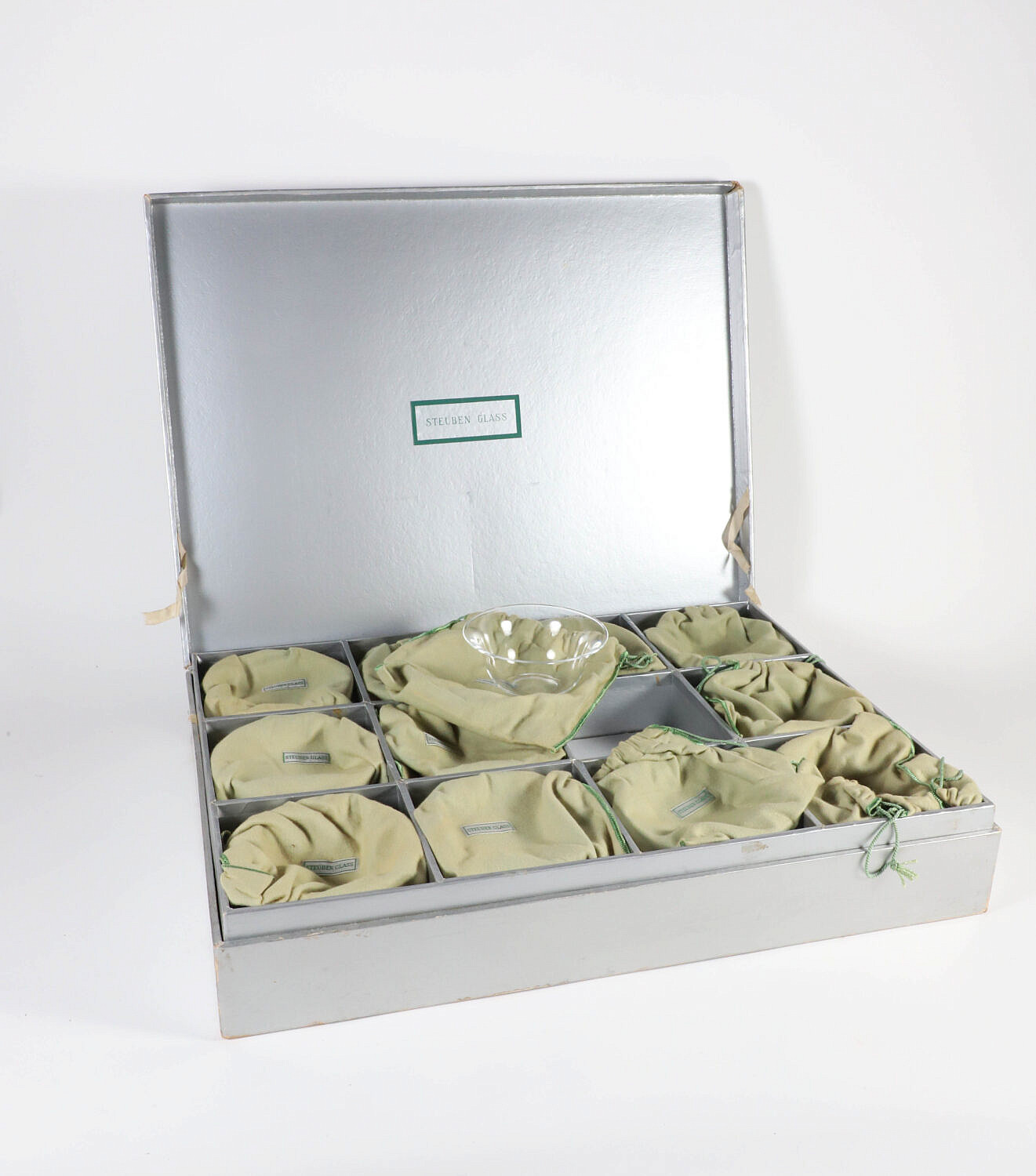 Set of 12 Signed Steuben Glass Bowls in Original Felt Bags and Box