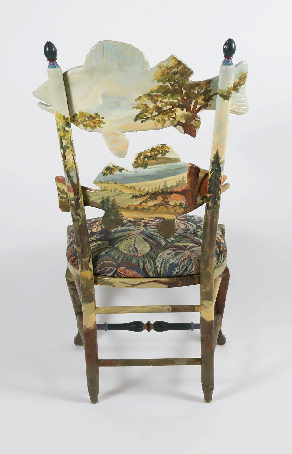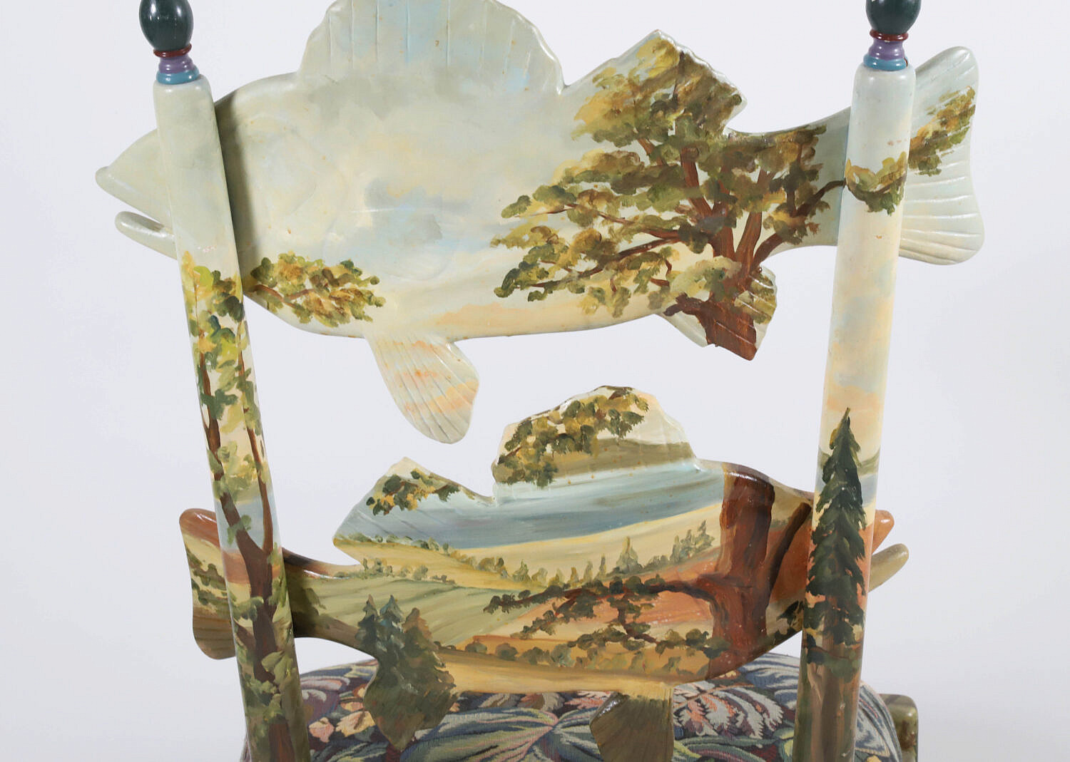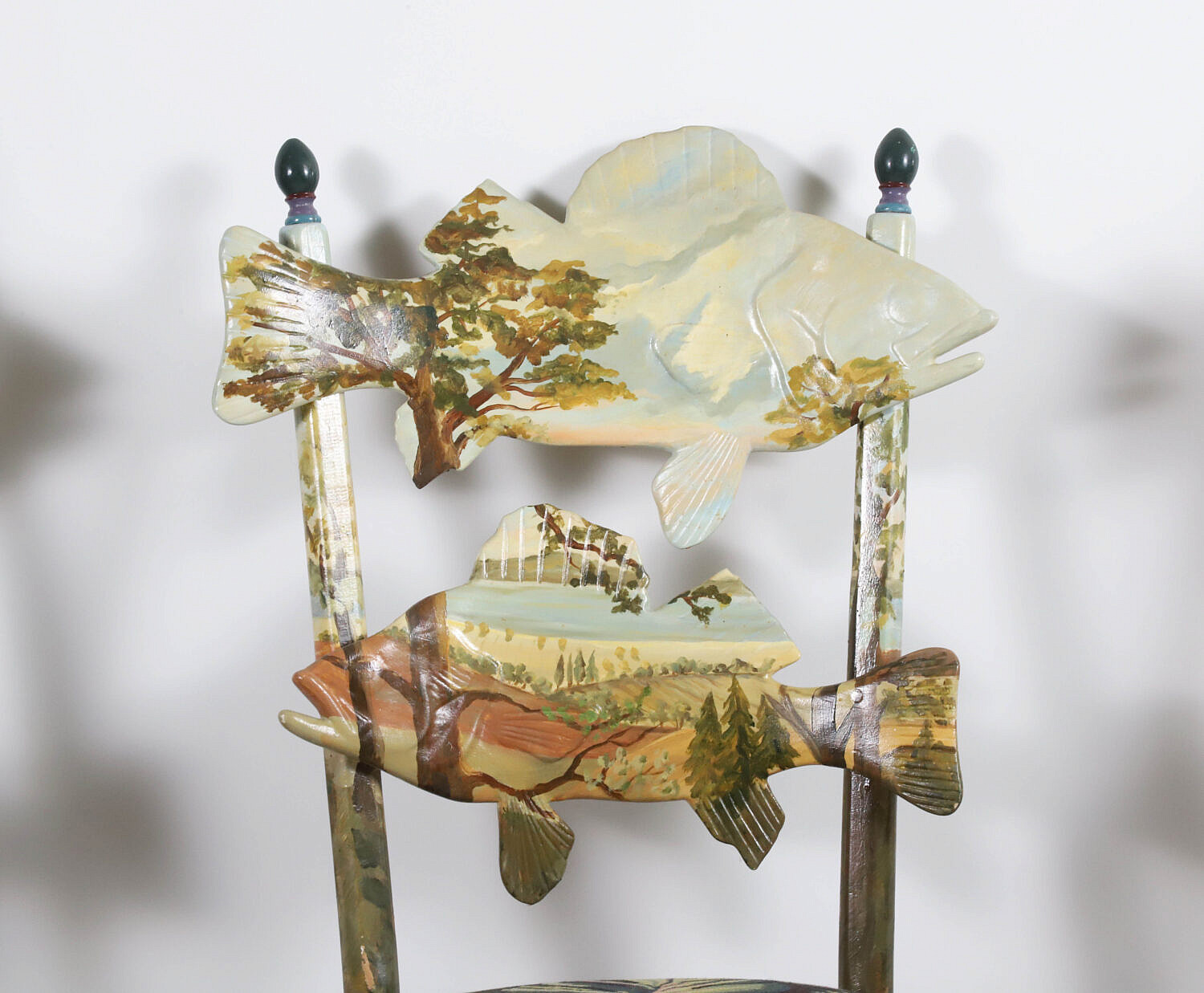 Set of 3 Mackenzie Childs Forest Fish Decorated Ladder-Back Side Chairs
