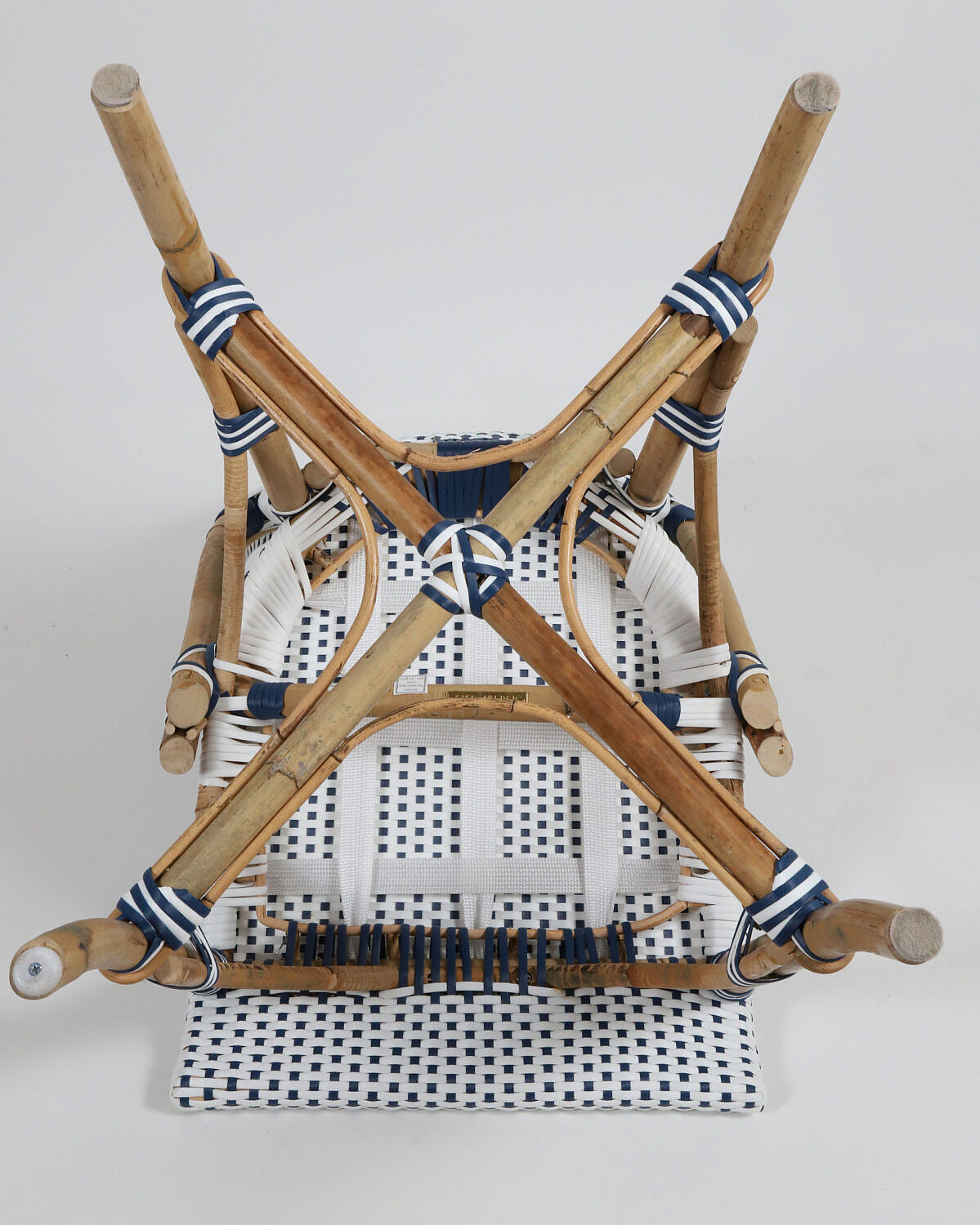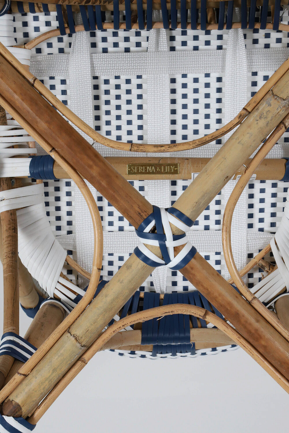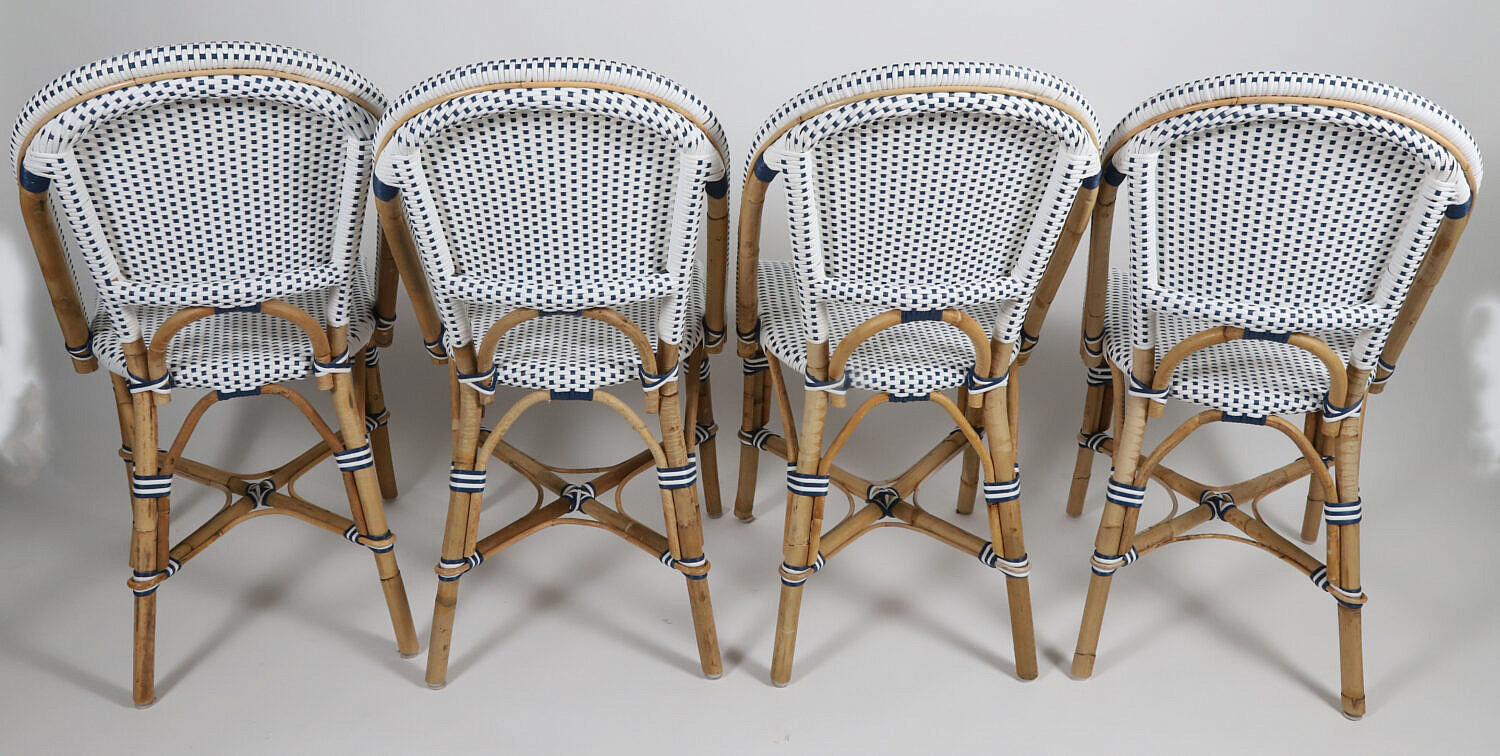 Set of Four Blue and White Serena & Lily Riviera Rattan Dining Chairs