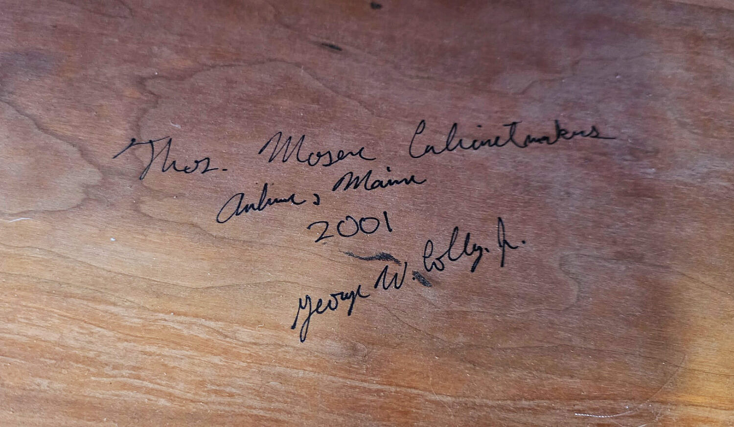 Signed Thomas Moser Cherry Chest of Seven Drawers, Contemporary, three drawers, over two drawers over 2 long drawers, configuration, wood knob pulls, dovetailed top and drawers. Signed Thos. Moser Cabinetmakers, Auburn, Maine, 2001, George W. Colly Jr.