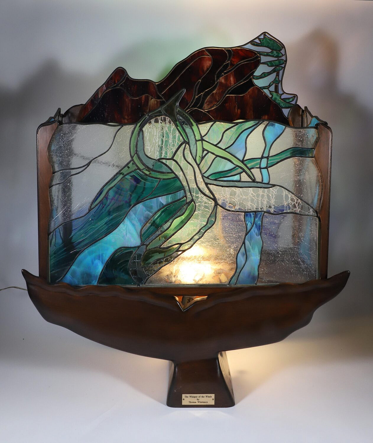 Thomas Whistance Carved Wood and Stained Glass Sculpture “The Whisper of the Whale”