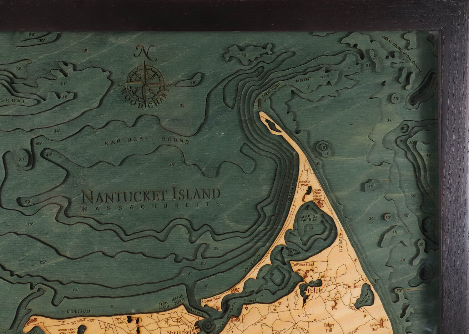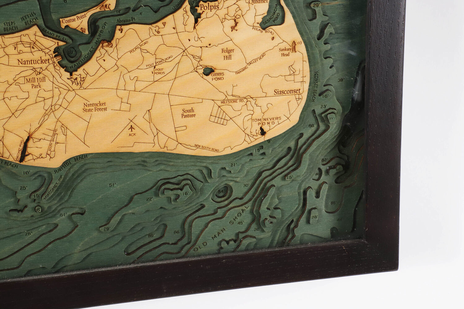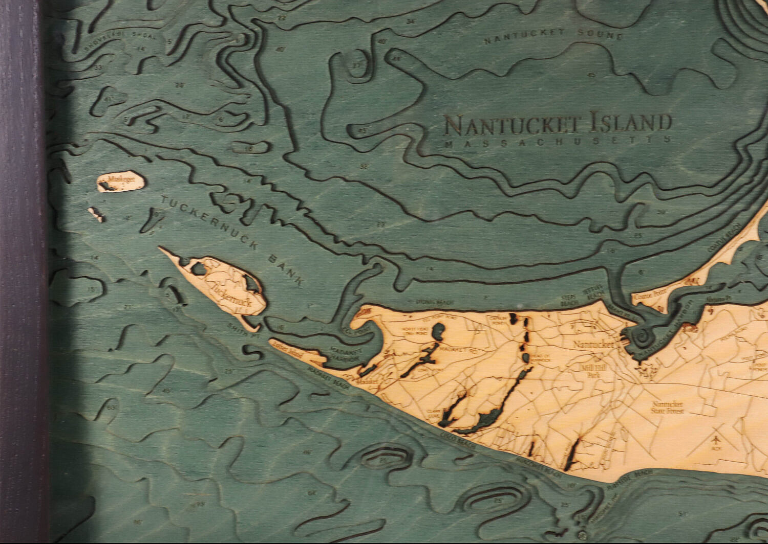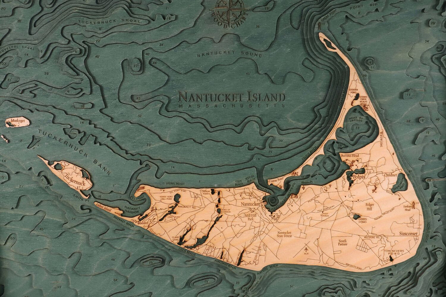 Three Dimensional Carved Wood Map of Nantucket Island