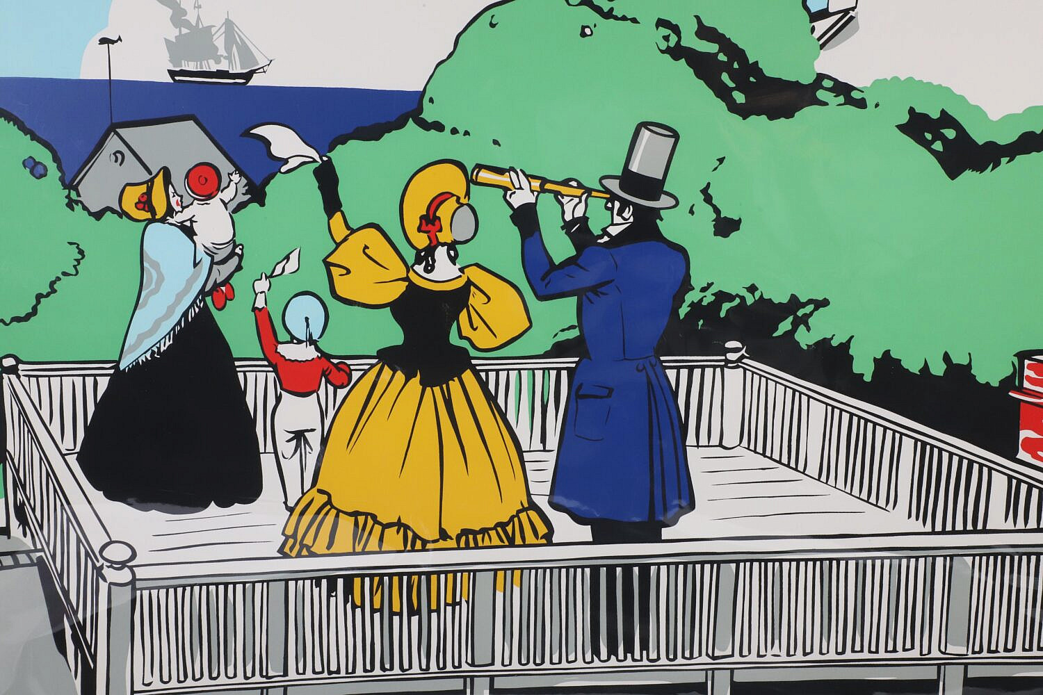 Tony Sarg (1880-1942) Silk Screen Poster “Family on the Roof Walk”, signed within the poster Tony Sarg