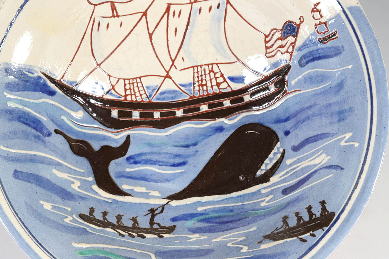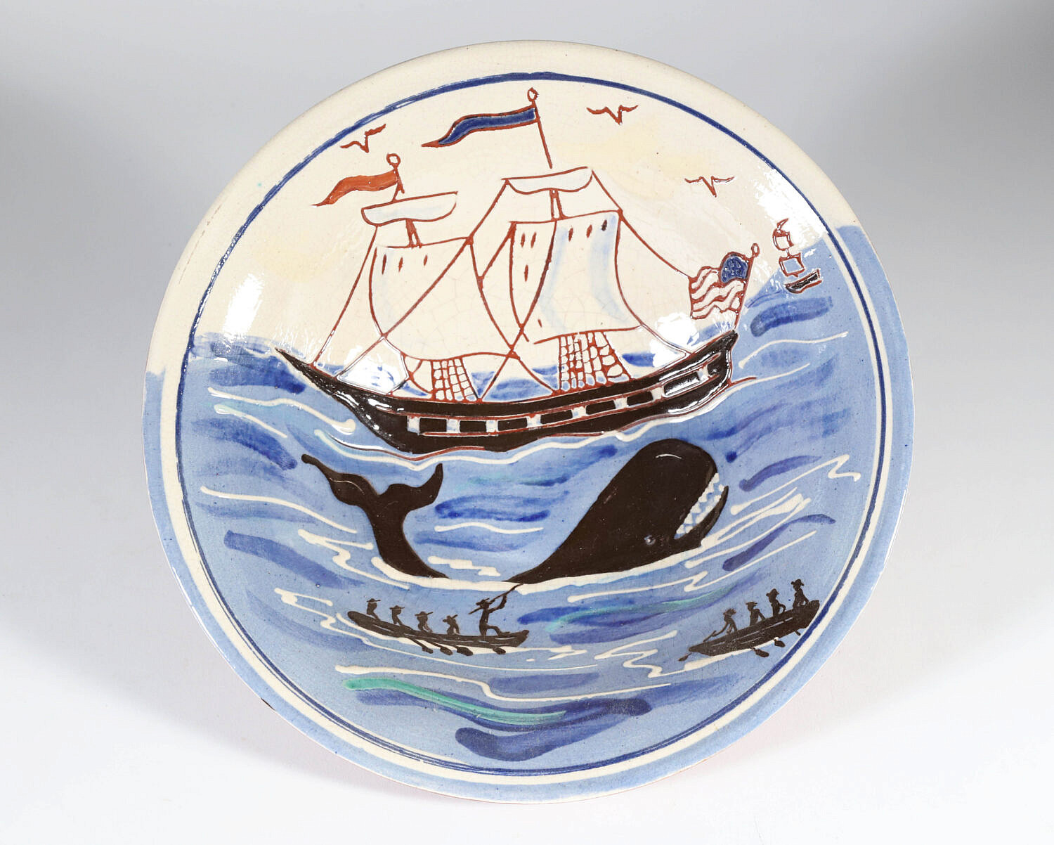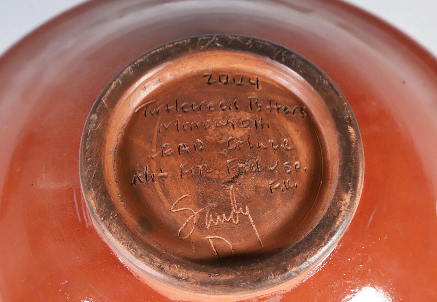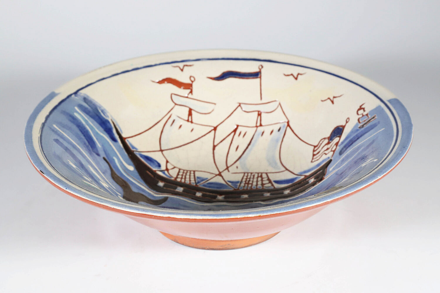Turtlecreek Potters Redware Ceramic Whale Bowl Decorated by Sandy D.