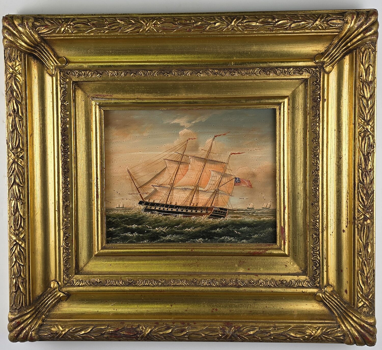 Two Contemporary Nautical Oil on Panel Clipper Ship Portrait Paintings, 20th century, in gilt frames.