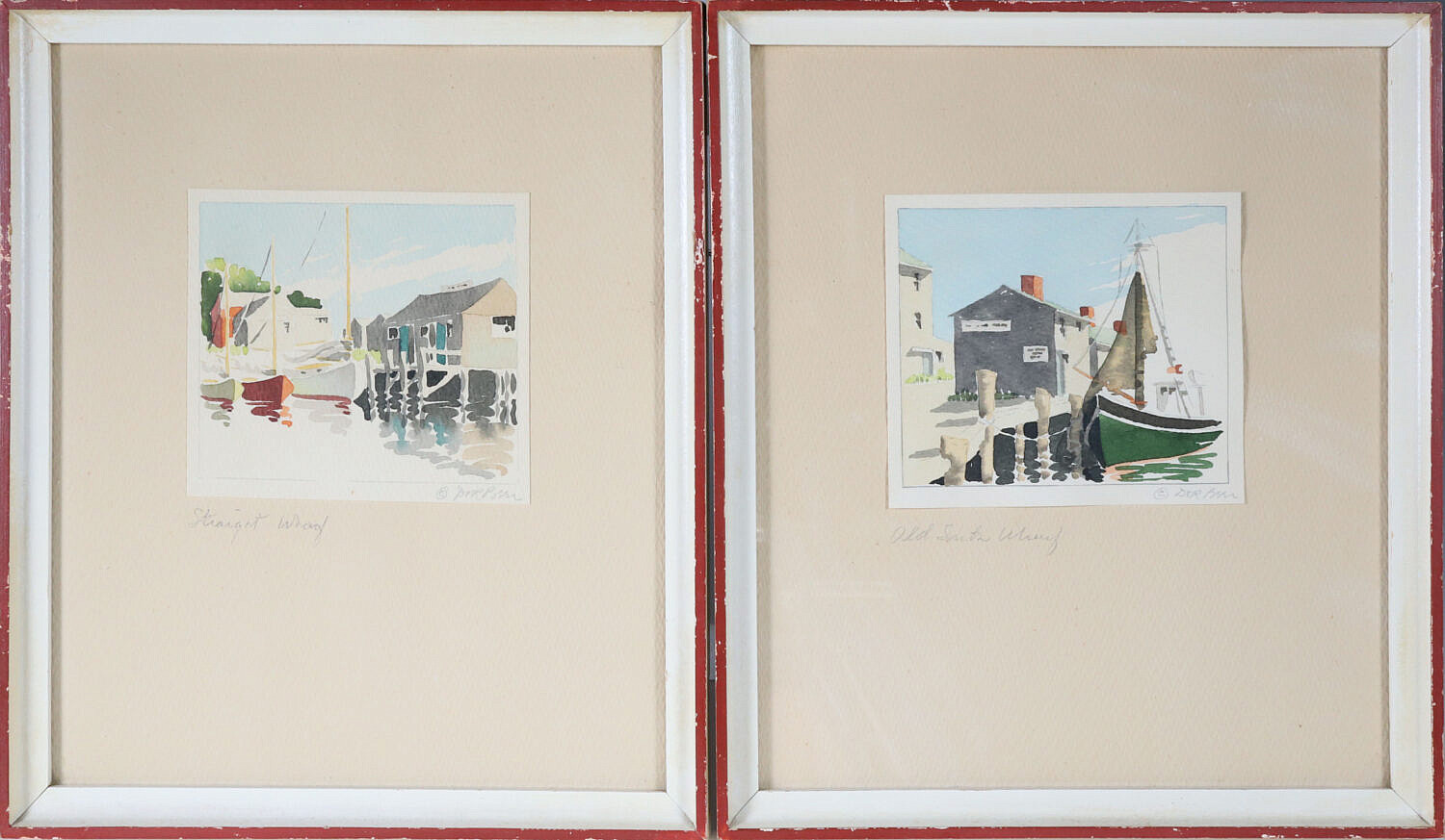 Two Doris and Richard Beer Watercolors on Paper “Old South Wharf” and “Straight Wharf”