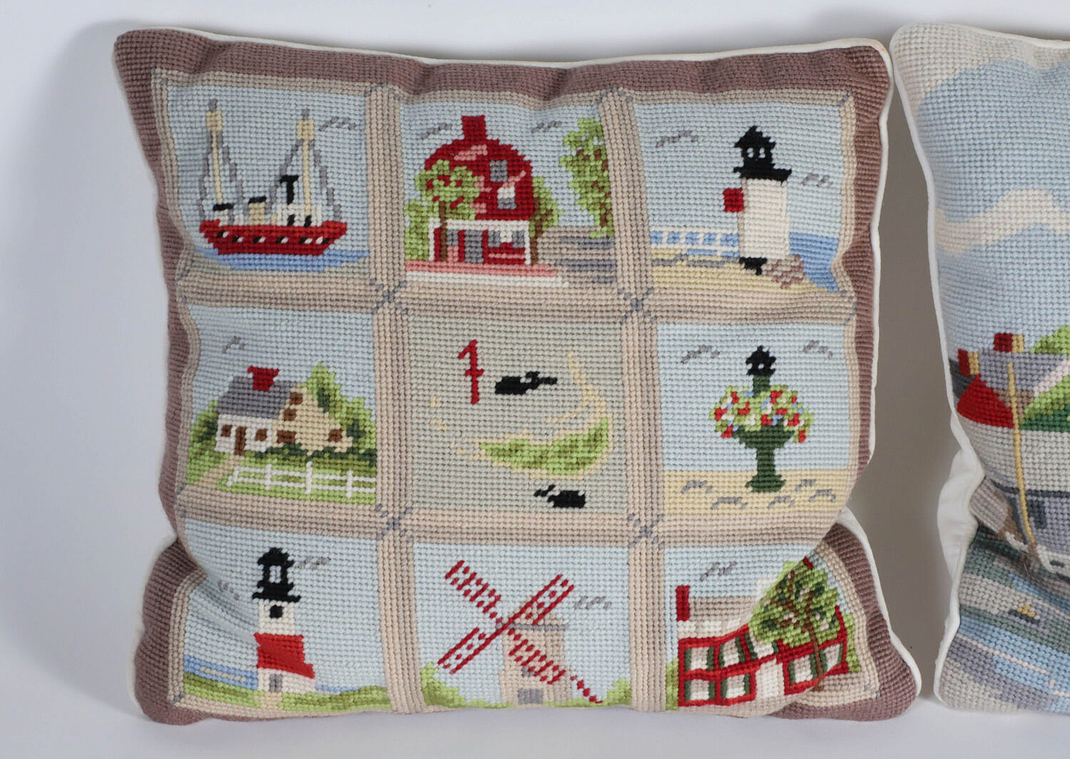 Two Erica Wilson Needlepoint Nantucket Pillows