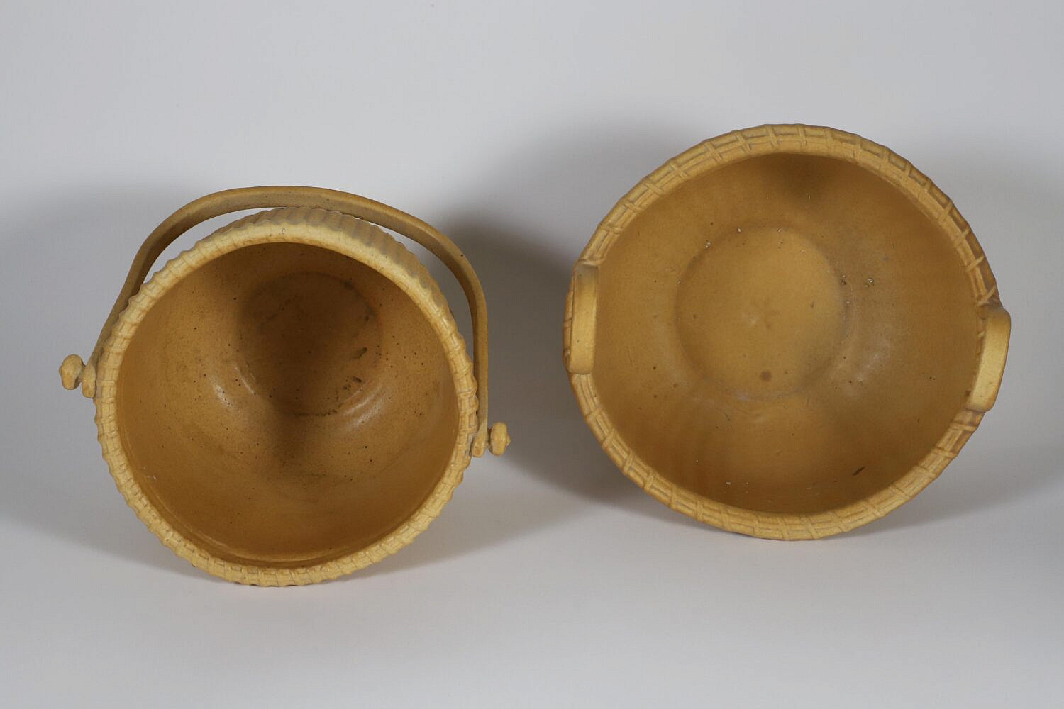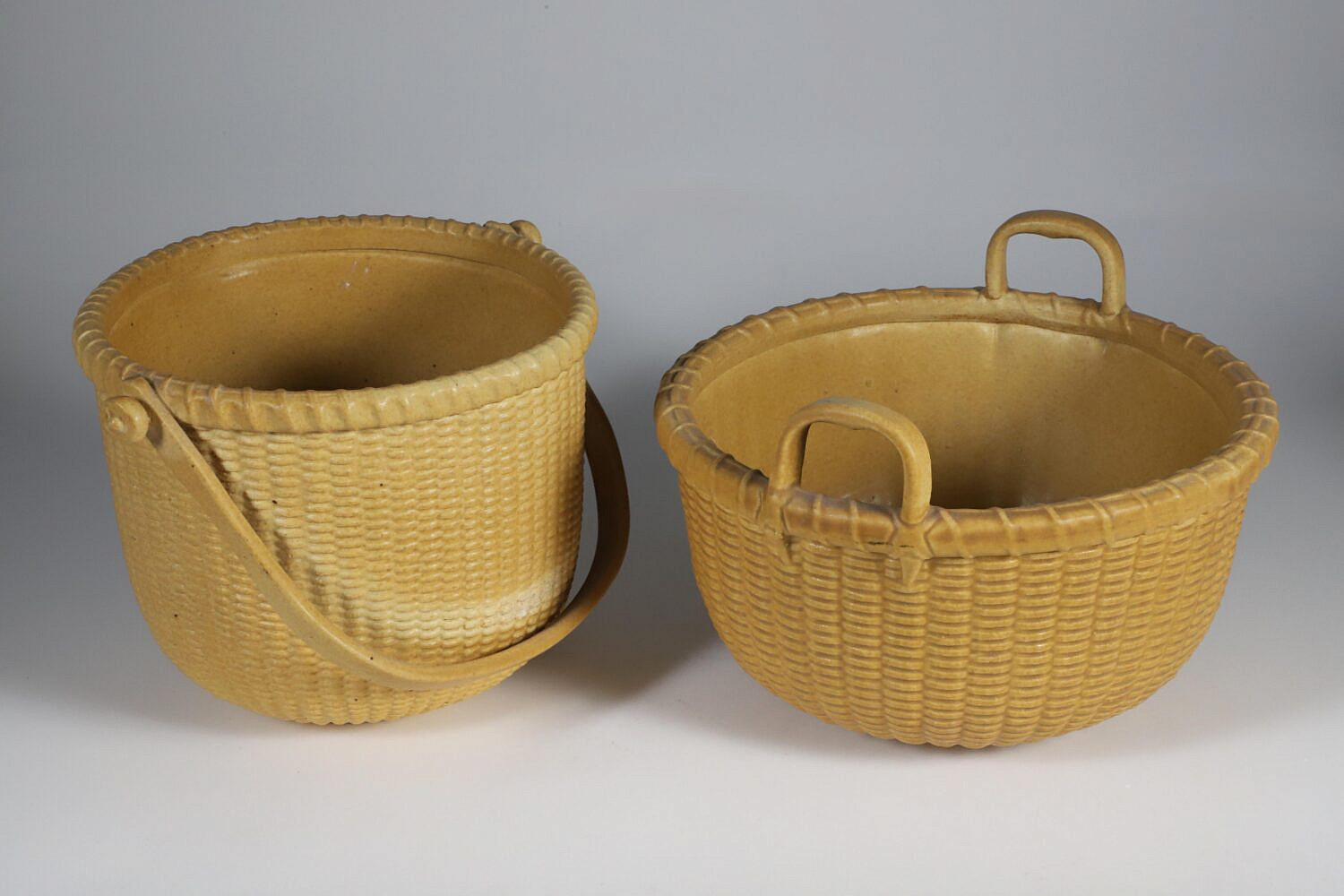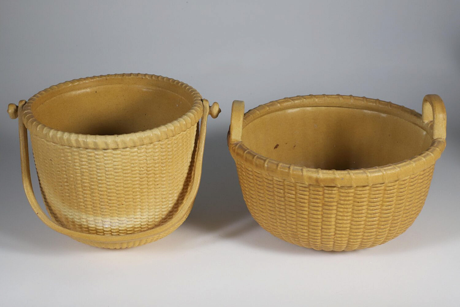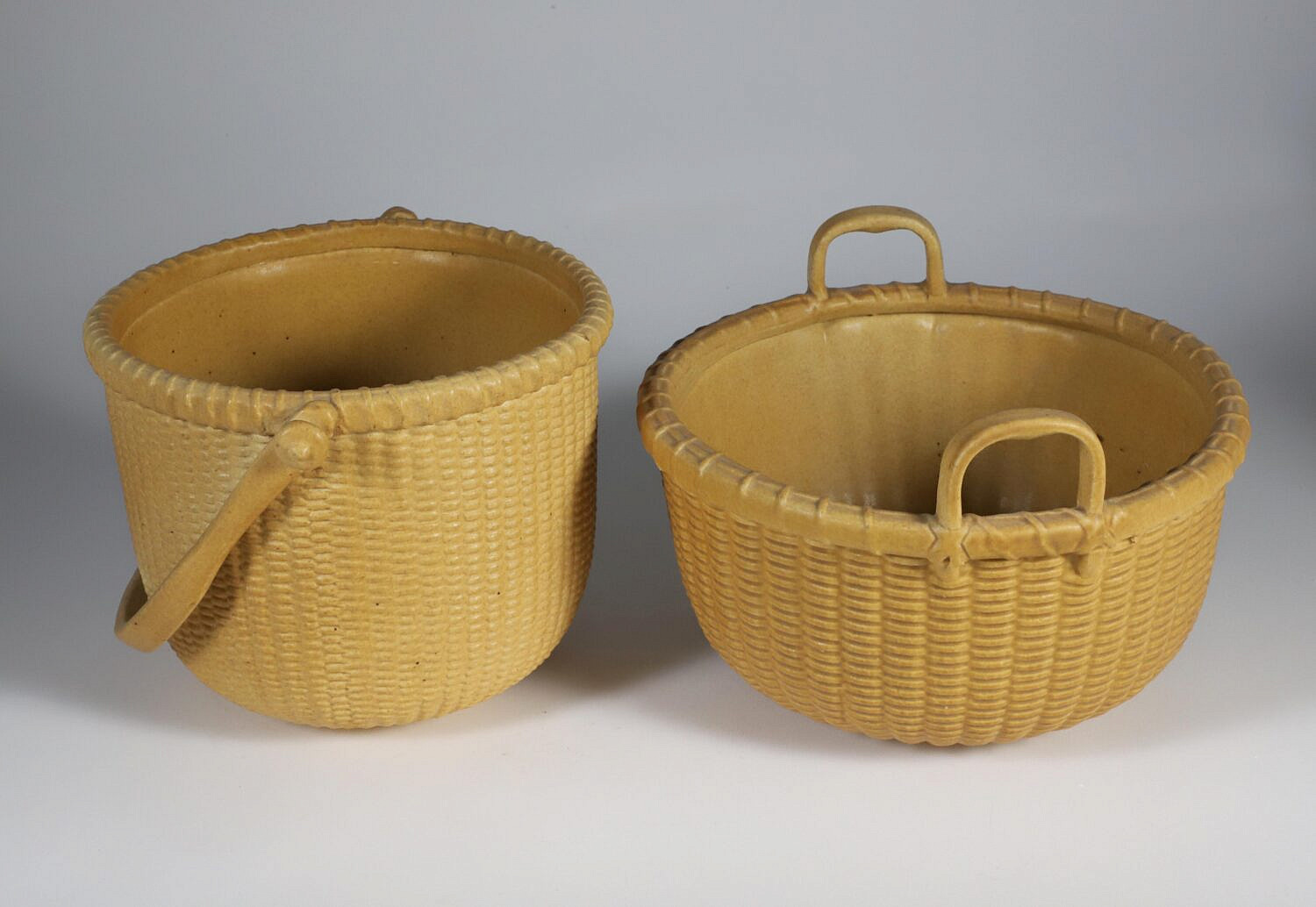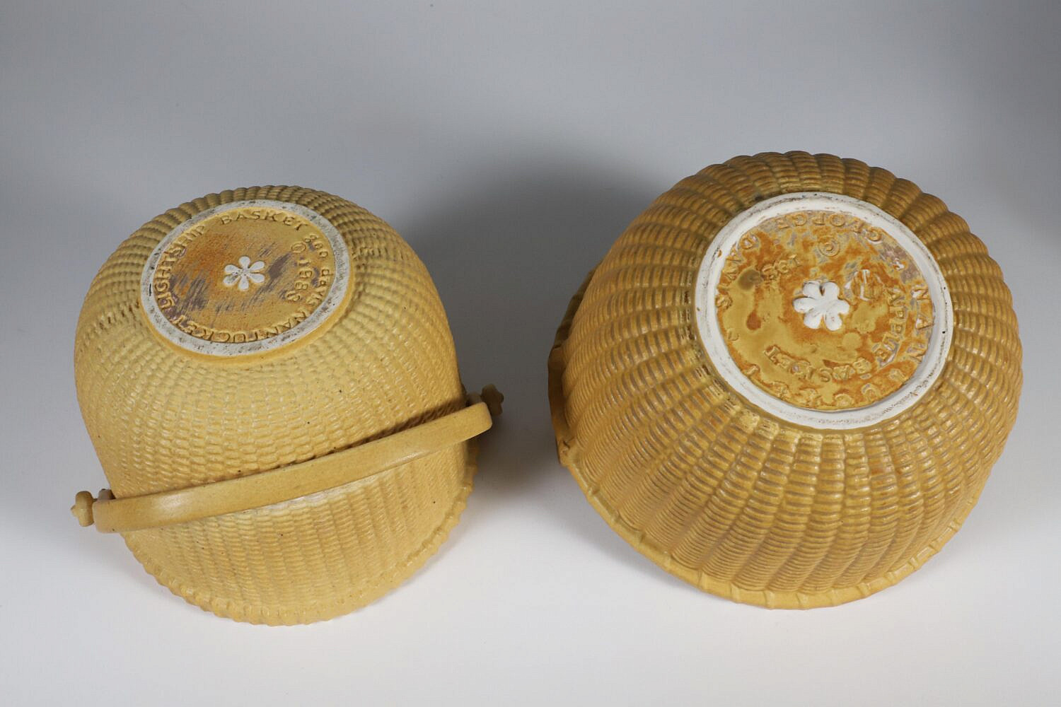Two George Davis Ceramic Nantucket Baskets, circa 1985 and 1988